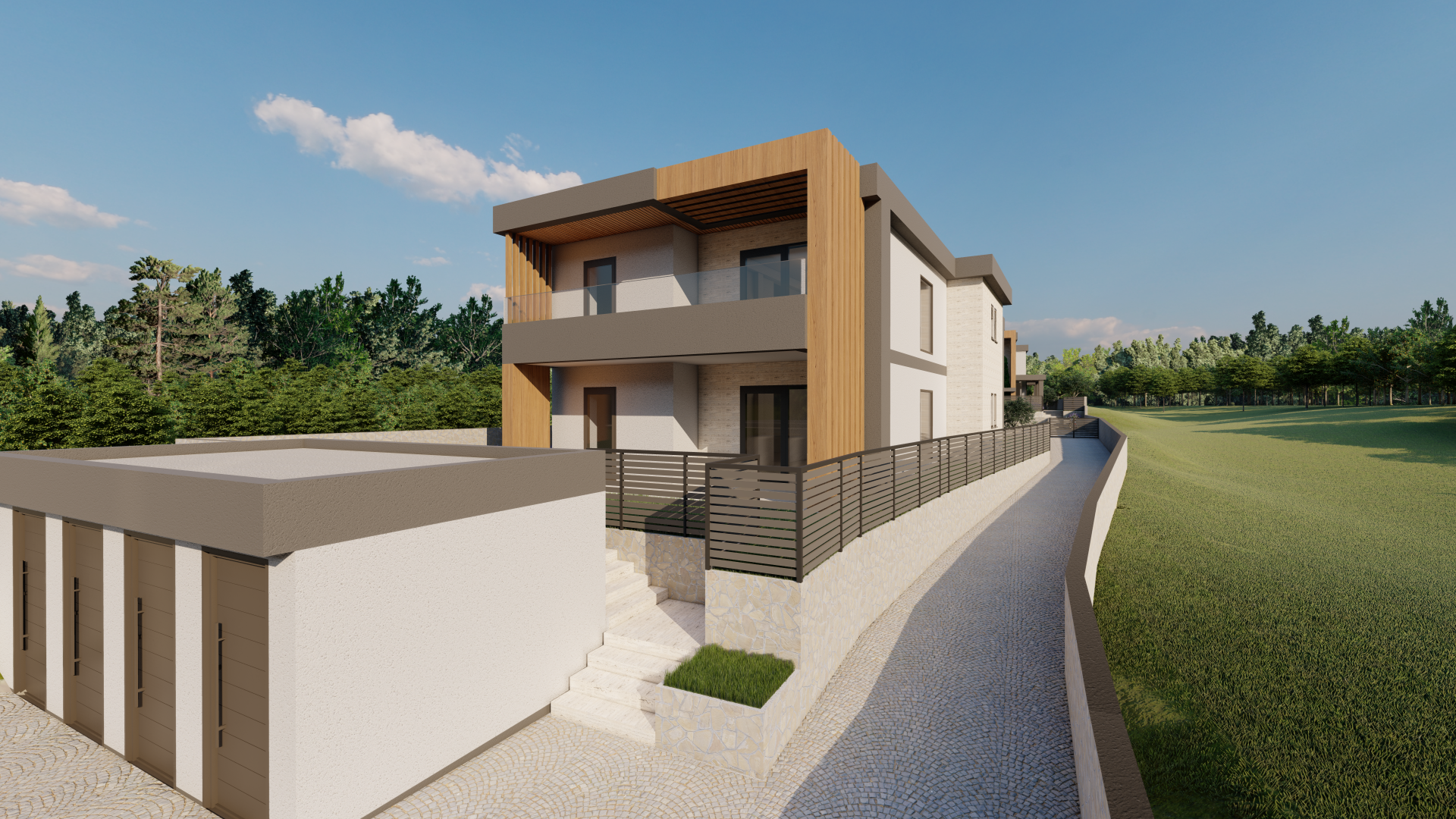 BAKAR, HRELJIN – Exklusive Doppelhaushälfte im Neubau! Modernes und hochwertiges Neubauprojekt in Hreljin! Ruhige und grüne Umgebung, sehr gute Verkehrsanbindung, nur 10-20 Minuten vom Zentrum von Rijeka, der Insel Krk oder Gorski Kotar entfernt. Hochwertige Materialien und Ausstattung zeichnen diesen Neubau aus, der lediglich aus zwei zweigeschossigen Wohnungen im 3B+DB-Format mit eigenem Garten besteht. Der Eingang zum umzäunten Hof ist durch eine Schiebetür gesichert, es gibt 4 Parkplätze im Hof, 2 für jede Wohnung und zwei große Abstellräume im Freien. Die zweistöckige Wohnung verfügt über eine Gesamtwohnfläche von 153 m2, einen angeschlossenen Garten, einen Abstellraum von 15 m2, zwei Parkplätze und zwei zusätzliche Parkplätze für Gäste außerhalb des Gartens. Das Erdgeschoss der Wohnung besteht aus einem überdachten Eingang, Flur, Toilette, Maschinenraum, Abstellraum, Wohnzimmer mit offener Küche und Esszimmer mit Zugang zu einer großzügigen überdachten Terrasse und dem angrenzenden Garten. Eine Innentreppe führt in den ersten Stock, der aus einem Flur, einem Arbeitsraum – Waschküche, einem Badezimmer und drei Schlafzimmern besteht, von denen eines das sogenannte ist Hauptschlafzimmer mit eigenem Bad und Ankleidezimmer. Ein Schlafzimmer und das Hauptschlafzimmer haben Zugang zu einem großen überdachten Balkon. Der angegebene Preis gilt für eine komplett möblierte Immobilie, die sogenannte schlüsselfertiges System. In dieser Phase können Innenarchitektur und Ausstattung an die Wünsche des Kunden angepasst werden. Zur Ausstattung der Wohnung gehören: - Fußbodenheizung, Kühlung - Wärmepumpe - ALU-Zimmerei mit elektrischen Jalousien und Moskitonetzen - Designer-Innenschreinerei des italienischen Herstellers BERTOLOTO - Video-Gegensprechanlage - einbruchsichere intelligente Eingangstür - Eichen-3-Schicht-Parkett - erstklassige Keramik - erstklassige Sanitärartikel und Armaturen - interaktive Schalter und Steckdosen der Marke LIVOLO - Anschluss zum Laden von Elektrofahrzeugen - Vorbereitung für das Solarkraftwerk Die voraussichtliche Fertigstellung der Arbeiten ist im Sommer 2024. Eine ideale Wahl für alle, die den Luxus ihres Zuhauses in einer grünen, ruhigen und intimen Oase genießen möchten, in der alle lebensnotwendigen Annehmlichkeiten leicht zu erreichen sind.