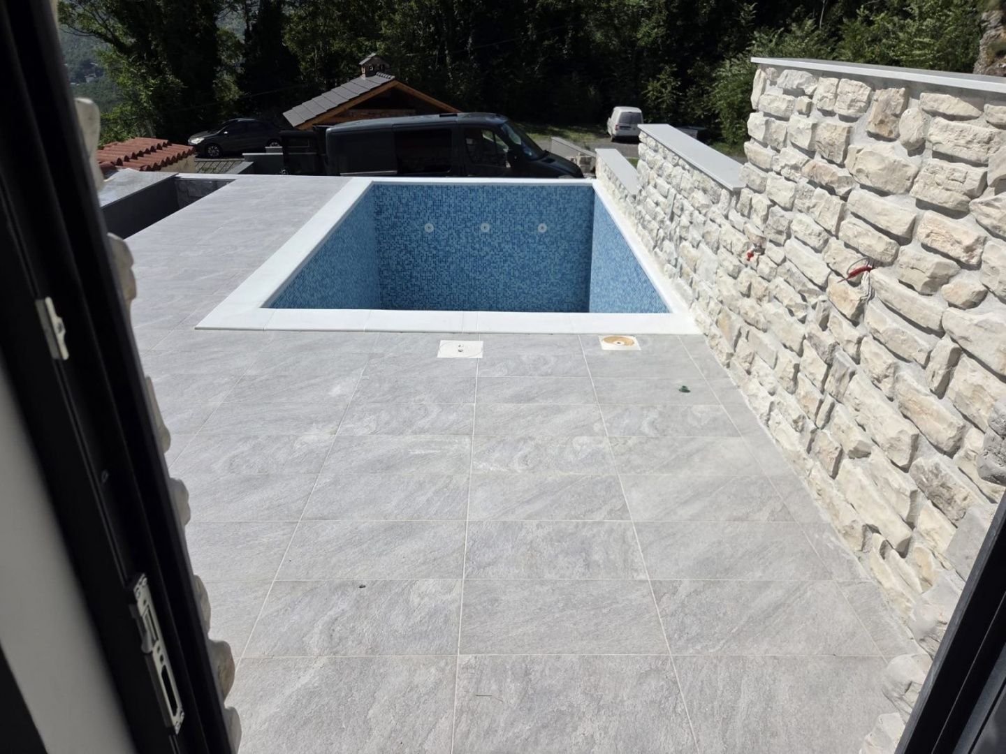 BRIBIR – Doppelhaushälfte aus Stein mit Pool Zum Verkauf steht ein komplett neu eingerichtetes Ferienhaus in der ruhigen und angenehmen Umgebung von Bribir, umgeben von unberührter Natur. Dieses attraktive Anwesen versprüht mediterranen Charme und ist komplett mit Stein verkleidet, was ihm einen besonderen Charakter und Wärme verleiht. Das Haus besteht aus: Erdgeschoss: geräumiges Wohnzimmer mit Küche und Zugang zu einer 20 m² großen Terrasse, die auch als Sonnenterrasse am Pool dient. Obergeschoss: zwei Schlafzimmer und ein modernes Badezimmer. Keller: als Taverne mit Sauna konzipierter Raum, der nach Wunsch des Käufers in einen zusätzlichen Raum umgewandelt werden kann. Nebenräume: Pool-Maschinenraum und Abstellraum. Der Garten ist großzügig und gepflegt und verfügt über einen großen Grillplatz, einen überdachten Bereich zum geselligen Beisammensein und einen separaten, gepflegten Parkplatz. Das Haus verfügt über hochwertige Tischlerarbeiten und ein anthrazitfarbenes Dach. Der Innenausbau befindet sich in der Endphase, sodass der zukünftige Eigentümer Möbel und Details nach seinem eigenen Geschmack auswählen kann. Die ruhige Lage, der wunderschöne Meerblick und die hochwertige Bauweise machen dieses Anwesen sowohl als Ferienhaus als auch als Familienhaus ideal. Für weitere Informationen wenden Sie sich bitte an den Makler.