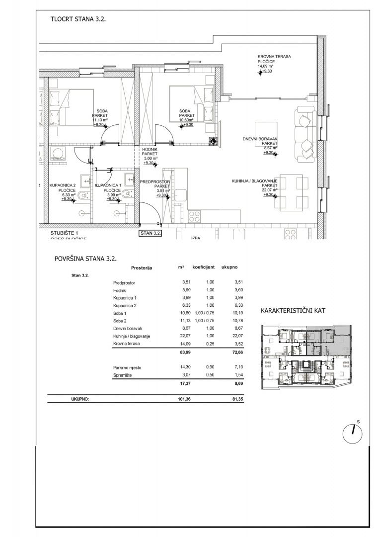 Insel Cres, Stadt Cres – 2-Zimmer-Wohnung mit Wohnzimmer in einem exklusiven Neubau in bester Lage, nur 50 Meter vom Meer entfernt. Wir bieten eine 2-Zimmer-Wohnung mit Wohnzimmer (3,2 m²) im dritten Stock eines exklusiven Neubaus in einer außergewöhnlichen und einzigartigen Lage an. Die Wohnung besteht aus Eingangsbereich, Hauswirtschaftsraum, Gäste-WC, Badezimmer, einem offenen Wohnbereich mit Küche und Essbereich sowie Zugang zur Dachterrasse und zwei Schlafzimmern, die ebenfalls Zugang zur Dachterrasse bieten. Die Wohnfläche beträgt insgesamt 84 m². Zur Wohnung gehört ein Garagenstellplatz (14,30 m²) sowie ein Abstellraum in der Garage (3,07 m²). Dieses attraktive Wohn- und Geschäftsgebäude mit Aufzug und Tiefgarage befindet sich in der ersten Bauphase und umfasst 14 Wohneinheiten mit 1- und 2-Zimmer-Wohnungen. Die Wohnungen werden schlüsselfertig verkauft und sind hochwertig ausgestattet, unter anderem mit Fußbodenheizung, Inverter-Klimaanlagen, erstklassigen Bodenbelägen und Parkett, begehbaren Badezimmern und hochwertiger Sanitärausstattung namhafter Hersteller. Eine Rarität in diesem Angebot, eine einzigartige Lage.