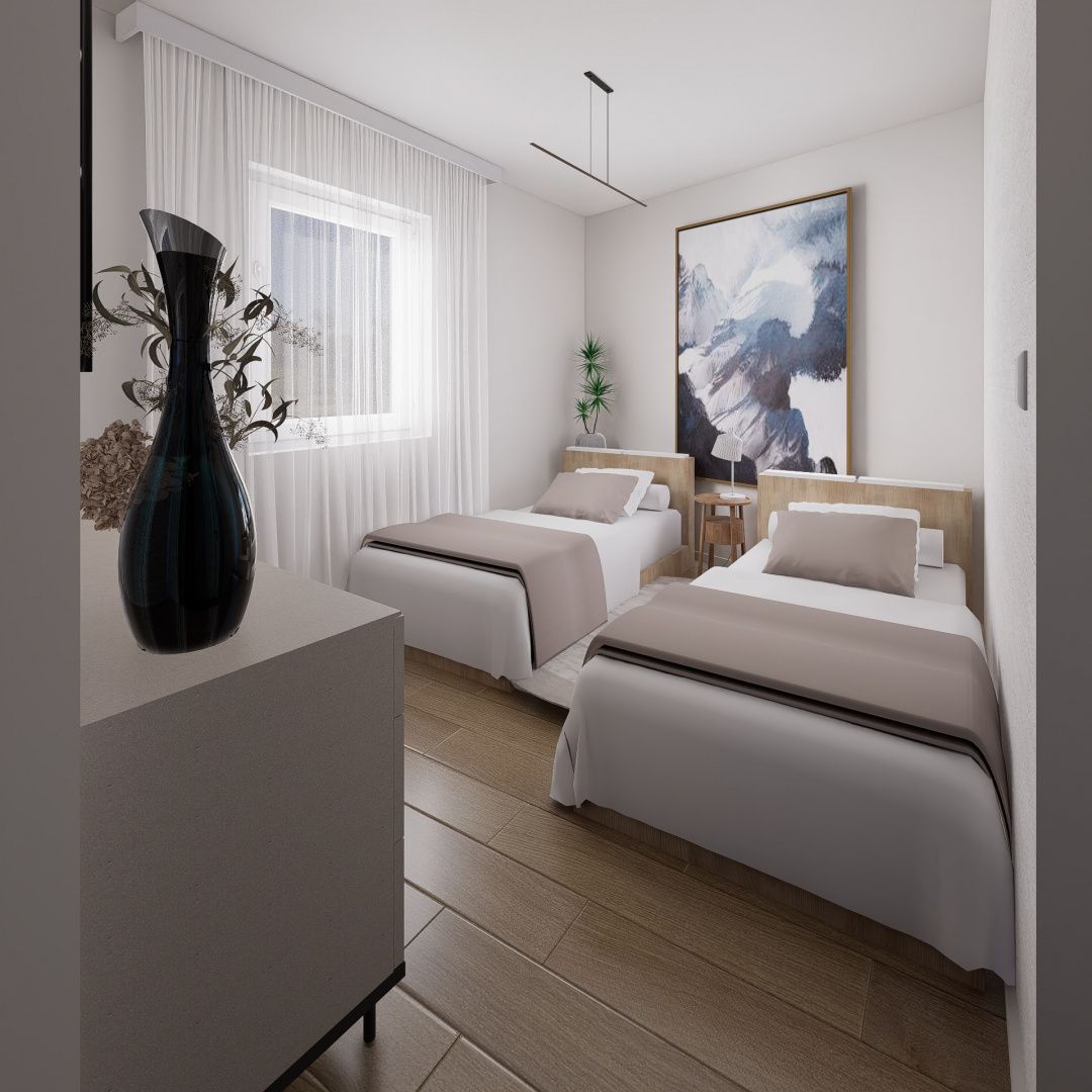 CRIKVENICA – 3-Zimmer-Wohnung mit Garage, 130 m vom Meer entfernt Eine 3-Zimmer-Wohnung mit Garage steht zum Verkauf. Sie befindet sich in unmittelbarer Nähe des angelegten Badestrandes und der Anlegestellen für private Boote im kleinen Hafen von Podvorska. Die Wohnung erstreckt sich über die gesamte erste Etage des Gebäudes und bietet eine Bruttogeschossfläche von 101 m². Eine private Treppe führt ins Erdgeschoss, wo sich die Garage mit einer Nettofläche von 17 m² befindet. Zusammen mit einem Teil der Treppe und der Garage beträgt die Wohnfläche der Wohnung 120,76 m². Alle erforderlichen Dokumente sind vorhanden. Aus erster Hand. Sofort bezugsfertig. HINWEIS: Die Wohnung wird unmöbliert verkauft! Die Bilder und das beigefügte Video, die die möblierte Wohnung zeigen, stellen eine fiktive Darstellung der Einrichtung dar, um dem Käufer eine mögliche Raumaufteilung zu veranschaulichen. Diese kann in Absprache mit dem Architekten/Designer exakt umgesetzt werden. TECHNISCHE BESCHREIBUNG: 1. LAGE - Die Wohnung befindet sich im obersten Stockwerk eines neu sanierten Gebäudes mit drei Wohnungen, das im Juli 2025 fertiggestellt wurde. Sie bietet Meerblick und Blick auf den Yachthafen. Der angelegte Strand mit Cafés und der Yachthafen „Podvorska“ mit Anlegemöglichkeiten für eigene Boote sind vom Gebäude aus in zweieinhalb Minuten zu Fuß erreichbar. Das Zentrum, d. h. die Uferpromenade von Crikvenica, ist in zehn Minuten zu Fuß erreichbar. Der Markt und das Kaufhaus von Crikvenica sind in acht Minuten zu Fuß erreichbar. Zur Wohnung gehört außerdem eine Garage mit ebenerdiger Zufahrt von der Straße. Möglichkeit zum Anlegen eines Bootes im Hafen von Podvorska. 2. KONSTRUKTION - Die Geschossdecken bestehen aus 16 cm dicken Stahlbetonplatten mit zusätzlichen Dämmschichten und Bodenbelägen. Die Innenwände sind größtenteils aus Betonsteinen gefertigt. Das Flachdach wurde mit besonderer Sorgfalt und mehreren Schichten Wärmedämmung sowie Wasser- und Schalldämmung mit einer Gesamtdicke von 64 cm errichtet. Das Dach ist neu und verfügt über eine 30-jährige Garantie auf die verwendeten Materialien gemäß den Herstellerzertifikaten. Die Garantie für die Dacharbeiten beträgt 10 Jahre. Der gesamte Boden, einschließlich der Terrasse, ist mit hellen Eichendekor-Keramikfliesen (122 x 20 x 9 mm) des italienischen Herstellers ANTICA CERAMICA gefliest. Die Garage ist mit dunkelgrauen Keramikfliesen ausgelegt. Die Verbindung zwischen der Garage im Erdgeschoss und der Wohnung im ersten Obergeschoss erfolgt über ein eigenes Treppenhaus. 3. Beschreibung der Ausstattung allgemein und nach Räumen - Die Wohnung verfügt über eigene Zähler für Wasser- und Stromverbrauch. Alle Außenfenster und -türen bestehen aus 9-Kammer-PVC-Profilen des deutschen Herstellers GEALAN mit integriertem Dreifachglas (4 + 12 + 4 + 12 + 4 mm), das mit Argon gefüllt ist und über zwei Schichten einer LOW-E-Reflexionsschicht verfügt. Dies sorgt für maximalen Wärme-, Schall- und Sonnenschutz. Am Wohnungseingang ist eine große, einbruch- und feuerfeste Tür des Herstellers BLINDOOR (1030 x 2170 x 75 mm) in Wenge-Optik mit 5 Jahren Garantie installiert. Alle Innentüren sind Sonderanfertigungen eines italienischen Herstellers, mattweiß lackiert mit Zierlinien, verdeckten Scharnieren und Magnetverschlüssen. Die Wohnung wird mit einem DAIKIN Inverter-Multisplit-System mit drei leisen Innengeräten beheizt und gekühlt. Heizung und Kühlung lassen sich per WLAN fernsteuern. Für die gesamte Klimaanlage besteht Garantie. 3.1 Schlafzimmer Süd - Zwei nebeneinanderliegende Fenster, L=256 cm, mit kombinierter Öffnung - Zwei Aluminium-Rollläden mit motorisierter Öffnung - Moskitonetze an den Fenstern 3.2 Schlafzimmer Nord - Doppelflügelfenster mit außenliegenden Aluminium-Rollläden - Moskitonetz am Fenster 3.3 Wohnzimmer - Glaswand mit vier Glasflügeln, die den Raum vollständig zur Terrasse hin öffnet 3.4 Küche - Glasschiebewand, die sich zur Terrasse hin öffnen oder teilweise kippen lässt - Alle Elektro-, Sanitär- und Lüftungsinstallationen sind für den Einbau der im Plan vorgesehenen Küche vorbereitet 3.5 BADEZIMMER - LAUFEN WC-Becken + selbstschließender Sitz - GEBERIT Einbau-WC - LAUFEN Bidet - HANS GROHE Bidetarmatur - Waschtischunterschrank + Designarmatur - Eckduschkabine 100 x 80 cm - Duscharmatur und HANS GROHE Aufsatzbrause - zusätzliche, integrierte Handbrause - integrierte LED-Beleuchtung mit Farbregelung - leiser, integrierter HELIOS-Ventilator mit einstellbarer Ein- und Ausschaltzeit nach Lichtschaltung - elektrische Fußbodenheizung mit WLAN-Fernsteuerung - Wasser- und Stromanschluss für Waschmaschine - Wandhaartrockner Valera (1800 Watt) 3.6. TERRASSE - Großzügiger Essbereich mit Essbereich, verbunden durch eine vierflügelige Glastür und eine Glasschiebewand - Die Terrasse ist durch eine attraktive Glasbrüstung von außen abgeschirmt. 3.7. GARAGE - Sektionaltor von HORMAN mit Fernbedienung, Breite 314 cm. Garagenmaße: L x B x H = 5,0 x 3,6 x 3,6 m. - Eingebautes Waschbecken mit Klapparmatur und separatem Wasseranschluss für den Gartenschlauch. - Separater Elektroschrank und zusätzliche Steckdosen. Eine ideale Immobilie für Familien, zum Wohnen und als Kapitalanlage. Für weitere Informationen wenden Sie sich bitte an einen Makler.