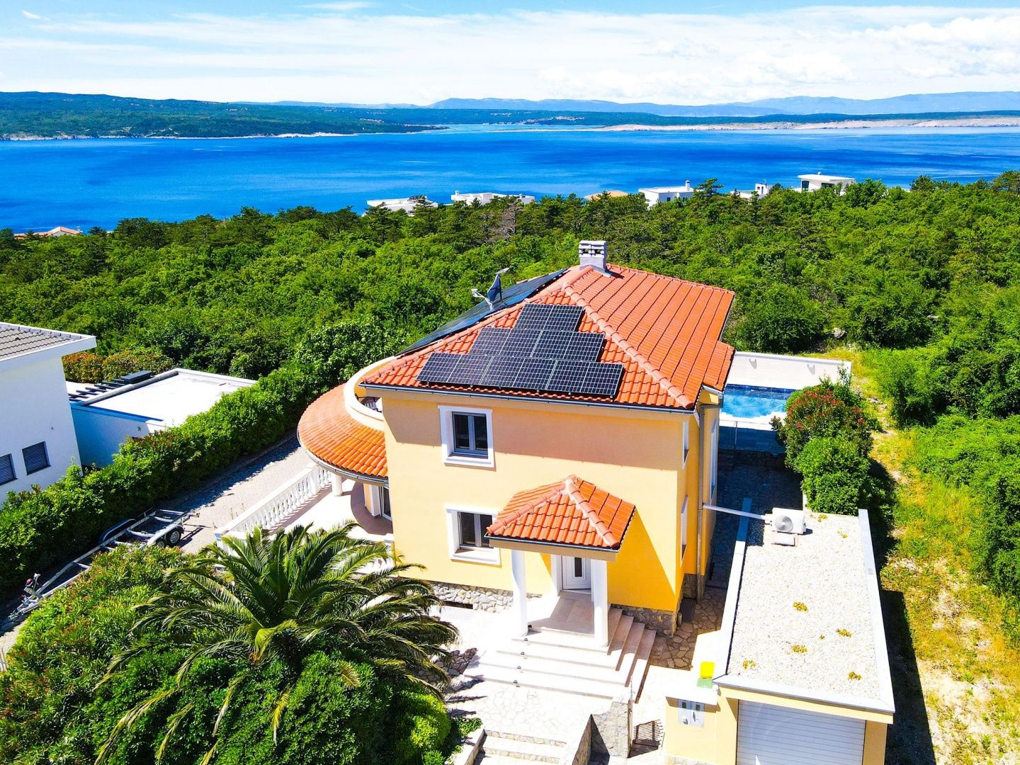 CRIKVENICA – Villa mit Pool und Adriablick, 300 m² In einer ruhigen Gegend von Crikvenica, einer Stadt, die für ihre bezaubernden Strände, Strandpromenaden und ihre lange touristische Tradition bekannt ist, steht eine geräumige und luxuriöse Villa mit privatem Pool und einem atemberaubenden Blick auf die Adria zum Verkauf. Das Anwesen befindet sich auf einem 700 m² großen Grundstück und vereint mediterranen Charme, modernen Komfort und Privatsphäre auf perfekte Weise. Es bietet viel Platz für das Familienleben oder als luxuriöse Ferienimmobilie. Die Villa ist in Untergeschoss, Erdgeschoss und Obergeschoss unterteilt. Im Untergeschoss befindet sich eine Dreizimmerwohnung mit zwei Badezimmern, einem großzügigen Wohnbereich, einem Technikraum und Abstellräumen – ideal für Gäste oder eine separate Wohneinheit. Das Obergeschoss ist hell und offen gestaltet: Ein Wohnzimmer mit Kamin, eine Wohnküche, ein Schlafzimmer, ein Badezimmer und ein Abstellraum führen direkt auf eine große überdachte Terrasse und in den Garten – der perfekte Ort zum Entspannen und Beisammensein. Im Obergeschoss befinden sich drei luxuriöse Schlafzimmer, darunter ein Hauptschlafzimmer mit eigenem Ankleidezimmer und Badezimmer. Alle Zimmer öffnen sich zu einer Terrasse mit Panoramablick auf das Meer und die Uferpromenade. Der wunderschön angelegte Garten bietet einen Swimmingpool mit Sonnenterrasse, Grillplatz, Whirlpool, großzügige Außenbereiche zum geselligen Beisammensein sowie zwei Garagen (25 und 35 m²!) und mehr als sieben Parkplätze. Die Villa ist mit Zentralheizung, Klimaanlage, PVC-Fenstern und Solaranlage ausgestattet. Meer und Strand sind nur 800 Meter entfernt. Die Lage, kombiniert mit moderner Infrastruktur, luxuriöser Ausstattung und der Nähe zum historischen Zentrum von Crikvenica, macht diese Immobilie zu einer seltenen Gelegenheit für Familien oder zu einer äußerst rentablen touristischen Investition. Sehr geehrte Kaufinteressenten, wir freuen uns über Ihr Interesse an den Immobilien in unserem Angebot. Für weitere Informationen und zur Vereinbarung eines Besichtigungstermins kontaktieren Sie uns bitte. Eine Besichtigung ist nur mit Unterzeichnung eines Maklervertrags möglich. Die Vermittlungsgebühr wird gemäß den Allgemeinen Geschäftsbedingungen berechnet: https://www.dux-nekretnine.hr/opci-uvjeti-poslovanja