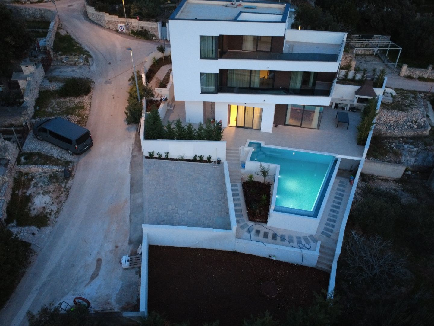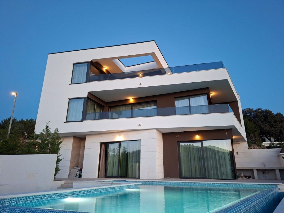DALMATIEN, RAŽANJ – Elegante „Diamant“-Villa in der Bucht von Stivašnica Es gibt wunderschöne Immobilien – und solche, die man sofort spürt, wenn man sie sieht. Diese Villa ist genau das. Gelegen in der ruhigen und exklusiven Bucht von Stivašnica, nur 100 Meter vom Meer entfernt, bietet sie von jeder Etage einen freien und beruhigenden Blick auf die Adria. In einer der begehrtesten Lagen an der dalmatinischen Küste, in der Bucht von Stivašnica bei Rogoznica, befindet sich eine Villa, die moderne Architektur, Privatsphäre und höchsten Komfort kompromisslos vereint. Nur 100 Meter vom Meer entfernt bietet dieses einzigartige Anwesen von jeder Etage einen freien, unverbauten Blick auf die Adria. - Fläche: 300 m² - 3 Schlafzimmer - 4 Badezimmer - 2 Parkplätze - Baujahr: 2023 Das architektonische Konzept der Villa basiert auf der Eleganz klarer Linien und der optimalen Nutzung von Tageslicht. Die Lage am Ende einer ruhigen Straße garantiert absolute Diskretion und ein heutzutage seltenes Maß an Privatsphäre. Das Erdgeschoss präsentiert sich als repräsentativer, offener Wohnbereich, in dem Wohnzimmer, Küche und Esszimmer harmonisch ineinander übergehen und direkten Zugang zu einer großzügigen Terrasse bieten. Bodentiefe Glaswände lassen die Grenzen zwischen Innen und Außen verschwimmen und schaffen so den Eindruck eines durchgehenden Raumes. Der Außenbereich ist auf höchsten Genuss ausgelegt: Ein U-förmiger Infinity-Pool mit integriertem Whirlpool, eine Außenküche und ein Essbereich bieten den idealen Rahmen für private Treffen oder elegante Abende am Meer. Der Innenbereich wird durch eine beeindruckende Galerie mit einer freitragenden Edelstahltreppe, die alle Etagen verbindet, zusätzlich betont und verleiht dem Raum eine unverwechselbare architektonische Note. Im ersten Obergeschoss befinden sich zwei luxuriöse Schlafzimmer mit jeweils eigenem Bad und Zugang zur Terrasse. Ein zusätzlicher Galeriebereich bietet flexible Nutzungsmöglichkeiten – ob als privater Fitnessraum, Lounge oder Arbeitsbereich. Das gesamte zweite Obergeschoss ist der Master-Suite vorbehalten – einer intimen Oase mit großzügiger Terrasse und privatem Whirlpool, ideal zum Entspannen mit Panoramablick auf das Meer. Die Deckenhöhe von bis zu 3 Metern auf allen Etagen trägt zusätzlich zum luftigen und exklusiven Ambiente bei. Ausstattung: Bosch-Geräte, HIK-Kameras, Ajax-Alarmanlage, Samsung-Klimaanlagen, Magnum-Fußbodenheizung, Astralpool-Pooltechnologie (Elektrolyse-Poolheizung und -kühlung), Aluminium-Einbau, Garage und Pergola nach Absprache. Der Preis beinhaltet Möbel, Einrichtung, Dekoration und Geräte. Die Bucht von Stivašnica ist als ruhiges und exklusives Wohngebiet bekannt, während Rogoznica die perfekte Balance aus authentischem mediterranem Charme und moderner Infrastruktur bietet – darunter die berühmte Marina Frapa, erstklassige Restaurants und gepflegte Promenaden. In unmittelbarer Nähe befindet sich der Leuchtturm Mulo, ein Wahrzeichen der Region und ein Naturphänomen, das durch das Zusammentreffen von Meeresströmungen für außergewöhnliche Wasserreinheit sorgt. Der Flughafen Split ist nur 35 Autominuten entfernt, was diese Immobilie aus Investorensicht äußerst attraktiv macht. Die Villa stellt eine seltene Gelegenheit auf dem Markt dar – eine perfekte Synthese aus Architektur, Lage und Lebensstil, für Käufer, die sich nicht mit dem Durchschnitt zufriedengeben.
