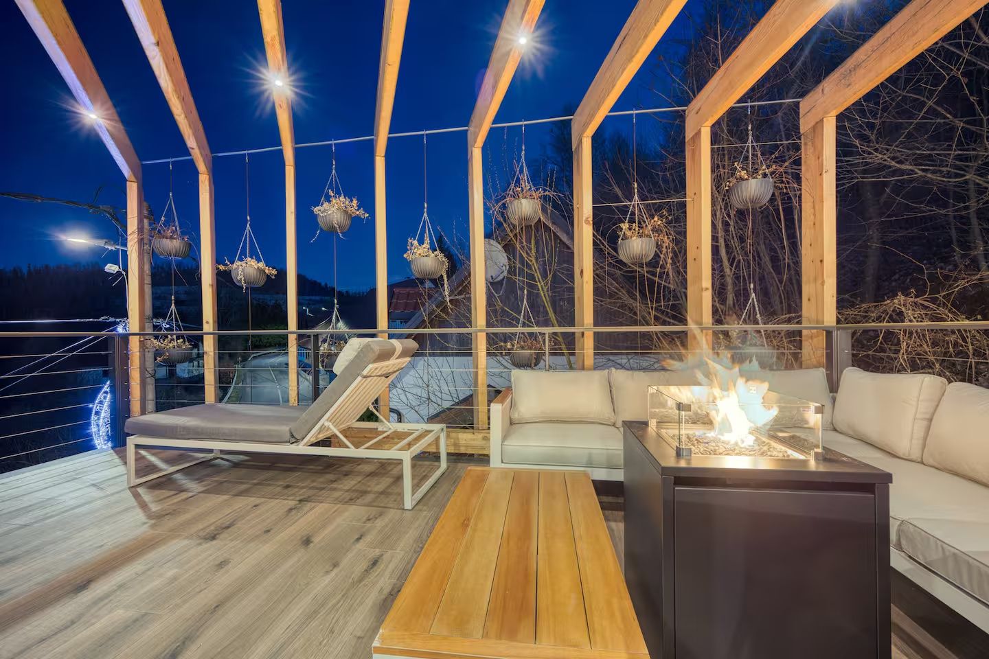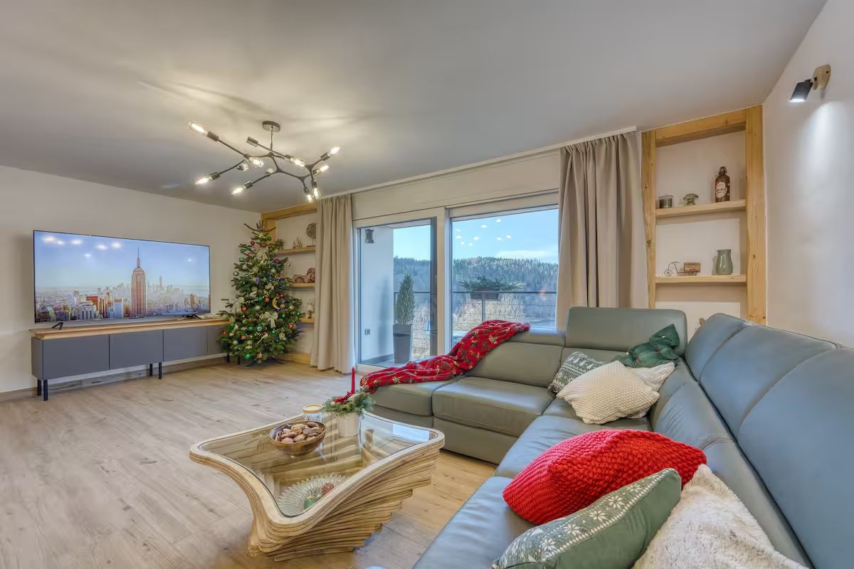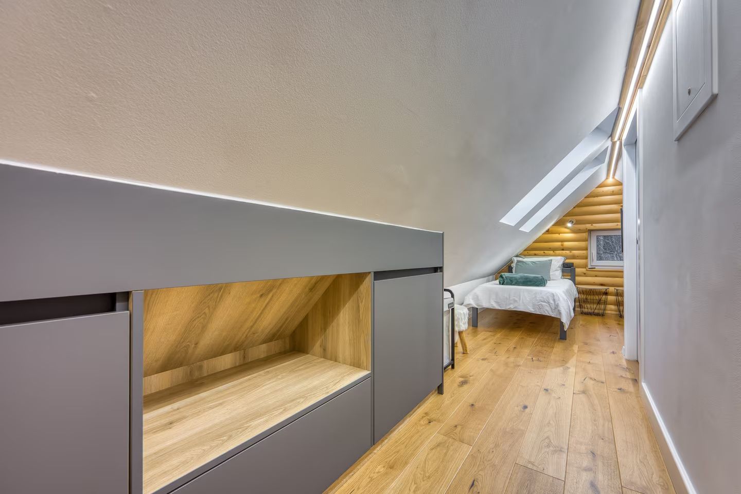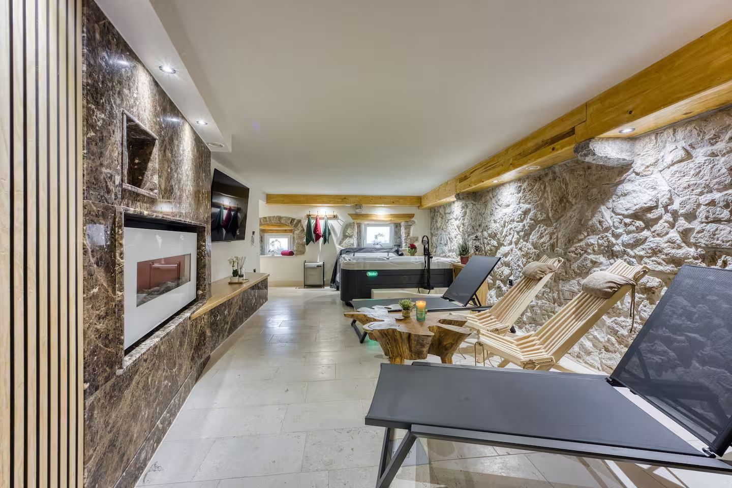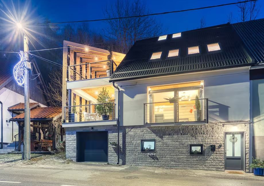 GORSKI KOTAR, FUŽINE – Berghaus mit Wellnessbereich und Seeblick, 180 m² Im grünen Herzen von Gorski Kotar, umgeben von frischer Bergluft, liegt ein komplett renoviertes und modern gestaltetes Haus, das Komfort und Natur harmonisch vereint. Es befindet sich in Fužine, nur wenige Minuten vom Ortszentrum entfernt und dennoch ruhig gelegen, um einen ungestörten Blick auf See und Wald zu bieten. Das Haus erstreckt sich über mehrere Etagen, die durch eine Innentreppe miteinander verbunden sind und so einen dynamischen und zugleich funktionalen Grundriss schaffen. Im Erdgeschoss befindet sich ein privater Entspannungsbereich mit Sauna und Whirlpool, einer zusätzlichen Küchenzeile und einem Badezimmer. Die eigene Wasserquelle ist ein besonderes Highlight und verleiht dem Anwesen zusätzliche Authentizität und Praktikabilität. Das Hauptwohngeschoss ist als offener Raum gestaltet, in dem Wohnzimmer, Küche und Esszimmer fließend ineinander übergehen. Ein Kaminofen sorgt in den Wintermonaten für behagliche Wärme, während Fußbodenheizung und Wärmepumpe ganzjährig für angenehme Temperaturen sorgen. Der Wohnbereich öffnet sich zu einer überdachten Terrasse mit Sommerküche und Grill – ideal zum geselligen Beisammensein, während die Farben des Sees in der Ferne schimmern. In den oberen Etagen befinden sich geräumige Schlafzimmer mit jeweils eigenem Bad, während im Dachgeschoss ein zusätzliches Zimmer mit separaten Betten und separatem WC zur Verfügung steht. Die Raumaufteilung ermöglicht Privatsphäre und gleichzeitig ein Gefühl der Verbundenheit mit dem gesamten Haus. Zwei Terrassen erweitern den Wohnraum zur Natur hin, und ein Parkplatz sowie eine Garage von ca. 4 x 3,5 Metern runden das Angebot ab. Weitere Parkmöglichkeiten befinden sich direkt gegenüber. Die Lage bietet hervorragende Verkehrsanbindungen. Delnice ist nur 15 Autominuten entfernt, während Platak ideal für Skifahrer und Wanderer ist. Rijeka ist in weniger als einer halben Stunde erreichbar, und Zagreb ist etwa eine Autostunde entfernt. Damit ist dieses Anwesen der perfekte Rückzugsort vom Alltag. Der Winter bringt eine Schneedecke und Stille, die nur vom Knistern des Kaminfeuers unterbrochen wird, während der Sommer die Saison für Schwimmen, Spaziergänge am See und Abende auf der Terrasse unter dem Sternenhimmel einläutet. Dieses Haus ist nicht nur ein Wohnort, sondern ein ganzjähriger Rückzugsort, an dem die Jahreszeiten ihren ganz eigenen Charme entfalten. Sehr geehrte Kaufinteressenten, wir freuen uns über Ihr Interesse an den Immobilien in unserem Angebot. Für weitere Informationen und zur Vereinbarung eines Besichtigungstermins kontaktieren Sie uns bitte. Eine Besichtigung ist nur mit Unterzeichnung eines Maklervertrags möglich. Die Maklergebühr richtet sich nach den Allgemeinen Geschäftsbedingungen: https://www.dux-nekretnine.hr/opci-uvjeti-poslovanja