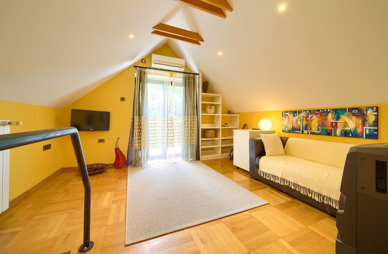 GROBNIK – Haus im Wald, absolute Ruhe, saubere Luft und perfekte Anbindung an Meer, Berge und Picknickplätze, 198 m² 198 m² Wohnfläche auf einem fast 1200 m² großen, umzäunten Grundstück – nur 15 Minuten von Rijeka entfernt Umgeben von dichtem Wald und fernab vom Stadtlärm steht eine Villa auf einem fast 1200 m² großen, umzäunten Grundstück zum Verkauf. Auf 450 Metern über dem Meeresspiegel gelegen, in einer naturnahen Umgebung mit außergewöhnlich sauberer Luft, bietet dieses Anwesen ideale Bedingungen für ein gesundes, entspanntes und ruhiges Leben – weit genug vom Großstadttrubel entfernt und doch in der Nähe aller wichtigen Annehmlichkeiten. Das Haus erstreckt sich über drei Etagen und bietet insgesamt 198 m² Wohn- und Nutzfläche. Im Untergeschoss befindet sich ein speziell isolierter Raum mit Doppelwänden, der als Musikstudio, aber auch ideal als Atelier, Bibliothek, Arbeitszimmer oder Hobbyraum genutzt werden kann. Das Erdgeschoss umfasst eine Wohnküche, ein Schlafzimmer, ein Badezimmer mit WC und eine Garage. Im ausgebauten Dachgeschoss befinden sich ein Wohnzimmer, ein weiteres Schlafzimmer, ein zweites Badezimmer mit WC und eine überdachte Terrasse, von der aus man die Ruhe der Waldlandschaft genießen kann. Die Beheizung erfolgt über eine zentrale Heizkörperanlage. Zusätzlich sorgen drei Klimaanlagen und ein Kamin im Keller für behagliche Wärme. Ein Glasfaserkabel verläuft am Haus entlang; ein Anschluss kann beantragt werden. Vorbereitungen für Videoüberwachung und Bewegungsmelder an allen Fassaden wurden getroffen, und drahtlose Sicherheitskameras sind bereits installiert. Das Grundstück ist eingezäunt und als Gartenpark angelegt, mit sorgfältig gestalteten Grünflächen, die eine Vielzahl von Pflanzen, Blumen und Bäumen umfassen. Große Terrassen laden zu jeder Jahreszeit zum Verweilen ein. Drei private Parkplätze und eine Garage stehen zur Verfügung. Neben dem Haupthaus befinden sich zwei weitere Gebäude auf dem Grundstück: ein Abstellraum (22 m²) und ein Nebengebäude (13 m²). Die Lage bietet zahlreiche Möglichkeiten für ein aktives und naturnahes Leben. Das Meer und die Strände sind etwa 15 Minuten entfernt, das Skigebiet Platak und der Picknickplatz sind in 20 Minuten erreichbar, und bekannte Touristenziele wie Opatija, Učka und die Rennstrecke von Grobnik befinden sich in unmittelbarer Nähe. Die Nähe des Flusses Rječina und seiner Quellen bietet ein besonderes Erlebnis – ein idealer Ort zum Spazierengehen, Entspannen und Auftanken inmitten unberührter Natur. Die Gegend ist reich an Wanderwegen, Naturphänomenen und historischen Sehenswürdigkeiten und daher sowohl für dauerhaftes Wohnen als auch für Kurzaufenthalte äußerst attraktiv. Das Haus liegt in der Nähe der Stadt Grobnik, die für ihr pulsierendes Kulturleben und ihre zahlreichen Veranstaltungen bekannt ist. Die Stadt Rijeka, das wichtigste Stadt- und Verkehrszentrum der Kvarner-Region, ist nur 15 Autominuten entfernt, und die Autobahnanbindung erleichtert das tägliche Reisen zusätzlich. Dieses Haus ist mehr als nur eine Immobilie – es ist eine Einladung zu einem gehobeneren, ruhigeren und gesünderen Lebensstil mitten in der Natur. Sehr geehrte Kaufinteressenten, wir freuen uns über Ihr Interesse an den Immobilien in unserem Angebot. Für weitere Informationen und zur Vereinbarung eines Besichtigungstermins kontaktieren Sie uns bitte. Eine Besichtigung ist nur mit Unterzeichnung eines Maklervertrags möglich.