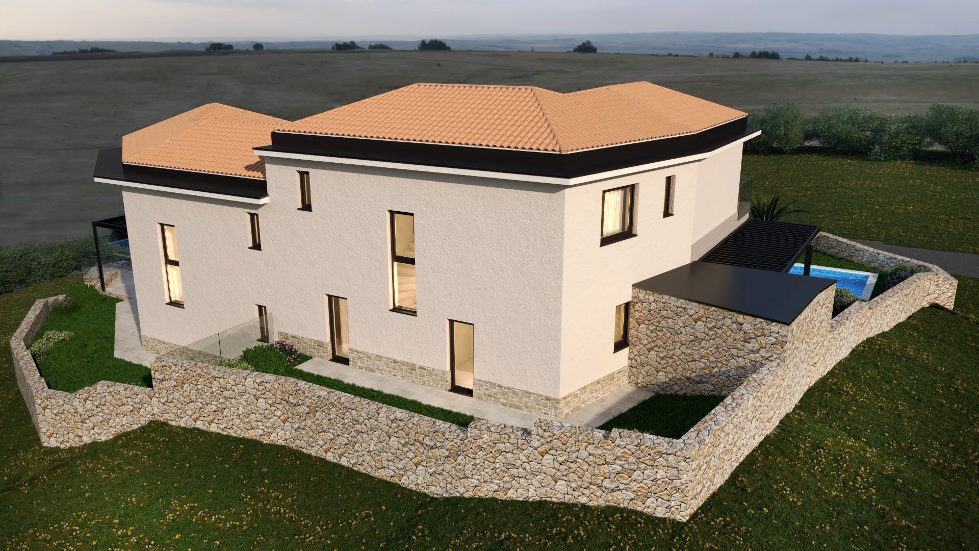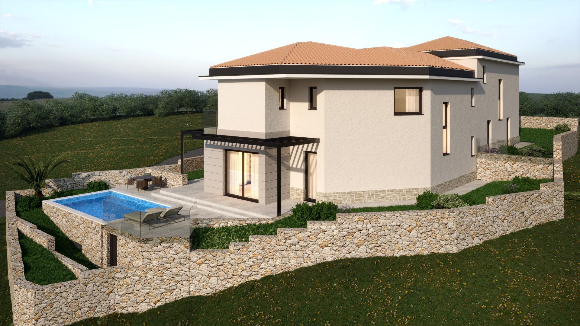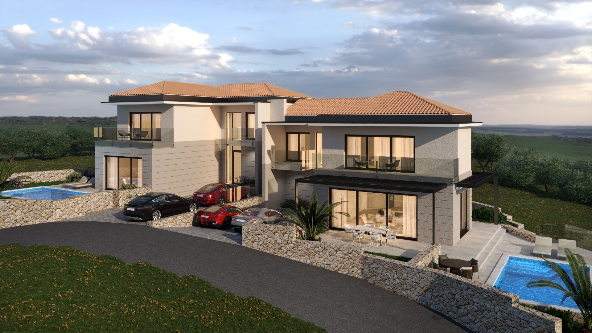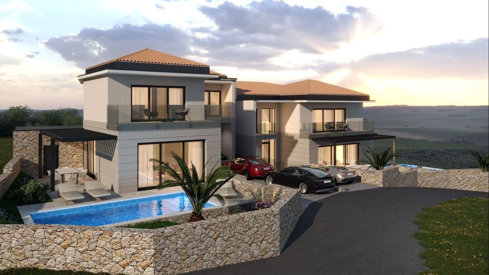 INSEL KRK, VRBNIK - Doppelhaushälfte mit Meerblick Diese besondere Doppelhaushälfte befindet sich an einem wunderschönen Ort auf der Insel Krk. Es liegt auf einem Hügel über dem Meer mit einem wunderbaren Blick darauf. Es hat 172 m2 und zwei Etagen. Im Erdgeschoss gibt es eine Eingangshalle, ein großes Zimmer, ein Badezimmer, einen Technikraum, eine Küche mit Esszimmer und ein großes Wohnzimmer, das sich zu einem gepflegten Garten mit Swimmingpool, Liegewiese und Abstellraum öffnet Zimmer. Im Obergeschoss befinden sich drei Schlafzimmer, jedes mit eigenem Bad und Ausgang zum Balkon. Die Anlage verfügt über zwei Parkplätze. VRBNIK ist ohne Zweifel einer der bekanntesten kroatischen Orte. Dies ist dem glagolitischen Erbe und dem berühmten Volkslied mit unverwechselbarer Melodie und Inhalt zu verdanken, das in einer Reihe von Varianten Vrbniča nad Morem interpretiert und arrangiert wurde. Und Vrbnik liegt, wie andere alte Burgen auf der Insel, hoch oben, in einer Höhe von fast 50 Metern und an einem ganz besonderen Ort auf einer Klippe, die buchstäblich ins Meer stürzt. Zusammen mit Šilo in Dobrinjština ist es der einzige größere Ort an der Ostküste der Insel Krk. Erstmals urkundlich erwähnt wurde sie um 1100. Die Einwohner waren hauptsächlich in der Landwirtschaft tätig, weniger in der Seefahrt und Fischerei. Heute ist das berühmteste Produkt des Vrbnica-Feldes und Vrbniks im Allgemeinen der goldgelbe Wein - Žlahtina; es wurde in einem größeren kroatischen Maßstab berühmt. Nach den Geschichten älterer Einheimischer wurde, bevor der Wein berühmt wurde, Getreide auf dem Feld angebaut, um Familien zu ernähren, die mehr Mitglieder hatten als heute. Unter solchen Bedingungen wurden die Reben an den Rändern der Felder angebaut, da es keinen Markt gab und Wein nur für den Eigenbedarf produziert wurde. Mit seiner reichen Geschichte wird Vrbnik als Wiege der kroatischen Alphabetisierung bezeichnet und ist sicherlich einer der ältesten Orte auf der Insel Krk. Vrbnik wird von engen Gassen dominiert, daher ist es nicht verwunderlich, dass sich hier die engste Straße der Welt befindet.