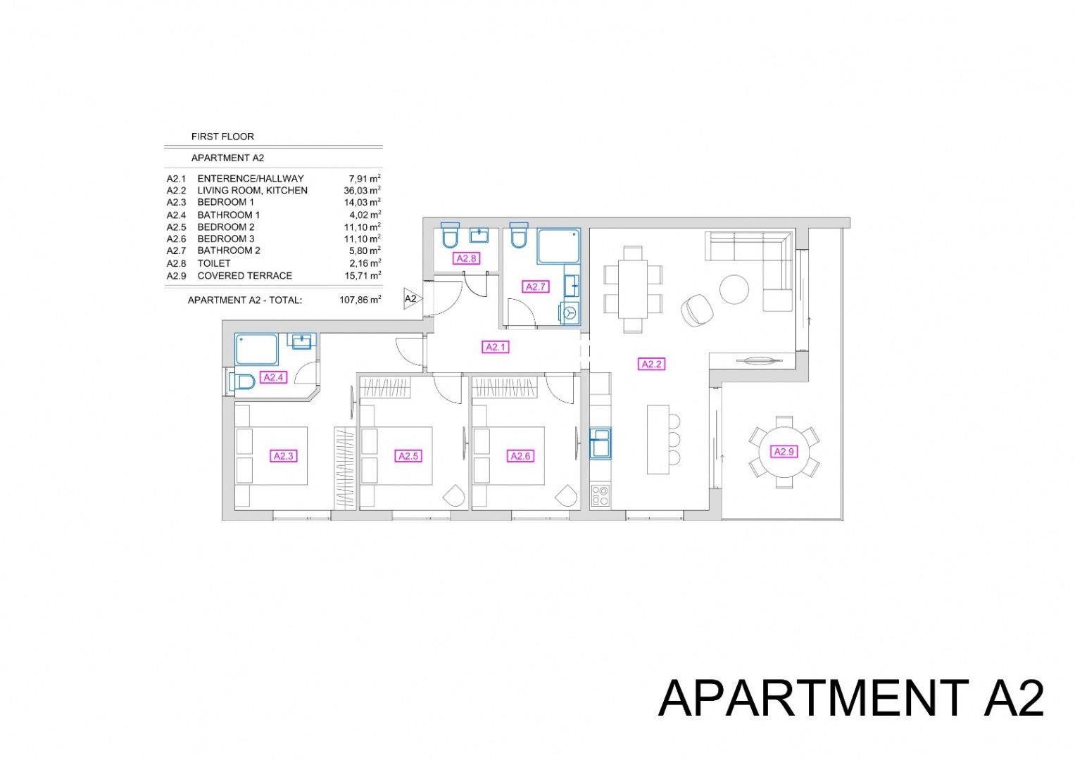 INSEL KRK, VRBNIK – Wohnung im 1. Stock mit Terrasse Wir präsentieren einen modernen Neubau in Vrbnik mit sechs Wohneinheiten am Rande des Grüngürtels! – Hochwertige Konstruktion und Ausstattung. Wir heben hervor: elektrische Fußbodenheizung mit WLAN-Steuerung (Wohnzimmer, Bad und WC), Daikin-Klimaanlagen in den Schlafzimmern und im Wohnzimmer, einen 180–200-Liter-Boiler, Keramik in Holzoptik, PVC-Außenschreinereiarbeiten, Innentüren aus Holz mit versteckten Scharnieren und Magnetverschluss sowie ein Videoüberwachungssystem. – Gebäude in ruhiger Lage mit viel Privatsphäre und wunderschöner Aussicht, nur 350 Meter vom Meer entfernt! Wir heben für Sie hervor: Wohnung im 1. Stock mit Terrasse – Fläche 108 m2 – 3 Schlafzimmer (11 m2 – 14 m2) – 2 Badezimmer und 1 Toilette – offene Küche mit Esszimmer und Wohnzimmer – 36 m2 – überdachte Terrasse von 16 m2 – Meerblick – 2 Parkplätze Die Fertigstellung des Baus ist für Sommer 2026 geplant. Ausgezeichnete Gelegenheit für privaten Genuss oder Investition in die touristische Vermietung! ***