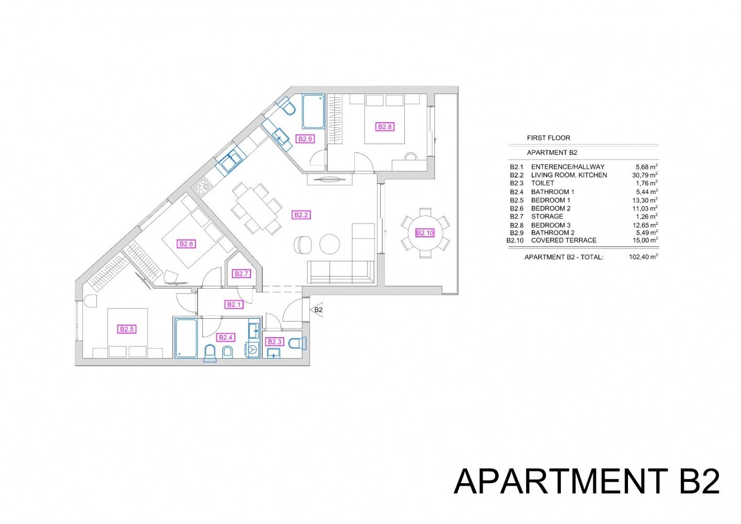 INSEL KRK, VRBNIK – Wohnung im 1. Stock mit Terrasse und Meerblick Wir präsentieren einen modernen Neubau in Vrbnik mit sechs Wohneinheiten, am Rande des Grüngürtels! – Hochwertige Konstruktion und Ausstattung. Wir betonen die elektrische Fußbodenheizung mit WLAN-Steuerung (Wohnzimmer, Bad und WC), Daikin-Klimaanlagen in den Schlafzimmern und im Wohnzimmer, einen 180–200-Liter-Boiler, Keramik in Holzoptik, PVC-Außenschreinereiarbeiten, Innentüren aus Holz mit versteckten Scharnieren und Magnetverriegelung sowie ein Videoüberwachungssystem. – Gebäude in ruhiger Lage mit viel Privatsphäre und wunderschöner Aussicht, nur 350 Meter vom Meer entfernt! Wir heben für Sie hervor: Wohnung im 1. Stock mit Terrasse und Meerblick – Fläche 102 m2 – 3 Schlafzimmer (11 m2 – 13,30 m2) – 2 Badezimmer und 1 Toilette – Abstellraum – offene Küche mit Esszimmer und Wohnzimmer – 31 m2 – überdachte Terrasse von 15 m2 – Meerblick – 2 Parkplätze Die Fertigstellung des Baus ist für Sommer 2026 geplant. Ausgezeichnete Gelegenheit für privaten Genuss oder Investition in die touristische Vermietung! ***