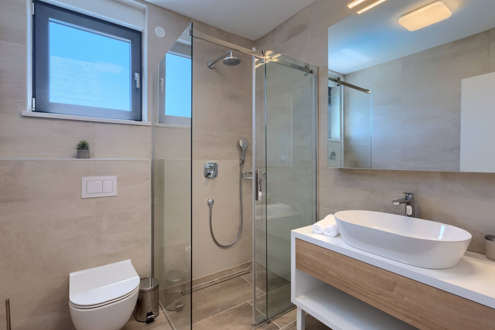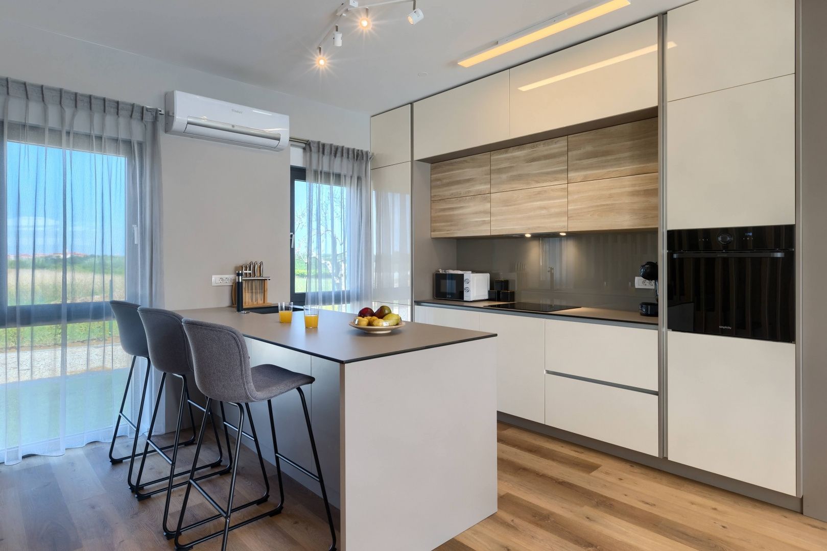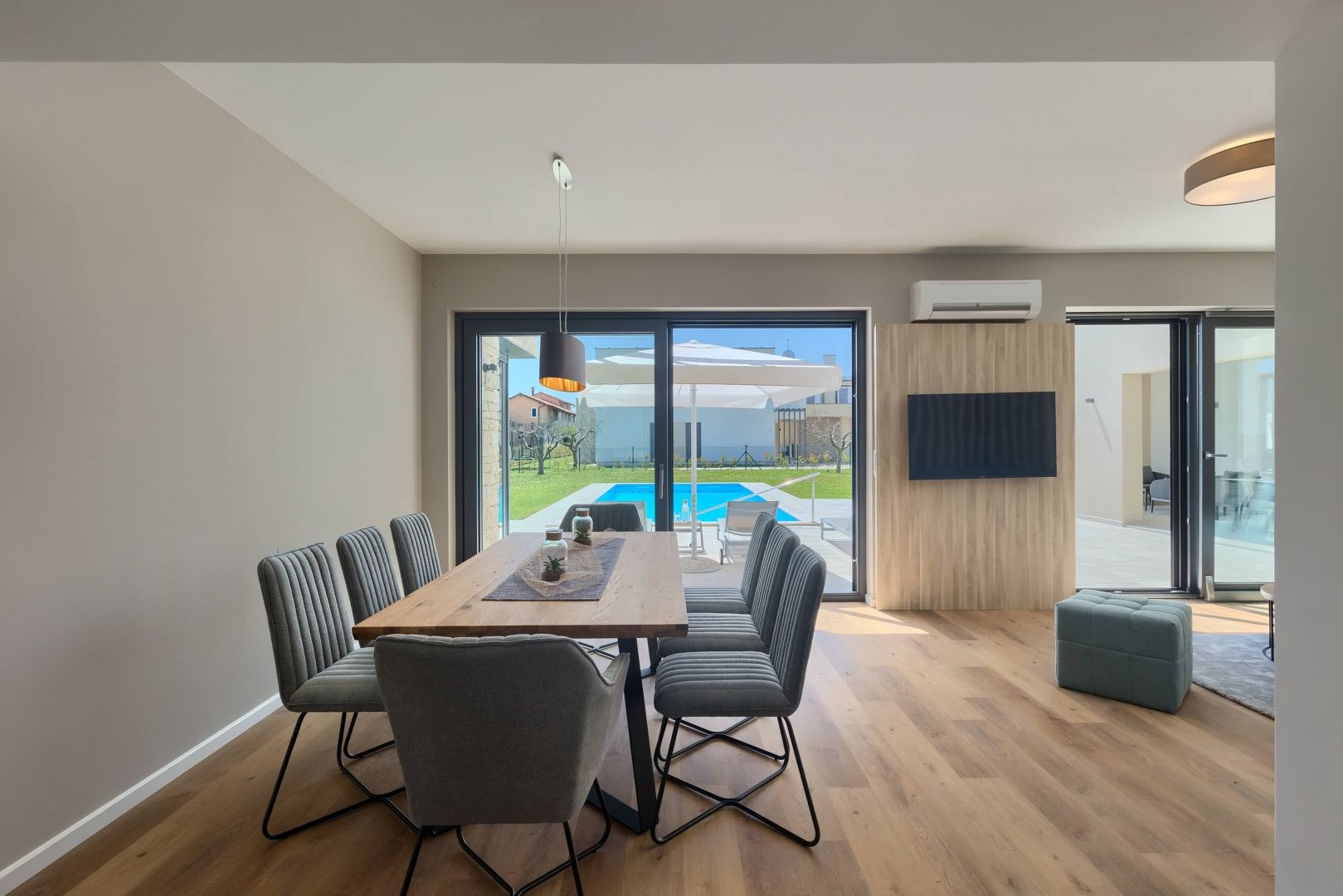 ISTRIEN, BRTONIGLA – Designer-Villa – Komfort und Luxus vereint Brtonigla ist ein charmantes istrisches Städtchen, bekannt für seine Olivenhaine, Weinberge und die ruhige Lebensart. Gleichzeitig ist es gut an die Küste und größere istrische Städte angebunden und somit ein äußerst begehrter Wohn- und Investitionsstandort. Unweit von Brtonigla, in ruhiger, grüner Lage, steht diese elegante und modern eingerichtete Villa zum Verkauf. Sie eignet sich ideal für Familien, Urlauber oder als Kapitalanlage zur touristischen Vermietung. Die Villa bietet eine Wohnfläche von 274 m² auf zwei Etagen mit einem funktionalen und durchdachten Grundriss. Im Erdgeschoss befinden sich eine Eingangshalle, ein großzügiges, offenes Wohnzimmer, eine moderne Küche mit Essbereich, ein Abstellraum, ein Technikraum, ein Gäste-WC mit Waschküche sowie ein Schlafzimmer mit eigenem Bad und direktem Zugang zum Pool. Im Obergeschoss befinden sich drei Schlafzimmer, jeweils mit eigenem Bad und Zugang zu einer privaten Terrasse, die ein hohes Maß an Komfort und Privatsphäre garantiert. Die Villa ist mit modernster Technik ausgestattet, darunter Solarpaneele auf dem Dach, Fußbodenheizung, Klimaanlage und alle notwendigen Installationen für einen angenehmen, energieeffizienten Aufenthalt das ganze Jahr über. Der Garten bietet: - einen großzügigen Garten von 560 m² mit Olivenbäumen - einen großen Swimmingpool mit 40 m² Strandbereich - einen Whirlpool - eine Sonnenterrasse und einen Loungebereich - eine überdachte Sommerküche mit Grill die absolute Privatsphäre und das perfekte Ambiente zum Entspannen und geselligen Beisammensein im Freien bietet. Die Immobilie wird bereits erfolgreich touristisch vermietet und verfügt über ein etabliertes Geschäft und hervorragende Bewertungen. Dies macht sie zu einer außergewöhnlichen Gelegenheit für Investoren, die eine sichere und sofortige Rendite suchen. Gleichzeitig ist die Villa die ideale Wahl für alle, die ein ruhiges und hochwertiges Leben in Istrien genießen möchten und dabei Natur, Luxus und Funktionalität verbinden wollen.