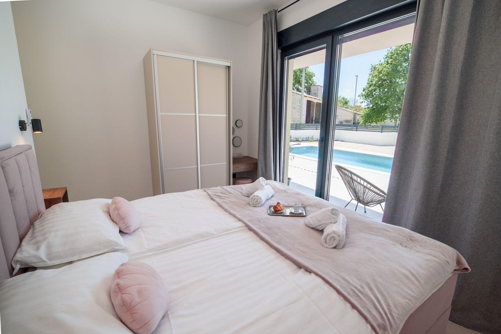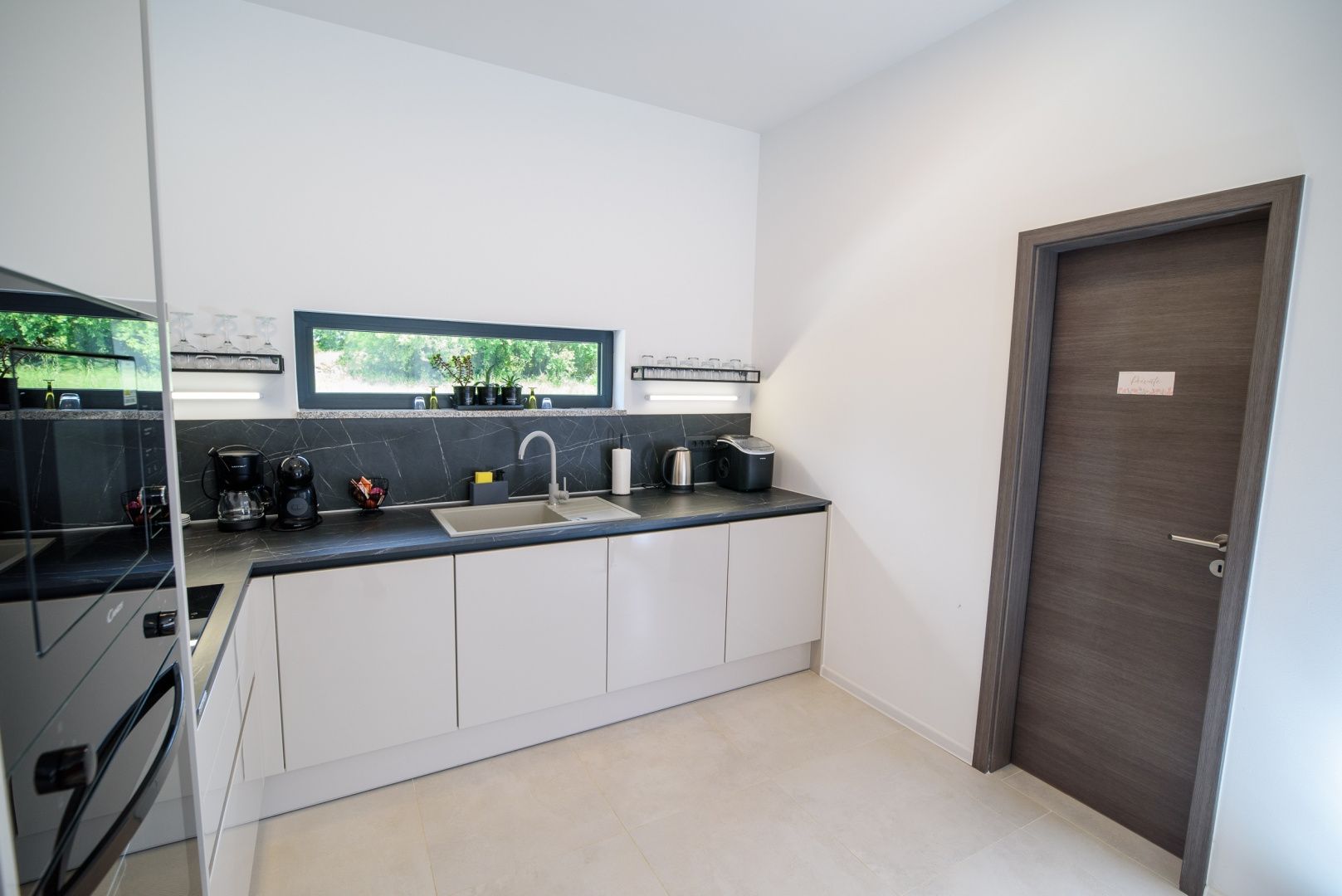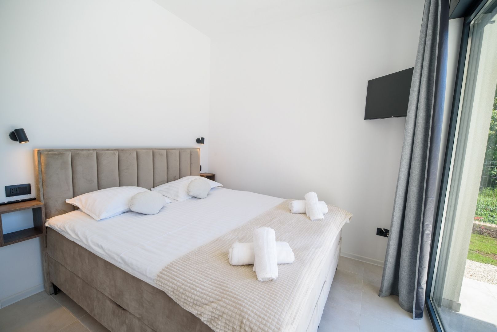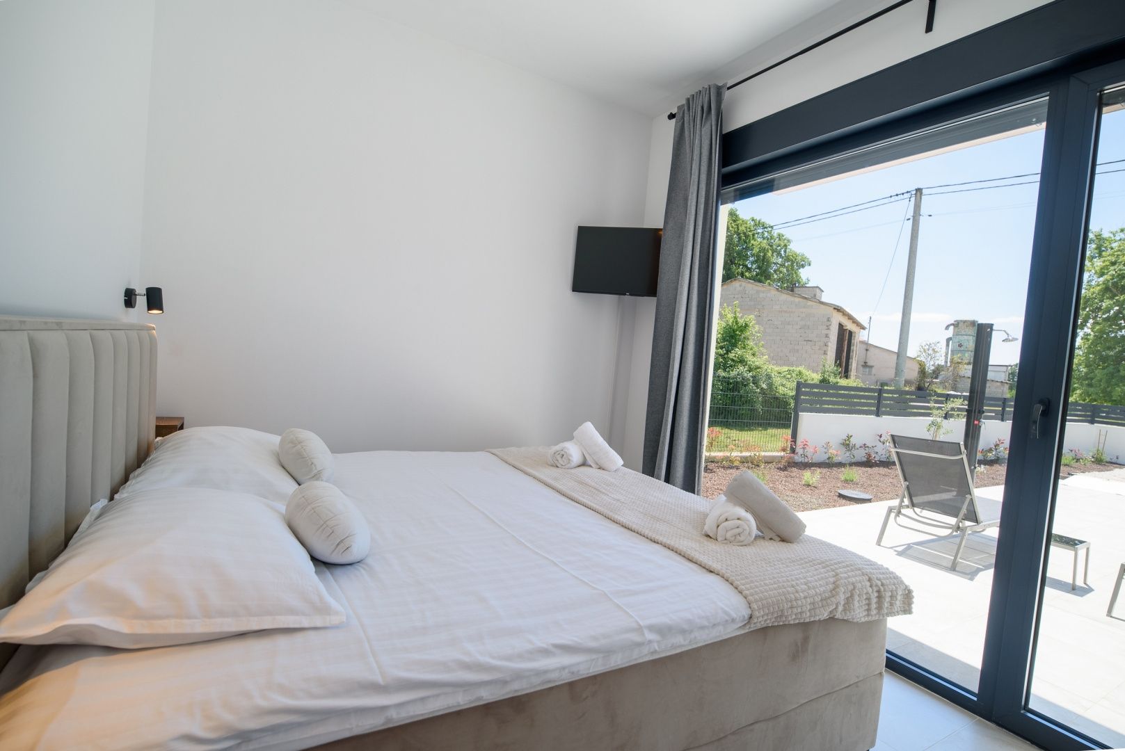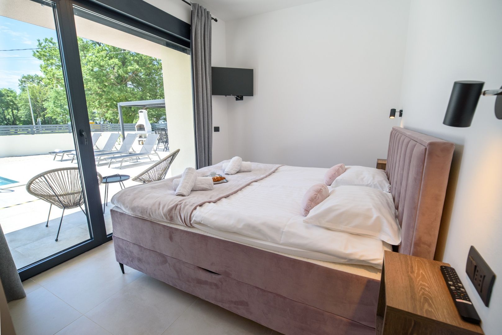 ISTRIEN, KANFANAR – Modernes Bungalow mit Pool In einer ruhigen, grünen Gegend Istriens, in unmittelbarer Nähe von Kanfanar, steht ein modernes und elegantes Bungalow mit Pool zum Verkauf. Das Haus ist komplett möbliert und sofort bezugsfertig oder kann weiterhin als Ferienimmobilie vermietet werden. Die Immobilie ist für die Vermietung zugelassen und generiert bereits nachweisbare Einnahmen und hervorragende Bewertungen, was sie zu einer äußerst attraktiven Investition macht. Die Villa befindet sich auf einem 614 m² großen, landschaftlich gestalteten und umzäunten Grundstück. Die Wohnfläche beträgt ca. 135 m². Das Haus wurde als funktionales und modernes Zuhause mit Fokus auf Komfort, Privatsphäre und einer fließenden Verbindung von Innen- und Außenbereich konzipiert. Der Innenbereich umfasst drei geräumige Schlafzimmer, jeweils mit eigenem Bad, die einen hohen Komfort für Familie und Gäste gewährleisten. Zusätzlich verfügt das Haus über ein Gäste-WC und einen Hauswirtschaftsraum, was die Funktionalität des Hauses weiter erhöht. Das Herzstück des Hauses bildet ein heller, offener Wohnbereich mit Essbereich und modern ausgestatteter Küche. Große Glaswände lassen viel Tageslicht herein und schaffen ein großzügiges Raumgefühl. Gleichzeitig bieten sie direkten Zugang zur Terrasse, zum Sonnendeck und zum Pool. Ein besonderer Vorteil: Alle Schlafzimmer haben direkten Zugang ins Freie. Das Anwesen ist mit vier Klimaanlagen und elektrischer Fußbodenheizung ausgestattet, was ganzjährig für angenehmen Wohnkomfort sorgt. Der Energieausweis der Klasse A+, alle erforderlichen Dokumente und die Nutzungsgenehmigung garantieren einen sicheren und sorgenfreien Kauf. Der Außenbereich der Villa wurde sorgfältig gestaltet und bietet maximalen Komfort und Privatsphäre. Es gibt einen Außenpool mit Sonnendeck, eine geräumige Terrasse, einen Grillplatz und eine Außendusche. Der pflegeleichte Garten lädt zum Verweilen im Freien ein. Dank der ruhigen Lage, des modernen Designs und des außergewöhnlichen touristischen Potenzials ist diese Immobilie eine hervorragende Wahl sowohl für Investoren im Bereich der Ferienvermietung als auch für Käufer, die ein Ferienhaus ohne zusätzliche Investitionen suchen oder eine Kombination aus Eigennutzung und Vermietung wünschen.