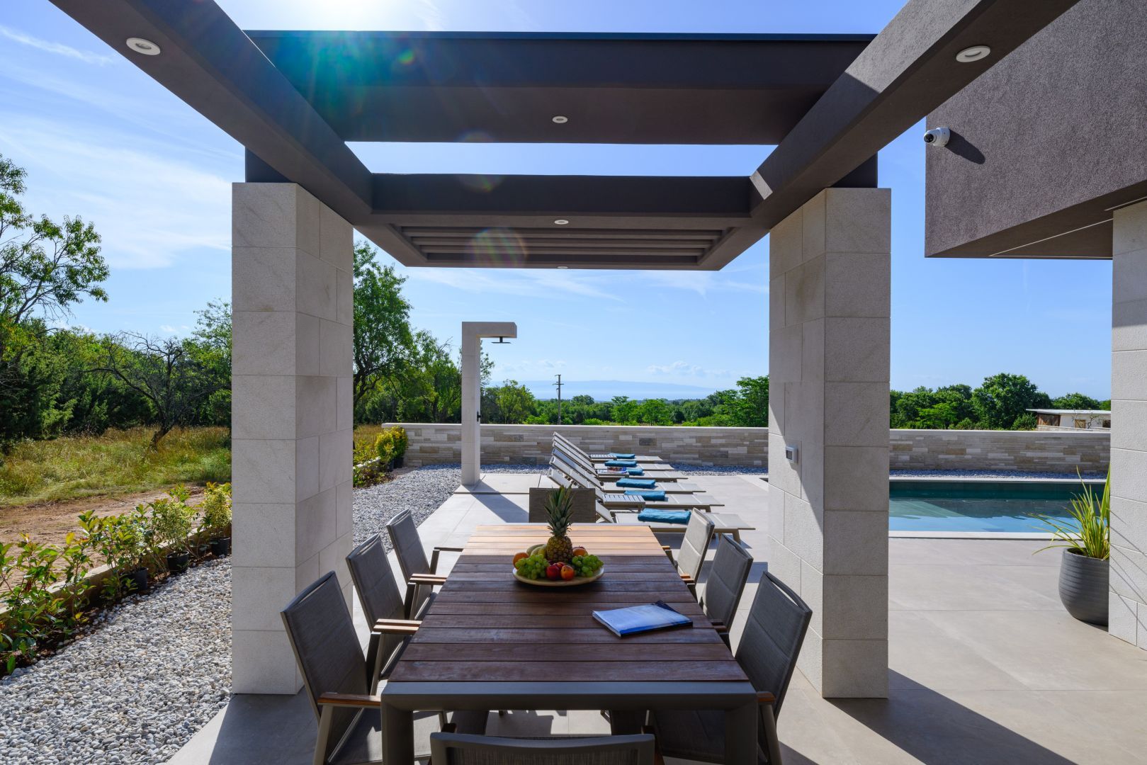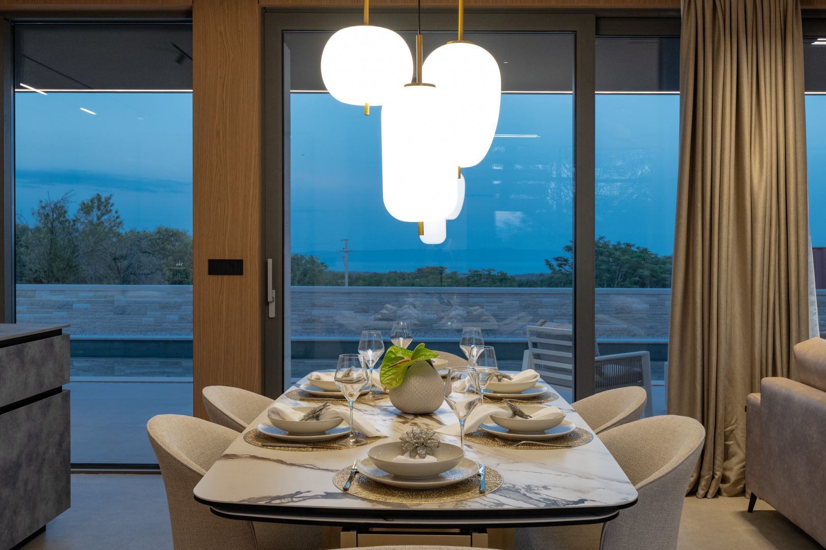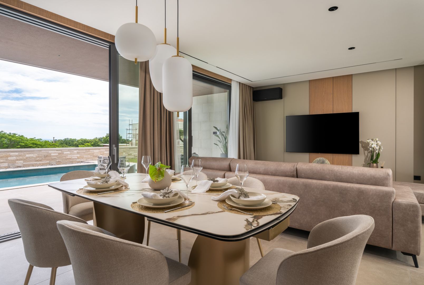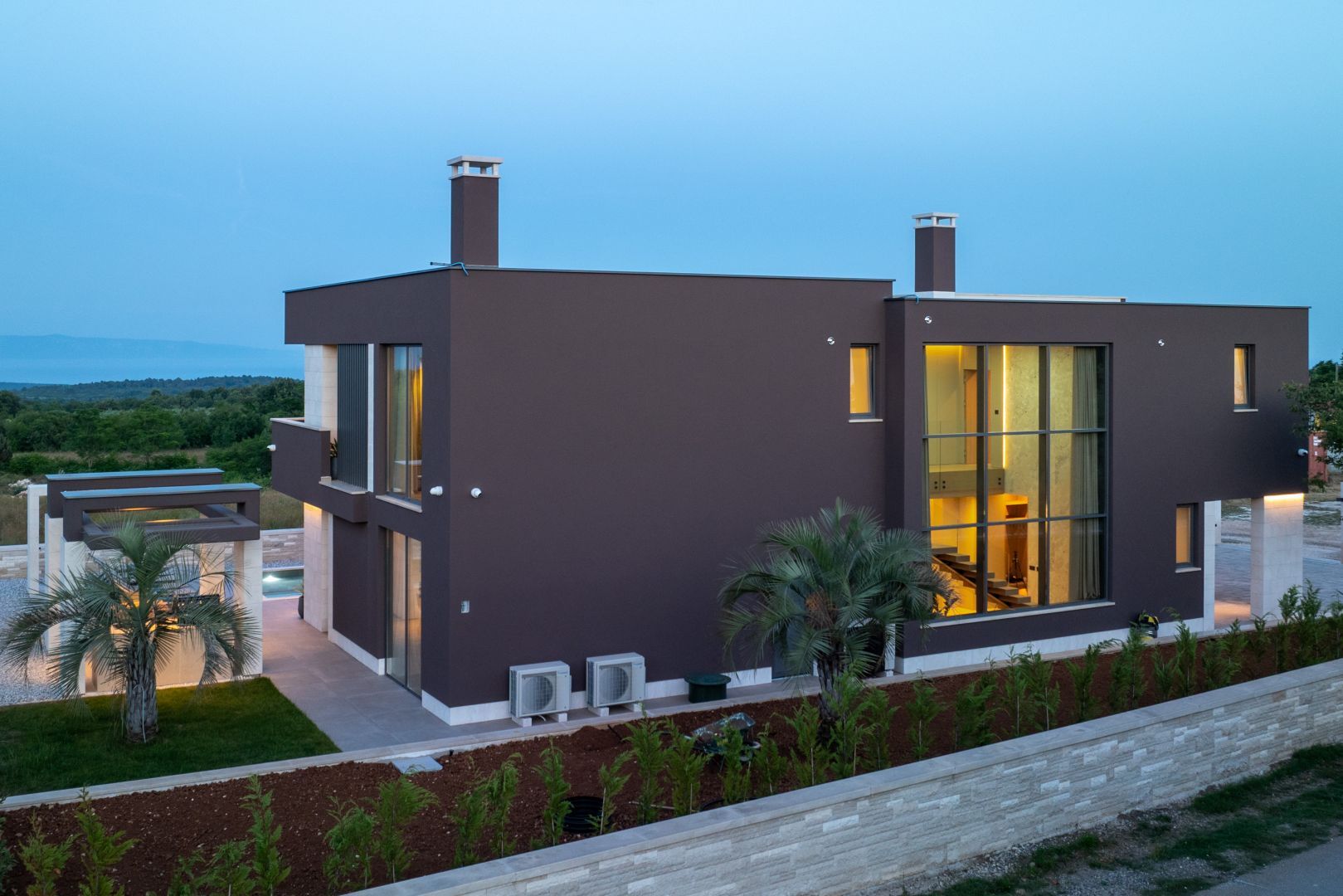 ISTRIEN, KRNICA – Prachtvolle, neu erbaute Villa mit Meerblick Krnica liegt etwa 25 km südöstlich von Pula und ist ein beliebter Sommerurlaubsort mit einem vielfältigen Angebot. Es ist das ideale Reiseziel für alle, die Ruhe, unberührte Natur und eine saubere Küste suchen. Die Unterwasserwelt von Krnica ist perfekt zum Tauchen, und Sportbegeisterte können Tennis, Minigolf, Fußball, Handball, Volleyball, Reiten, einen Adrenalinpark besuchen, Geländefahrzeuge nutzen oder Ausrüstung für Wassersportarten wie Rudern an den wunderschönen Stränden mieten. Auch die Gastronomie kommt nicht zu kurz: Neben der typischen istrischen Küche können Sie die für Krnica typischen Garnelen und andere Meeresfrüchte aus der kristallklaren Adria probieren. Diese beeindruckende Designervilla wird Sie begeistern! Die Villa befindet sich auf einem 890 m² großen Grundstück, hat eine Wohnfläche von 298 m² und erstreckt sich über zwei Etagen – Erdgeschoss und Obergeschoss. Das Erdgeschoss umfasst einen überdachten Eingang, einen geräumigen Flur, ein Gäste-WC, ein offenes Wohnzimmer, eine Küche, ein Esszimmer mit Zugang zu einer überdachten Terrasse und einem Swimmingpool, eine Waschküche, einen Technik-/Abstellraum und eine Taverne. Eine Innentreppe führt in den ersten Stock mit drei geräumigen Schlafzimmern, jeweils mit eigenem Bad, Ankleidezimmer und Zugang zu einer überdachten Terrasse mit atemberaubendem Meerblick! Der weitläufige Garten bietet einen wunderschönen, 60 m² großen, beheizten Swimmingpool und einen überdachten Parkplatz, der Ihre Fahrzeuge vor Wind und Wetter schützt. Sowohl vom Garten als auch vom Erdgeschoss aus genießen Sie einen beeindruckenden Blick auf das Meer und die vorgelagerten Inseln. Der Garten ist mit Palmen und anderen Zierpflanzen geschmückt, von einer schönen Mauer umgeben und bietet absolute Privatsphäre und Ruhe. Die Villa wurde mit hochwertigsten Materialien, beeindruckenden Steindetails und Designermöbeln erbaut und wird im aktuellen Zustand verkauft. Modernes Design der Extraklasse wird selbst höchste Ansprüche erfüllen. Nutzen Sie die Gelegenheit für ein unbeschwertes, luxuriöses Leben.