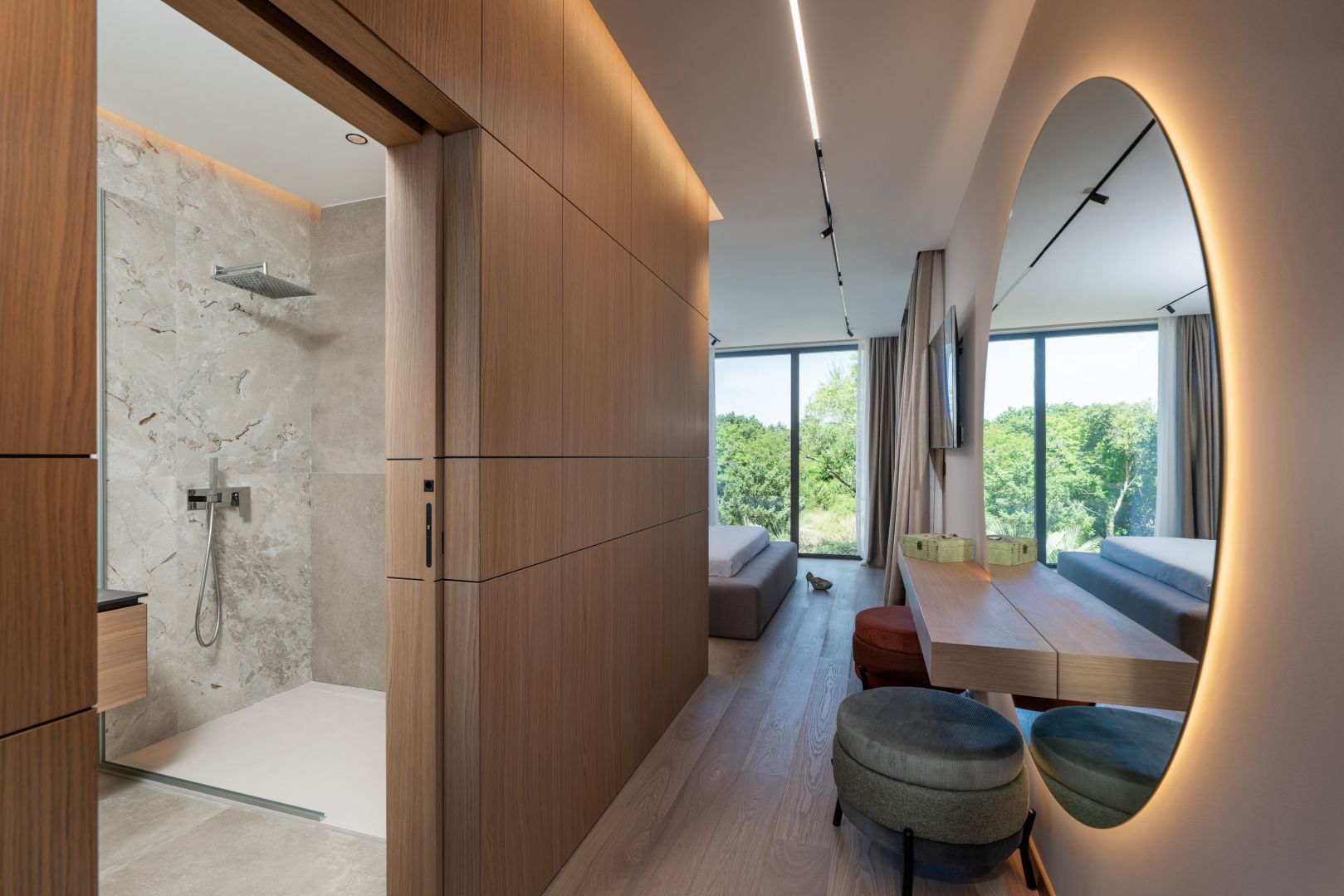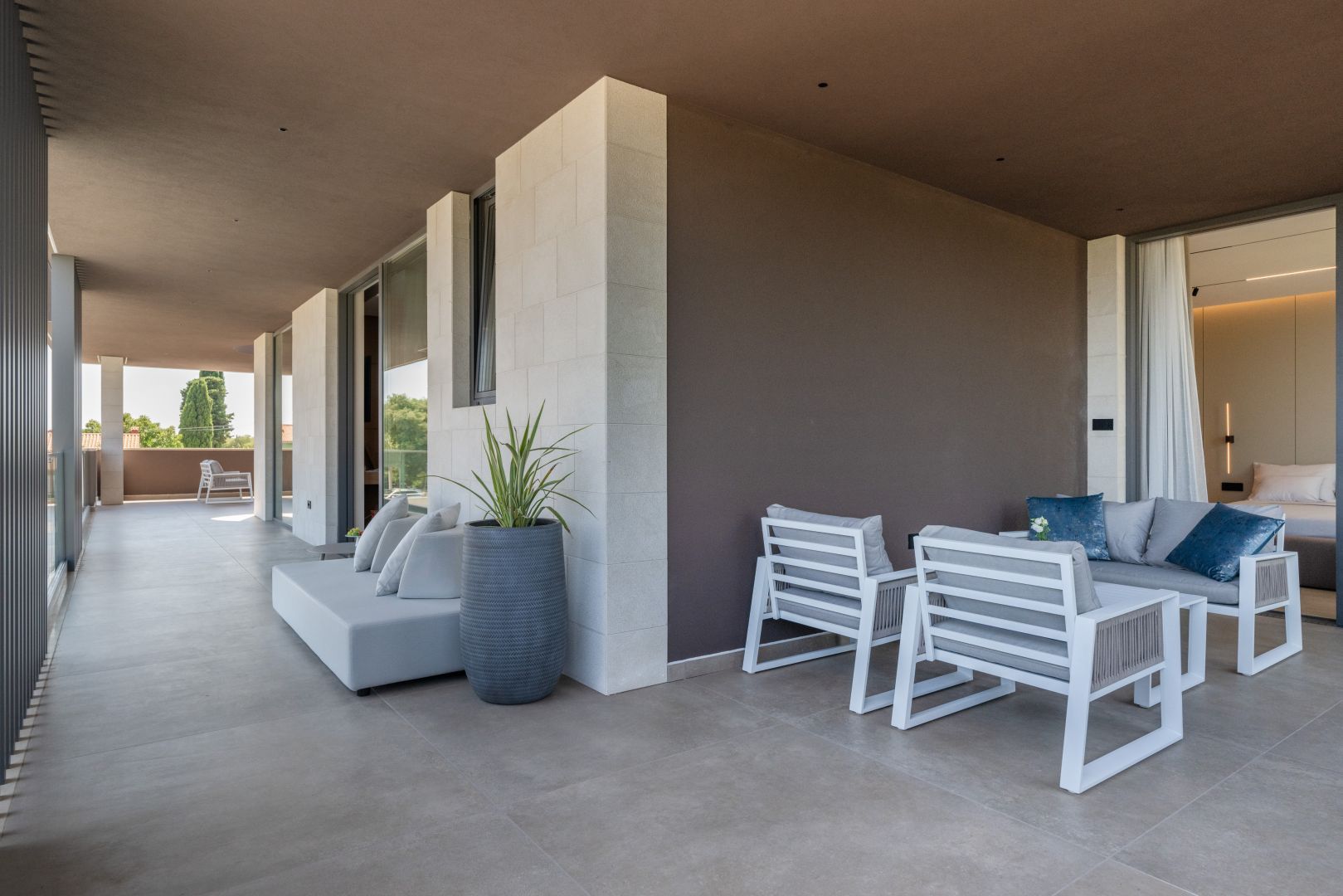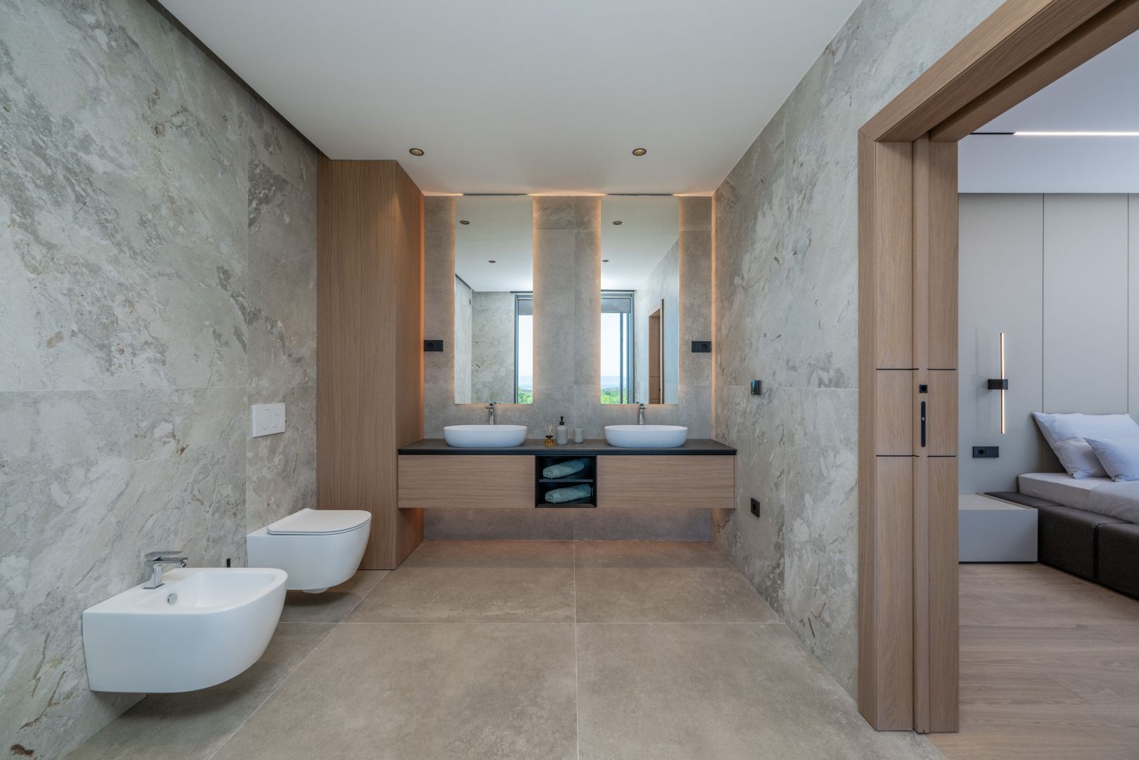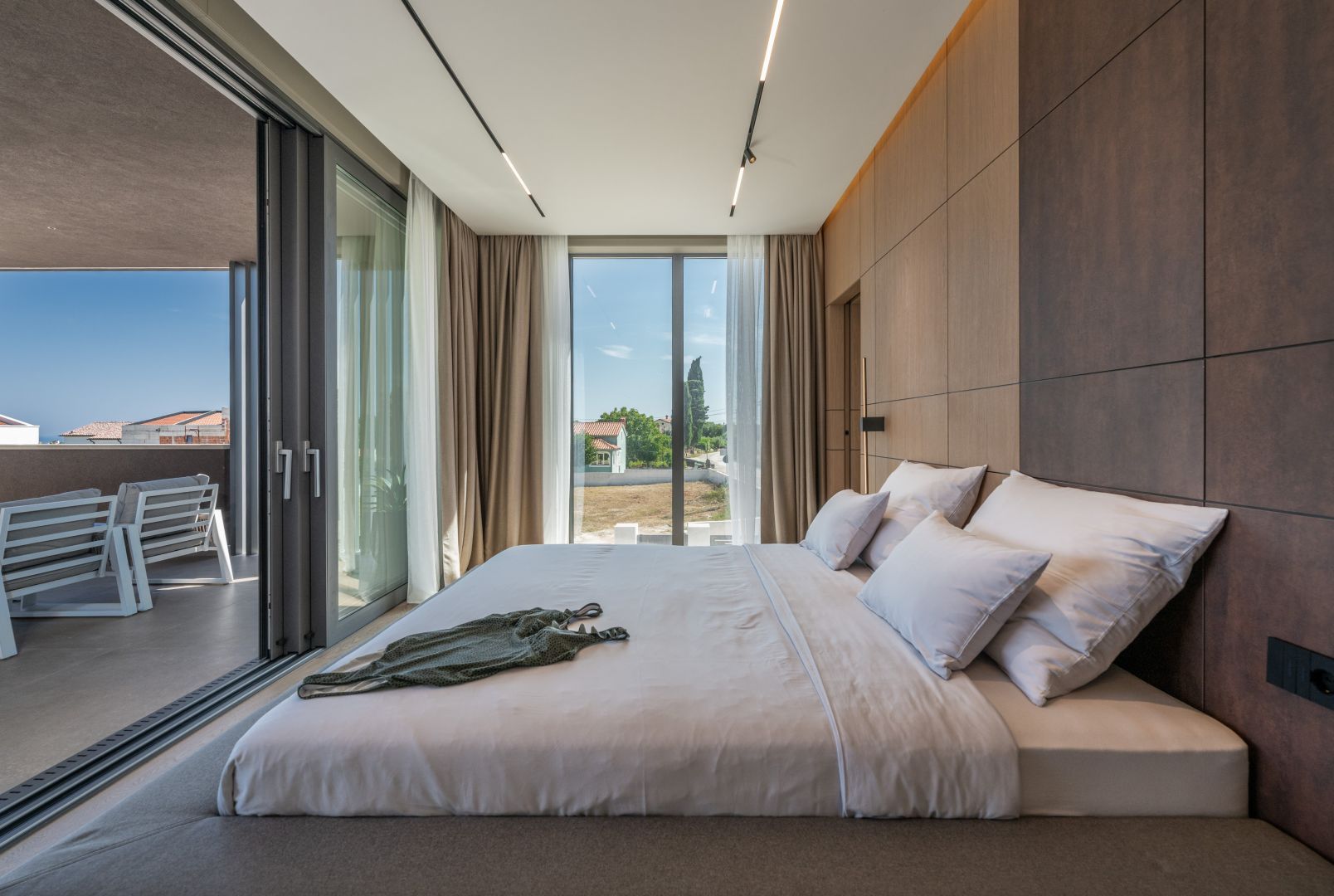 ISTRIEN, KRNICA – Prachtvolle, neu erbaute Villa mit Meerblick Krnica liegt etwa 25 km südöstlich von Pula und ist ein beliebter Sommerurlaubsort mit einem vielfältigen Angebot. Es ist das ideale Reiseziel für alle, die Ruhe, unberührte Natur und eine saubere Küste suchen. Die Unterwasserwelt von Krnica ist perfekt zum Tauchen, und Sportbegeisterte können Tennis, Minigolf, Fußball, Handball, Volleyball, Reiten, einen Adrenalinpark besuchen, Geländefahrzeuge nutzen oder Ausrüstung für Wassersportarten wie Rudern an den wunderschönen Stränden mieten. Auch die Gastronomie kommt nicht zu kurz: Neben der typischen istrischen Küche können Sie die für Krnica typischen Garnelen und andere Meeresfrüchte aus der kristallklaren Adria probieren. Diese beeindruckende Designervilla wird Sie begeistern! Die Villa befindet sich auf einem 890 m² großen Grundstück, hat eine Wohnfläche von 298 m² und erstreckt sich über zwei Etagen – Erdgeschoss und Obergeschoss. Das Erdgeschoss umfasst einen überdachten Eingang, einen geräumigen Flur, ein Gäste-WC, ein offenes Wohnzimmer, eine Küche, ein Esszimmer mit Zugang zu einer überdachten Terrasse und einem Swimmingpool, eine Waschküche, einen Technik-/Abstellraum und eine Taverne. Eine Innentreppe führt in den ersten Stock mit drei geräumigen Schlafzimmern, jeweils mit eigenem Bad, Ankleidezimmer und Zugang zu einer überdachten Terrasse mit atemberaubendem Meerblick! Der weitläufige Garten bietet einen wunderschönen, 60 m² großen, beheizten Swimmingpool und einen überdachten Parkplatz, der Ihre Fahrzeuge vor Wind und Wetter schützt. Sowohl vom Garten als auch vom Erdgeschoss aus genießen Sie einen beeindruckenden Blick auf das Meer und die vorgelagerten Inseln. Der Garten ist mit Palmen und anderen Zierpflanzen geschmückt, von einer schönen Mauer umgeben und bietet absolute Privatsphäre und Ruhe. Die Villa wurde mit hochwertigsten Materialien, beeindruckenden Steindetails und Designermöbeln erbaut und wird im aktuellen Zustand verkauft. Modernes Design der Extraklasse wird selbst höchste Ansprüche erfüllen. Nutzen Sie die Gelegenheit für ein unbeschwertes, luxuriöses Leben.