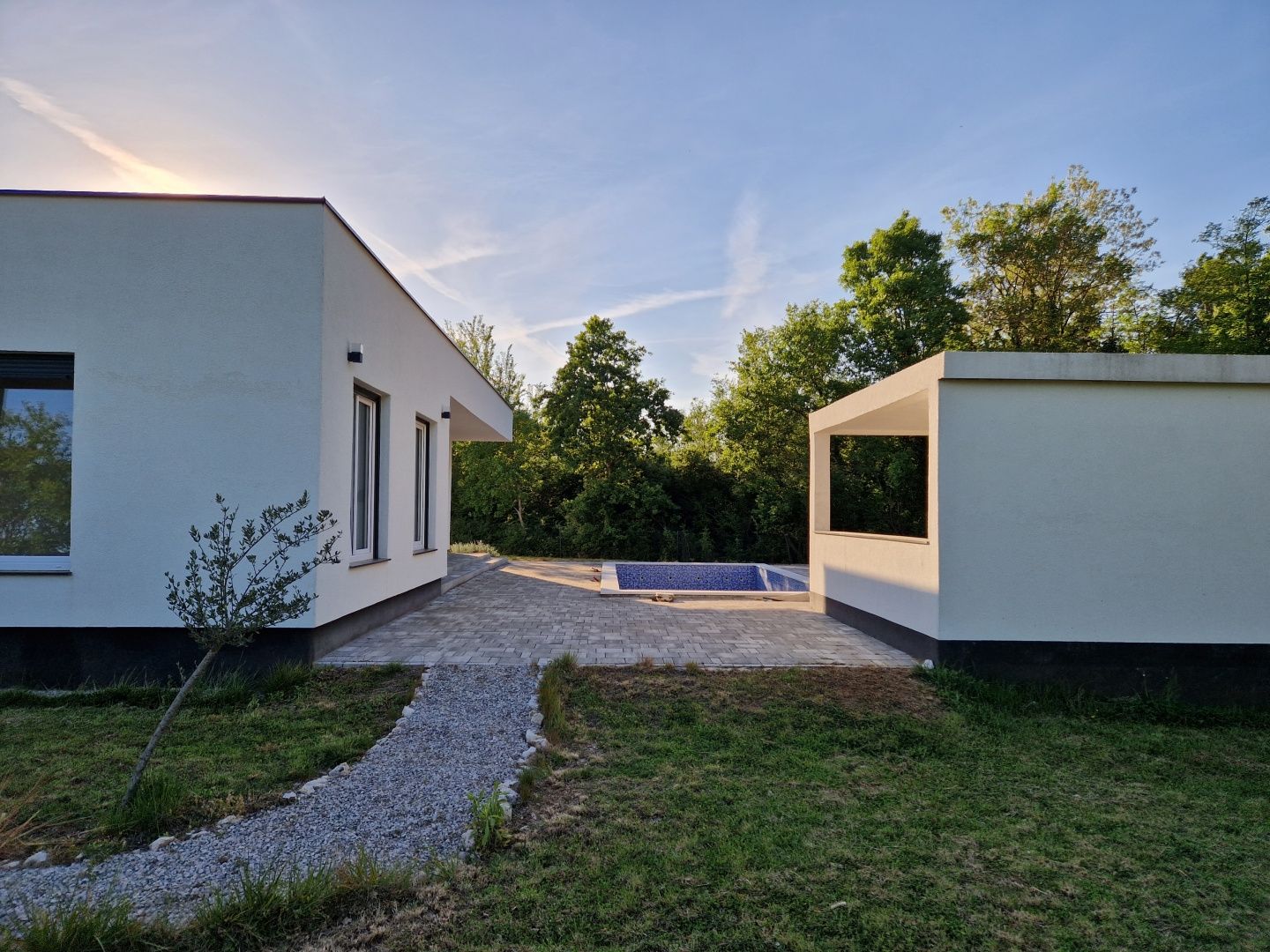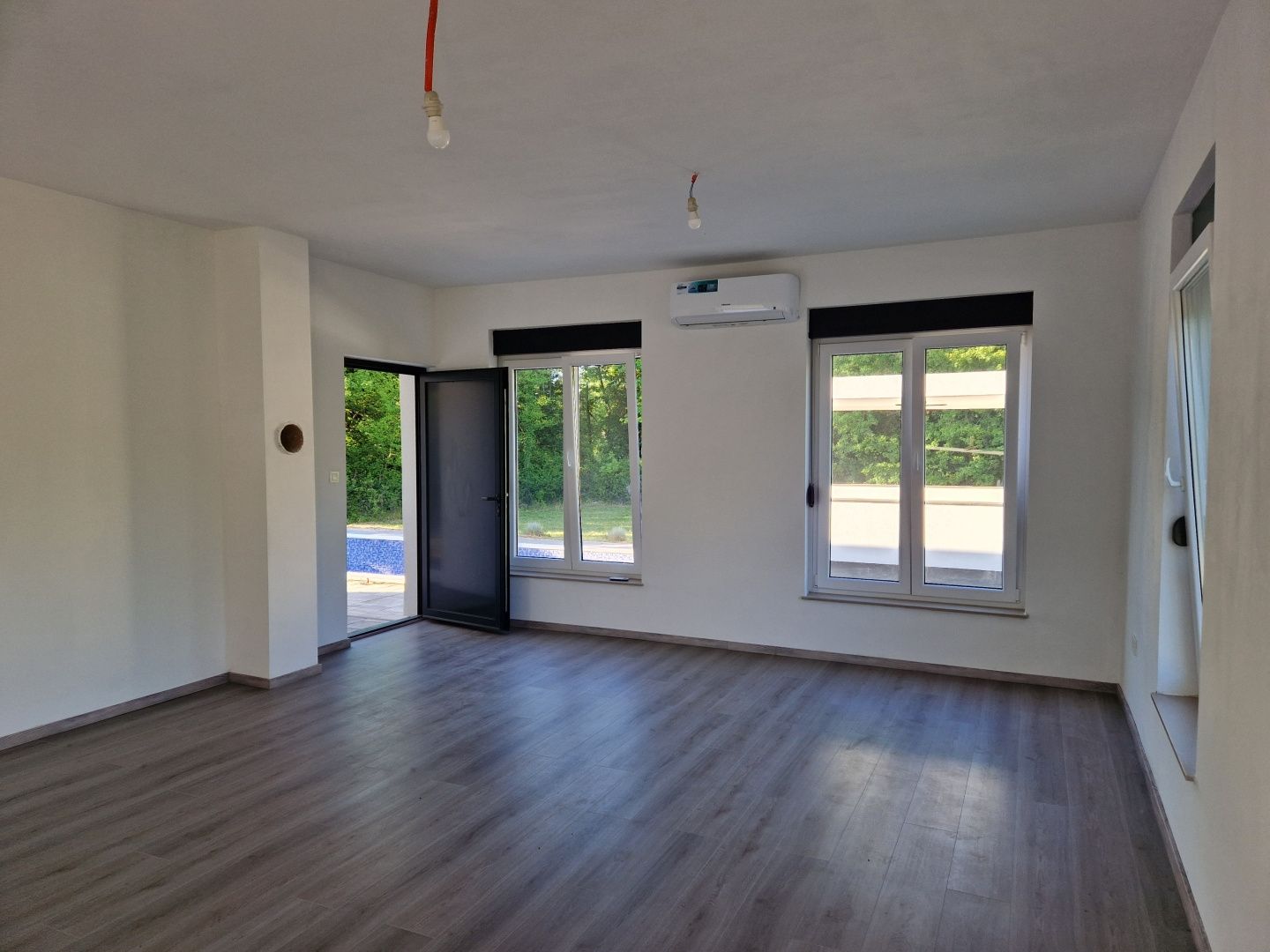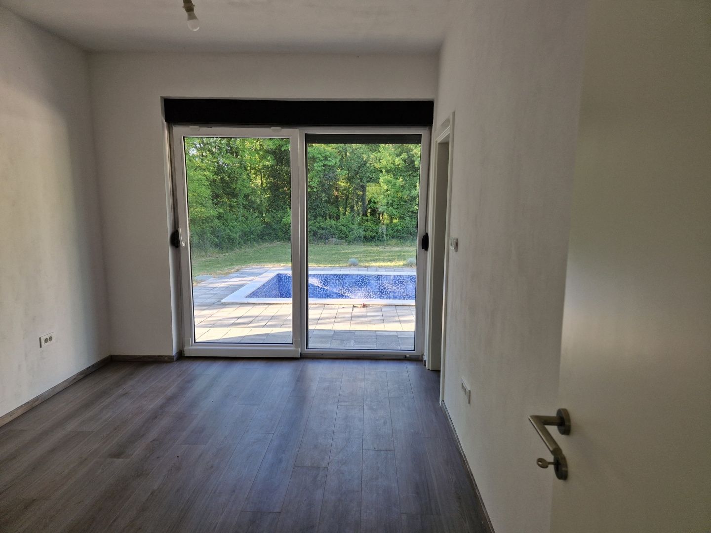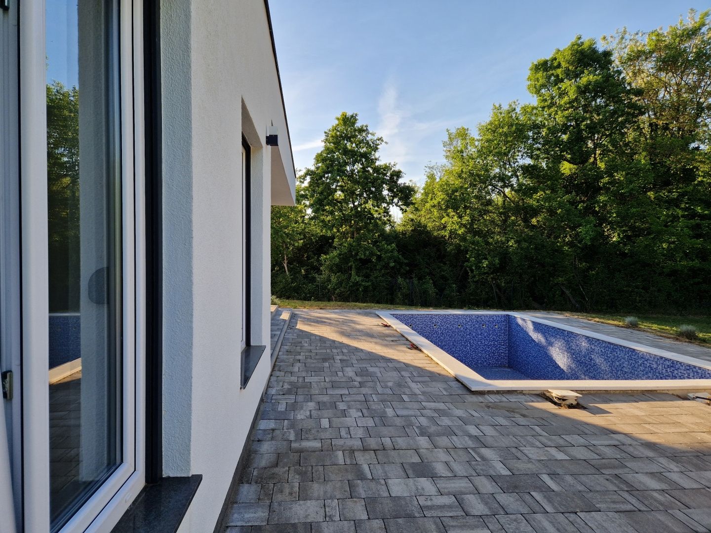 ISTRIEN, KRŠAN – Modernes Bungalow mit Pool im Grünen (111 m²) Dieses wunderschöne, moderne Bungalow liegt im Herzen Istriens. Es ist ideal für alle, die einen ruhigen Ort zum Entspannen und Genießen des mediterranen Klimas inmitten herrlicher Natur suchen. Nicht weit vom Meer und den ersten Stränden entfernt, aber dennoch fernab vom sommerlichen Trubel. Das Bungalow befindet sich auf einem 1453 m² großen Grundstück. Es verfügt über drei Schlafzimmer, jeweils mit eigenem Bad, einen offenen Wohn-/Essbereich mit Küche, einen Flur, ein Gäste-WC, einen Abstell-/Waschraum und eine Terrasse, die in den 111 m² großen Garten führt. Der Poolbereich umfasst ein Wohnzimmer mit Küche und zwei Schlafzimmer. Neben dem Pool (8 x 3,75 m) befinden sich eine 20 m² große Sommerküche, eine Sonnenterrasse und ein Garten. Das Objekt wird unmöbliert verkauft. Zwei sichere Parkplätze befinden sich im großzügigen Hof. Klimaanlage und Fußbodenheizung in den Badezimmern sind vorhanden. Das sonnige Haus ist bezugsfertig und wartet auf einen neuen Eigentümer, der die Innenausstattung nach seinen Wünschen und seinem Geschmack gestalten kann. Fertigstellung der Arbeiten im Oktober 2023.