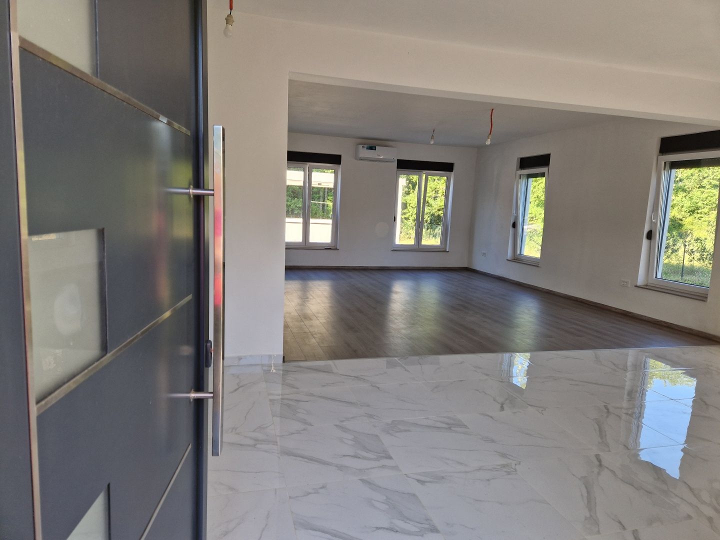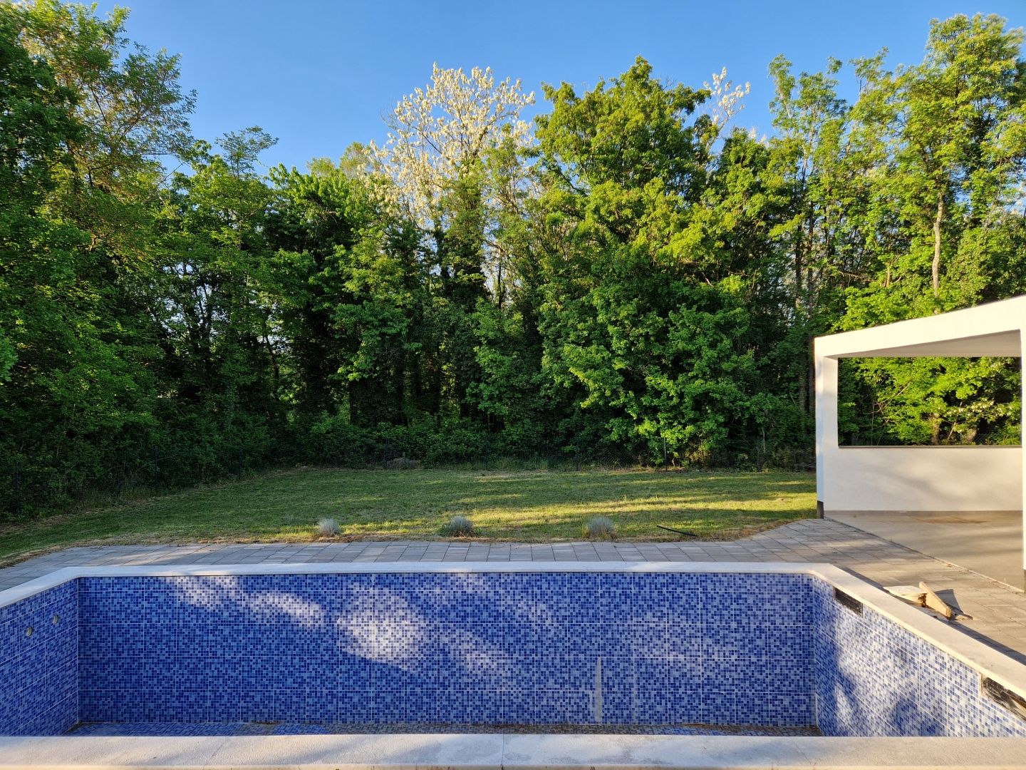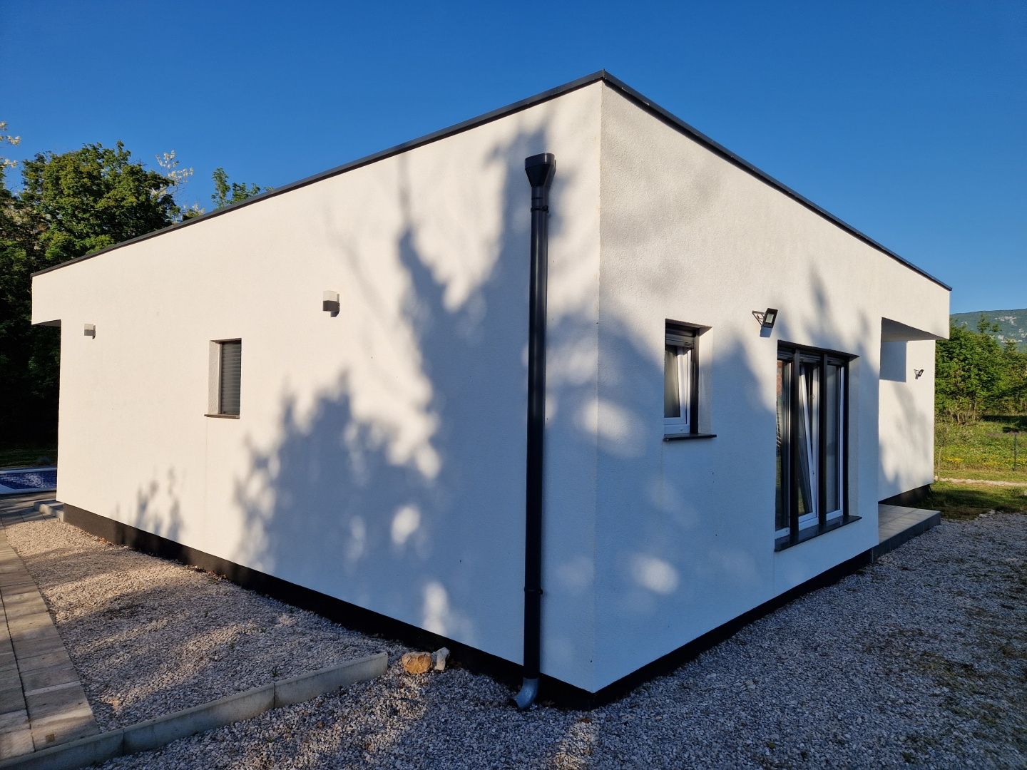 ISTRIEN, KRŠAN – Modernes Bungalow mit Pool im Grünen (111 m²) Dieses wunderschöne, moderne Bungalow liegt im Herzen Istriens. Es ist ideal für alle, die einen ruhigen Ort zum Entspannen und Genießen des mediterranen Klimas inmitten herrlicher Natur suchen. Nicht weit vom Meer und den ersten Stränden entfernt, aber dennoch fernab vom sommerlichen Trubel. Das Bungalow befindet sich auf einem 1453 m² großen Grundstück. Es verfügt über drei Schlafzimmer, jeweils mit eigenem Bad, einen offenen Wohn-/Essbereich mit Küche, einen Flur, ein Gäste-WC, einen Abstell-/Waschraum und eine Terrasse, die in den 111 m² großen Garten führt. Der Poolbereich umfasst ein Wohnzimmer mit Küche und zwei Schlafzimmer. Neben dem Pool (8 x 3,75 m) befinden sich eine 20 m² große Sommerküche, eine Sonnenterrasse und ein Garten. Das Objekt wird unmöbliert verkauft. Zwei sichere Parkplätze befinden sich im großzügigen Hof. Klimaanlage und Fußbodenheizung in den Badezimmern sind vorhanden. Das sonnige Haus ist bezugsfertig und wartet auf einen neuen Eigentümer, der die Innenausstattung nach seinen Wünschen und seinem Geschmack gestalten kann. Fertigstellung der Arbeiten im Oktober 2023.