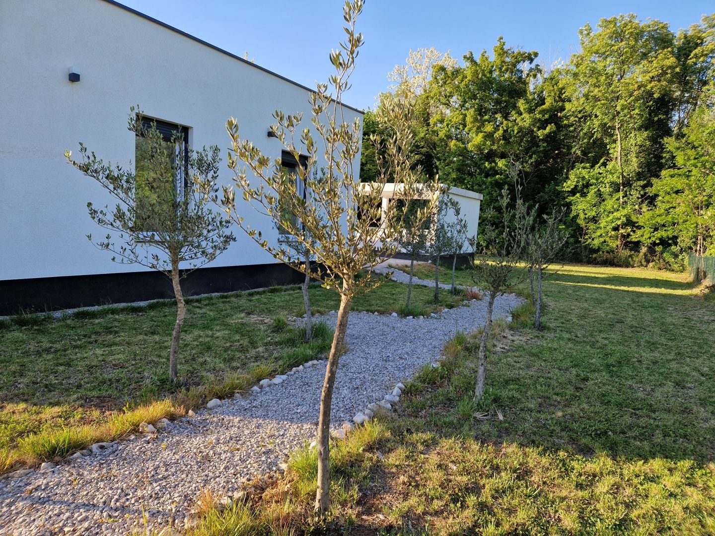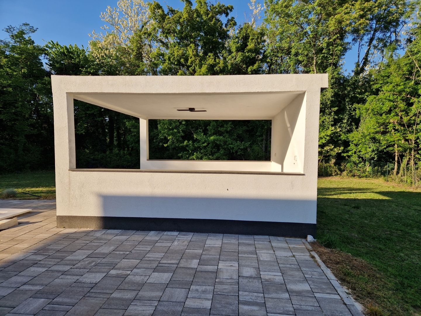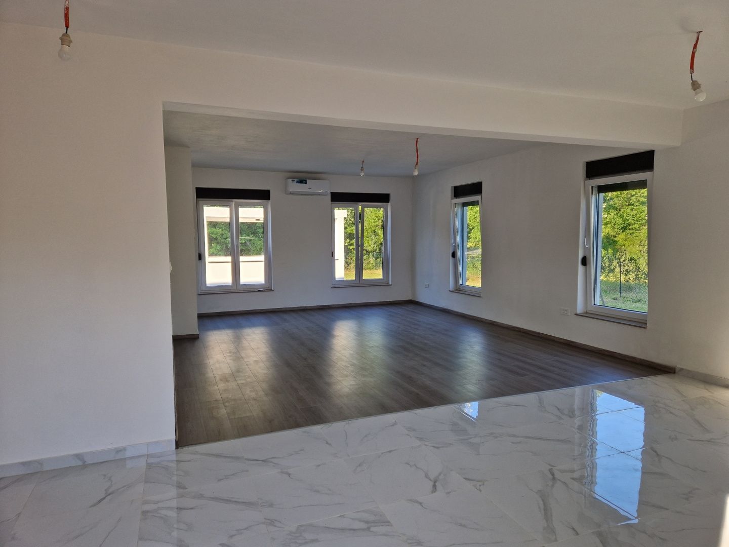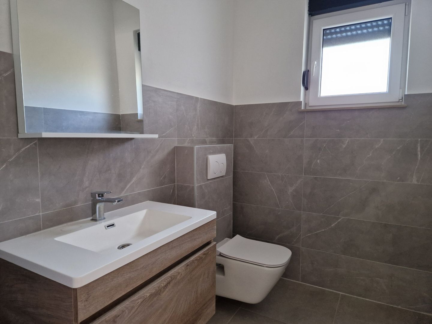 ISTRIEN, KRŠAN – Modernes Bungalow mit Pool im Grünen (111 m²) Dieses wunderschöne, moderne Bungalow liegt im Herzen Istriens. Es ist ideal für alle, die einen ruhigen Ort zum Entspannen und Genießen des mediterranen Klimas inmitten herrlicher Natur suchen. Nicht weit vom Meer und den ersten Stränden entfernt, aber dennoch fernab vom sommerlichen Trubel. Das Bungalow befindet sich auf einem 1453 m² großen Grundstück. Es verfügt über drei Schlafzimmer, jeweils mit eigenem Bad, einen offenen Wohn-/Essbereich mit Küche, einen Flur, ein Gäste-WC, einen Abstell-/Waschraum und eine Terrasse, die in den 111 m² großen Garten führt. Der Poolbereich umfasst ein Wohnzimmer mit Küche und zwei Schlafzimmer. Neben dem Pool (8 x 3,75 m) befinden sich eine 20 m² große Sommerküche, eine Sonnenterrasse und ein Garten. Das Objekt wird unmöbliert verkauft. Zwei sichere Parkplätze befinden sich im großzügigen Hof. Klimaanlage und Fußbodenheizung in den Badezimmern sind vorhanden. Das sonnige Haus ist bezugsfertig und wartet auf einen neuen Eigentümer, der die Innenausstattung nach seinen Wünschen und seinem Geschmack gestalten kann. Fertigstellung der Arbeiten im Oktober 2023.