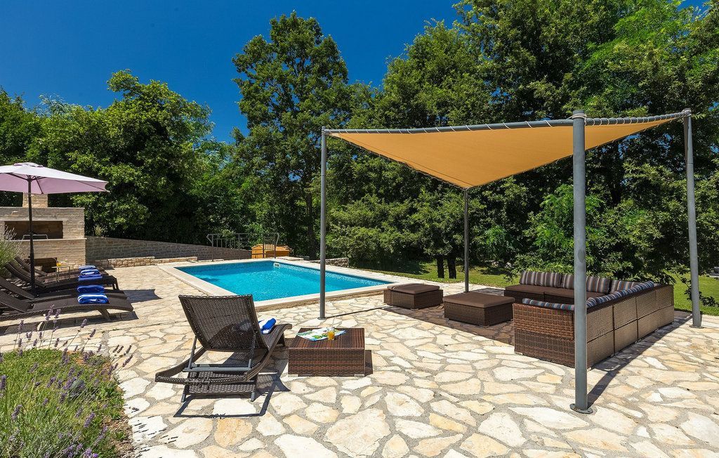 ISTRIEN, LABIN – Haus mit Pool auf großzügigem Grundstück und absoluter Privatsphäre Kršan ist eine Gemeinde im grünen Osten Istriens. Sie liegt südwestlich des Naturparks Učka und besteht aus mehreren Siedlungen. Die Region blickt auf ein reiches kulturelles und historisches Erbe zurück, das stellenweise bis ins 11. Jahrhundert reicht. Dazu gehören die Burg Kršan, wo die istrische Wasserscheide gefunden wurde, die Plominer Kirche des Heiligen Georg des Alten mit der ältesten bekannten glagolitischen Inschrift – der Plominer Inschrift –, die westlichen Ausläufer der Učka und die Burg Kožljak, die romanische Kirche des Heiligen Kirin und ein Fresko aus dem 15. Jahrhundert mit Darstellungen des Kultes des berühmten Malers Albert, die Stadt Čepić und der gleichnamige See, der derzeit trockengelegt und in Ackerland umgewandelt wird, sowie die jüngste Siedlung Istriens – Potpićna. In einem malerischen Dorf an der Ostküste Istriens gelegen, bietet dieses elegante Haus mit 183 m² Wohnfläche den perfekten Rückzugsort vom hektischen Alltag. Das stilvoll eingerichtete Haus befindet sich auf einem großzügigen Privatgrundstück und garantiert Ihnen Ruhe und absolute Privatsphäre. Das Interieur der Villa zeichnet sich durch eine harmonische Kombination aus modernem Design und hochwertigen Möbeln aus. Sorgfältig ausgewählte Details schaffen eine angenehme, warme Atmosphäre. Der offene Wohnbereich ist mit einer modern ausgestatteten Küche und einem Esszimmer verbunden und bietet so den idealen Raum für gesellige Stunden. Der Schlafbereich umfasst vier komfortable Schlafzimmer mit jeweils eigenem Bad, sodass jedes Familienmitglied maximale Privatsphäre genießt. Zusätzlich verfügt das Haus über ein Gäste-WC. Fünf Klimaanlagen sorgen in den Sommermonaten für angenehme Kühle. Für maximalen Badespaß steht Ihnen ein 28 m² großer Swimmingpool mit Liegewiese zur Verfügung. Für kulinarische Genüsse sorgen ein Außengrill und eine überdachte Terrasse mit Essbereich. Das Haus befindet sich in einer äußerst verkehrsgünstigen Lage an zahlreichen ruhigen Straßen, ideal für die Erkundung des istrischen Hinterlandes. Der nächste Strand ist nur 7 Kilometer entfernt. Ganz in der Nähe liegt Rabac, einst ein Fischerdorf, heute ein beliebter Touristenort mit kristallklarem Meer und wunderschönen Kiesstränden. Das 4-Sterne-Haus wird seit Jahren erfolgreich als Ferienunterkunft vermietet. Rufen Sie uns noch heute an und vereinbaren Sie einen Besichtigungstermin für dieses exklusive Ferienhaus! Liebe