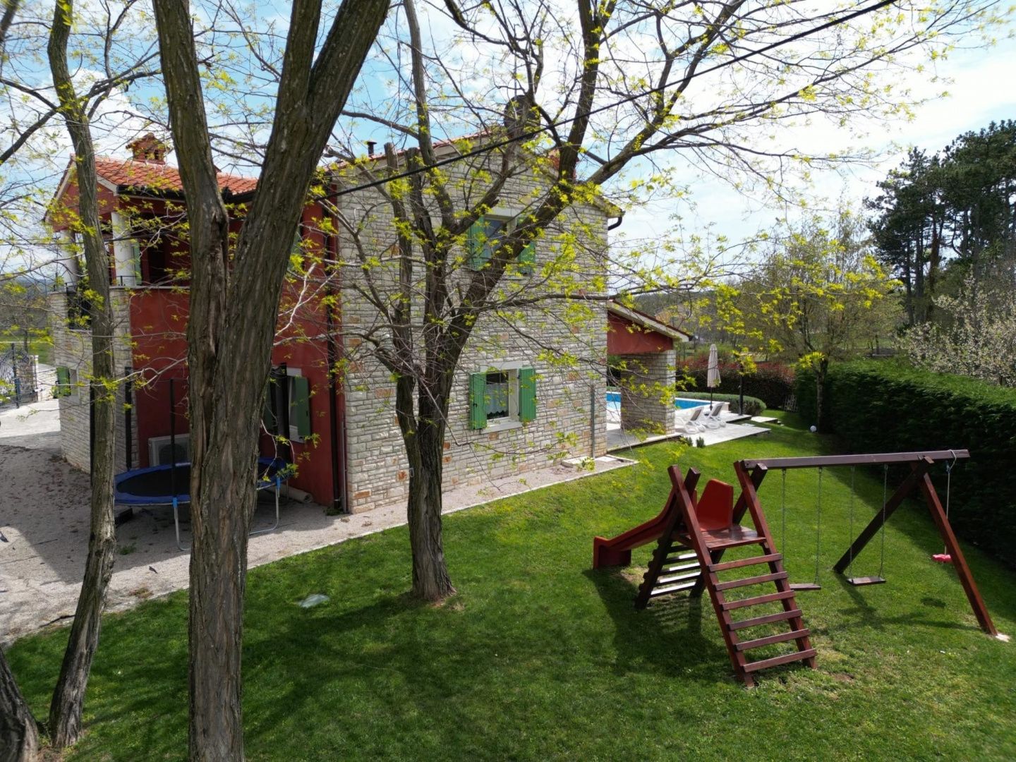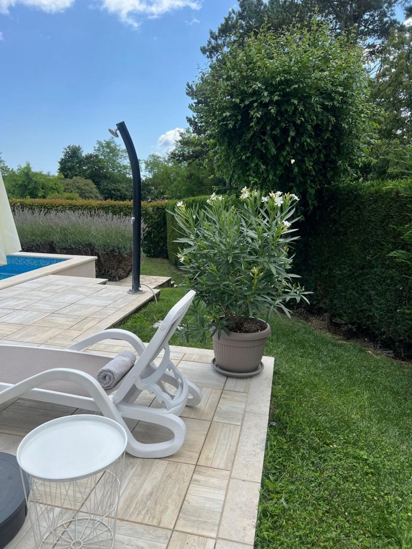 Istrien, Labin – Haus mit Pool in ruhiger Lage In einem idyllischen und friedlichen Weiler, nur 7 km vom Zentrum Labins und 10 km vom Meer entfernt, liegt diese wunderschöne, freistehende Villa. Sie bietet absolute Privatsphäre und ermöglicht es Ihnen, die Natur in vollen Zügen zu genießen. Die Villa erstreckt sich über zwei Etagen und bietet insgesamt 180 m² Wohnfläche. Im Erdgeschoss befinden sich ein geräumiges und helles Wohnzimmer mit Essbereich (60 m²) und Zugang zur Terrasse und zum Pool, eine voll ausgestattete Küche sowie ein Schlafzimmer mit Bad und ein separates WC. Das Erdgeschoss und das Schlafzimmer mit Bad sind barrierefrei zugänglich. Im Obergeschoss befinden sich drei komfortable Schlafzimmer, jeweils mit eigenem Bad – zwei Zimmer mit Doppelbetten und eines mit zwei Einzelbetten. Das Anwesen ist mit hochwertigen italienischen Möbeln ausgestattet, die die Eleganz und den Komfort der Räume unterstreichen. Für eine besondere Atmosphäre und behagliche Wärme sorgt ein Kaminofen. Die Villa befindet sich auf einem 1000 m² großen, parkähnlich angelegten und umzäunten Grundstück – ideal zum Entspannen und Erholen. Im Garten erwartet Sie ein attraktiver Swimmingpool (8 x 4 m) mit Innentreppe, eine Außendusche, eine geräumige Terrasse mit Gartenmöbeln und Grill sowie ein Kinderspielplatz mit Rutsche und Schaukel. Für zusätzlichen Spaß sorgen ein Trampolin, eine Tischtennisplatte und ein Tischfußballtisch. Eine überdachte Terrasse (32 m²) und ein Balkon (12 m²) laden zum Verweilen und Genießen der ruhigen Umgebung ein. Im Garten stehen zwei PKW-Stellplätze zur Verfügung, vor dem Haus gibt es weitere Parkmöglichkeiten für mehrere Fahrzeuge. ZUSÄTZLICHE INFORMATIONEN * Die Villa wird komplett möbliert verkauft. * Umzäuntes Grundstück * Gepflegte Eigentumsverhältnisse * Ordnungsgemäße Dokumentation Diese Immobilie bietet dank ihrer attraktiven Lage, der Privatsphäre und der vielfältigen Ausstattung ideale Voraussetzungen für ein komfortables Familienleben, einen luxuriösen Urlaub oder als Kapitalanlage zur touristischen Vermietung. Bei weiteren Fragen, für weitere Informationen oder zur Vereinbarung eines Besichtigungstermins kontaktieren Sie uns bitte jederzeit.
