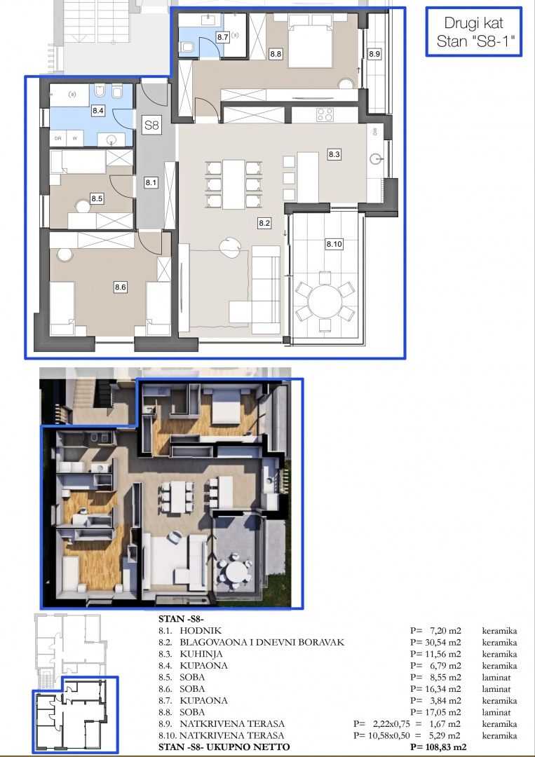 ISTRIEN, LABIN – Komfortable Wohnung in einem modernen Neubau An der Südostküste Istriens, wo grüne Hügel auf das Meer treffen und Natur und Kulturerbe sich vereinen, liegen zwei Städte ähnlicher Größe mit unterschiedlichem, aber sich ergänzendem Charakter: Labin und Rabac. Die malerische Stadt Labin erhebt sich auf einem 320 Meter hohen Hügel, nur vier Kilometer von den weißen Kieselstränden Rabacs entfernt. Geprägt von einer reichen Geschichte und dem Bergbau, der diese Region einst formte, ist Labin, das kurzzeitig eine unabhängige Republik war, heute eine faszinierende Stadt der Gegensätze: Alt und Neu, Geschichte und Gegenwart, Tourismus und Kunst. Nahe dem Zentrum von Labin entsteht ein modernes Gebäude mit Erdgeschoss und zwei Obergeschossen, das insgesamt acht Wohneinheiten umfasst. Für den Bau wurden langlebige und zuverlässige Materialien verwendet, die langfristige Zufriedenheit und Sicherheit garantieren. Die Raumaufteilung jeder Etage ist bis ins Detail durchdacht und bietet ein hochwertiges Wohnkonzept. Zum Verkauf steht eine Wohnung im zweiten Obergeschoss dieses Gebäudes. Die Wohnung besteht aus einem offenen Wohnbereich mit Wohnzimmer, Esszimmer und Küche, drei Schlafzimmern, zwei Badezimmern, einem Flur und zwei überdachten Terrassen. Diese Wohnung in einem Neubau in fußläufiger Entfernung zu Einkaufsmöglichkeiten sowie kulturellen, Bildungs- und Freizeiteinrichtungen bietet ideale Voraussetzungen für ein angenehmes Familienleben und eignet sich auch hervorragend als Kapitalanlage zur touristischen Vermietung. Parkplätze werden separat zum entsprechenden Berechnungsschlüssel erworben. Der angegebene Preis bezieht sich auf den Rohbauzustand ohne Möbel, sodass Sie die Wohnung nach Ihren Wünschen und Vorlieben einrichten können. Verkäufer ist eine juristische Person, und die Mehrwertsteuer ist im angegebenen Preis enthalten.