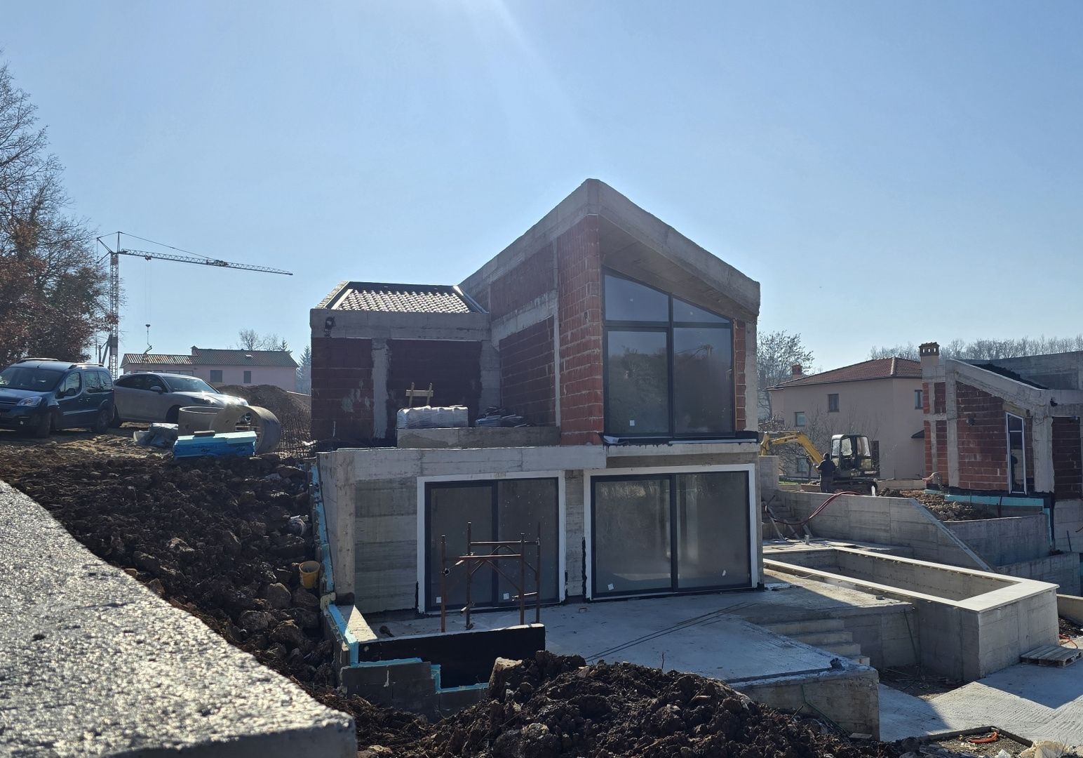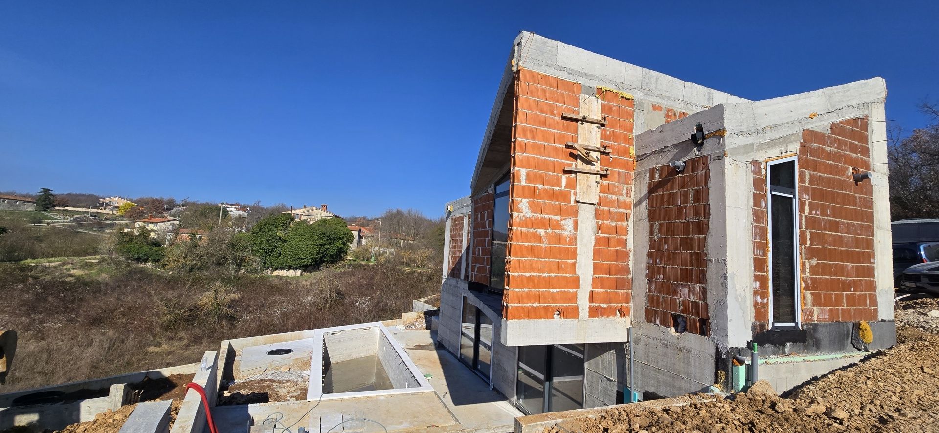 ISTRIEN, LABIN – Luxuriöser Neubau mit Pool Labin und Pićan – Geschichte, Natur und Ruhe vereint Labin zählt zu den charmantesten Städten Istriens und liegt auf einem Hügel mit herrlichem Blick auf das Meer und die Kvarner Bucht. Bekannt für seine reiche Geschichte, sein vielfältiges Kulturangebot und die Nähe zum Touristenzentrum Rabac, bietet Labin die perfekte Balance zwischen urbanem Komfort und mediterranem Lebensstil. Gleich in der Nähe befindet sich Pićan, ein malerisches istrisches Städtchen, das Ruhe, Authentizität und unberührte Natur ausstrahlt. Diese Kombination aus Tradition, Grün und Privatsphäre macht diesen Ort äußerst begehrenswert zum Wohnen und Urlauben. Unweit des historischen Labin, in der ruhigen Umgebung von Pićan, steht ein luxuriöser Neubau mit Pool zum Verkauf. Der Bezug ist für Sommer 2026 geplant. Die Wohnfläche inklusive Terrassen beträgt 198,41 m². Das Haus wurde sorgfältig geplant, um maximalen Komfort und Funktionalität zu bieten. Das Untergeschoss ist als funktionale und großzügige Einheit gestaltet und umfasst einen Flur, ein Badezimmer, einen Hauswirtschaftsraum, einen Technikraum und ein Treppenhaus. Im Zentrum befindet sich ein geräumiges Wohnzimmer, das offen mit Küche und Essbereich verbunden ist und so ein luftiges und behagliches Ambiente schafft. Das Schlafzimmer liegt ebenfalls auf dieser Etage. Der Wohnbereich bietet direkten Zugang zu zwei überdachten Terrassen, einer offenen Terrasse und einer Sonnenterrasse. Dadurch wird ein optimaler Lichteinfall erzielt und eine harmonische Verbindung zwischen Innen- und Außenbereich geschaffen. Das Erdgeschoss ist dem ruhigeren Schlafbereich des Hauses gewidmet und besteht aus einem Flur, zwei Badezimmern und zwei Schlafzimmern. Zwei Loggien unterstreichen das mediterrane Flair und laden zum Entspannen ein. Ein überdachter Eingang sorgt für Komfort und Sicherheit beim Betreten des Hauses. Die Raumaufteilung gewährleistet absolute Privatsphäre und optimale Funktionalität für den Alltag. Technische Merkmale und Ausstattung: • Fußbodenheizung im gesamten Gebäude • Kühlung durch Klimaanlage – Bosch-System • Keramikfliesen in allen Gemeinschaftsbereichen • Parkett in den Zimmern • Vorinstallation für Poolheizung • Moderne und hochwertige Bauweise nach neuesten Standards Das Anwesen wurde mit Fokus auf Energieeffizienz, Langlebigkeit und ganzjährigen Wohnkomfort konzipiert. Das Haus befindet sich auf einem großzügigen, 821 m² großen Grundstück, das Privatsphäre und Ruhe garantiert und Folgendes bietet: • Swimmingpool mit Sonnenterrasse • überdachte und offene Terrassen • gepflegte Grünflächen • Bereiche zum Entspannen und geselligen Beisammensein Der Außenbereich ist ideal, um die warmen Tage Istriens zu genießen – ob privat oder als Ferienimmobilie. Warum ist dies die richtige Gelegenheit? Dieses luxuriöse Neubaugebäude vereint moderne Architektur, hochwertige Ausstattung und eine authentische istrische Lage. Die Nähe zu Labin, die Ruhe von Pićan, die hochwertige Bauweise und der geplante Einzug im Jahr 2026 machen diese Immobilie zu einer hervorragenden Investition – ob für luxuriöses Familienleben, als Ferienimmobilie oder zur touristischen Vermietung mit hohem Renditepotenzial. Wenn Sie Eleganz, Privatsphäre und langfristigen Wert im Herzen Istriens suchen, ist dies die Immobilie, die all Ihre Wünsche erfüllt.