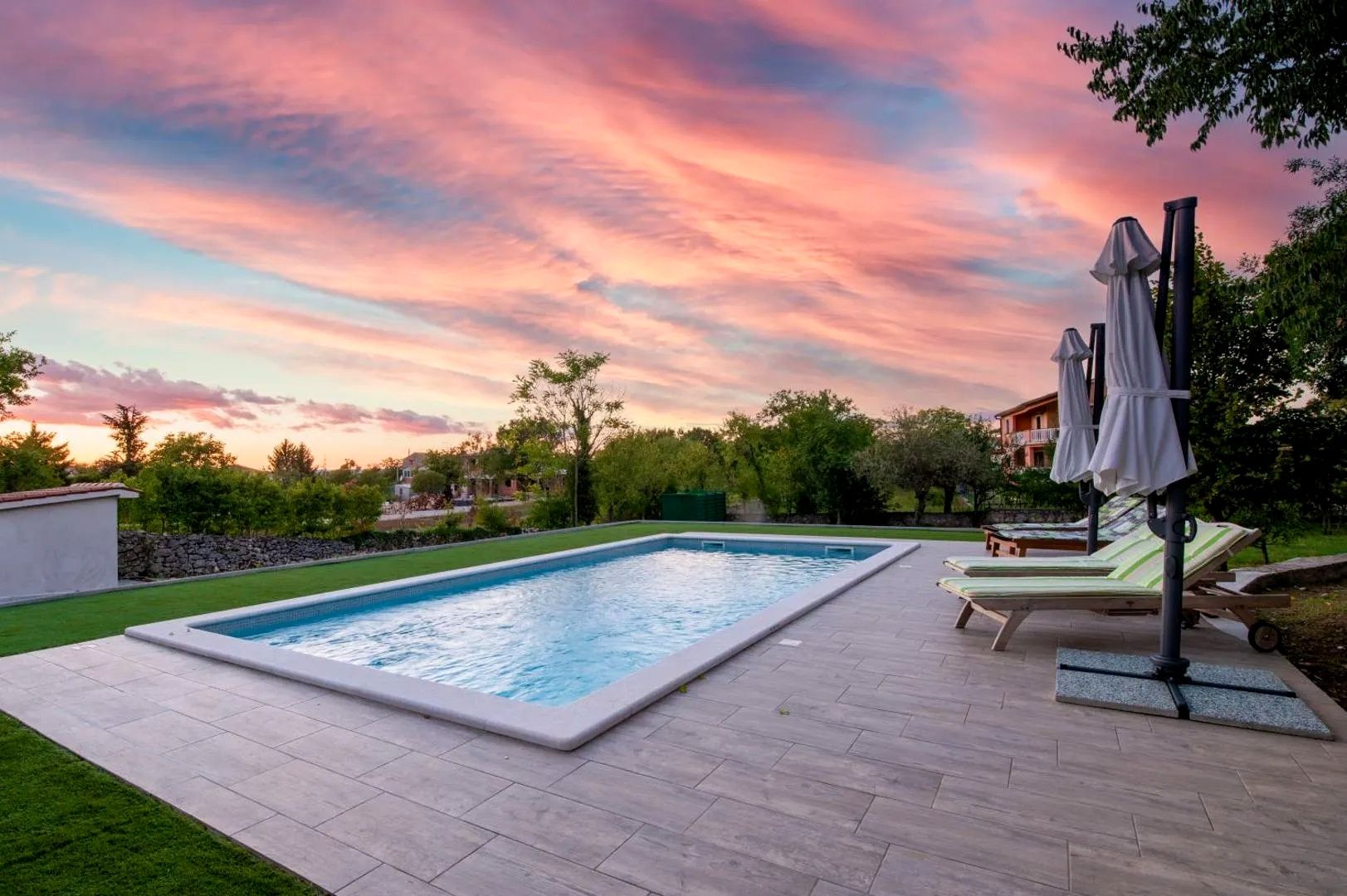 ISTRIEN, LABIN – Steinhaus mit Pool An der Südostküste Istriens, wo grüne Hügel auf das Meer treffen und Natur und Kulturerbe ineinanderfließen, liegen zwei Städte ähnlicher Größe mit unterschiedlichem, aber sich ergänzendem Charakter: Labin und Rabac. Das malerische Städtchen Labin erhebt sich auf einem 320 Meter hohen Hügel, nur vier Kilometer von den weißen Kieselstränden Rabacs entfernt. Geprägt von einer reichen Geschichte und dem Bergbau, der diese Region einst formierte, ist Labin, das kurzzeitig eine unabhängige Republik war, heute eine faszinierende Stadt der Gegensätze: Alt und Neu, Geschichte und Gegenwart, Tourismus und Kunst. Unweit von Labin steht ein Steinhaus mit Pool zum Verkauf. Die Lage bietet ein authentisches Erlebnis einer kleinen istrischen Stadt, Ruhe und Erholung vom Alltagstrubel, und gleichzeitig die Nähe zum Meer und den Annehmlichkeiten von Labin. Neben der günstigen Lage zeichnet sich die Immobilie auch durch die hochwertige Ausstattung aus, die langfristige Zufriedenheit und hohe Wohnqualität garantiert. Das alte Steinhaus erstrahlt in neuem Glanz und seine architektonische Vergangenheit wirkt nun zeitlos, indem es Tradition und Moderne harmonisch vereint. Das dreistöckige Hausinnere ist perfekt an einen modernen Lebensstil angepasst und strahlt eine Atmosphäre aus, die von der Wärme des Holzes und der Frische des Steins geprägt ist, kombiniert mit Möbeln im Landhausstil. Im Untergeschoss befindet sich ein Gemeinschaftsbereich mit finnischer Sauna und Zugang zu einer überdachten Veranda mit Sommerküche und offenem Kamin, einem Weinkeller, einem Gäste-WC und einem Abstellraum. Das Erdgeschoss umfasst ein Wohnzimmer mit Zugang zu einer überdachten Veranda, eine Küche mit Essbereich und ein Badezimmer. Im ersten Obergeschoss befinden sich drei Schlafzimmer. Der großzügige Garten ist gärtnerisch gestaltet und umzäunt und bietet einen 39 m² großen Swimmingpool mit Sonnenterrasse sowie einen 34 m² großen Nebenraum, der als Fitnessraum dient. Die hervorragende Lage und die durchdachte Raumaufteilung im Innen- und Außenbereich dieser Immobilie bieten ideale Voraussetzungen für ein komfortables Familienleben oder eine lohnende Investition in die touristische Vermietung.