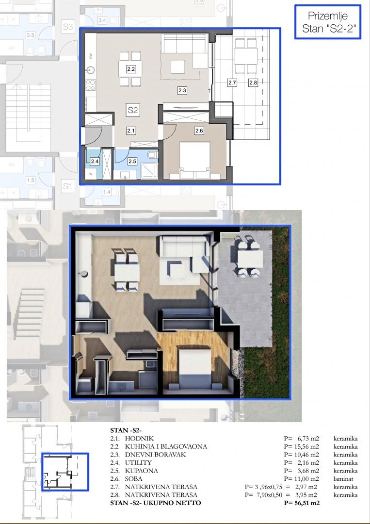 ISTRIEN, LABIN – Erdgeschosswohnung in einem Neubau An der Südostküste Istriens, wo grüne Hügel auf das Meer treffen und Natur und Kulturerbe sich vereinen, liegen zwei Städte ähnlicher Größe mit unterschiedlichem, aber sich ergänzendem Charakter: Labin und Rabac. Die malerische Stadt Labin erhebt sich auf einem 320 Meter hohen Hügel, nur vier Kilometer von den weißen Kieselstränden Rabacs entfernt. Geprägt von einer reichen Geschichte und dem Bergbau, der diese Region einst formte, ist Labin, das kurzzeitig eine unabhängige Republik war, heute eine faszinierende Stadt der Gegensätze: Alt und Neu, Geschichte und Gegenwart, Tourismus und Kunst. Nahe dem Zentrum von Labin entsteht ein modernes Gebäude mit Erdgeschoss und zwei Obergeschossen, das insgesamt acht Wohneinheiten umfasst. Für den Bau wurden langlebige und zuverlässige Materialien verwendet, die langfristige Zufriedenheit und Sicherheit garantieren. Die Raumaufteilung jeder Etage ist bis ins Detail durchdacht und bietet ein hochwertiges Raumkonzept. Zum Verkauf steht eine Erdgeschosswohnung in diesem Gebäude. Die Wohnung besteht aus einem Schlafzimmer, einem Badezimmer, einem Gäste-WC, einem Flur und einem offenen Wohnbereich, der Wohnzimmer, Esszimmer und Küche verbindet und Zugang zu einer überdachten Terrasse bietet. Der Kauf eines Gartens ist gegen Aufpreis möglich. Parkplätze werden separat nach dem entsprechenden Berechnungsschlüssel erworben. Diese Wohnung in einem Neubau in fußläufiger Entfernung zu Einkaufsmöglichkeiten, kulturellen, Bildungs- und Freizeiteinrichtungen bietet ideale Voraussetzungen für ein angenehmes Familienleben sowie als Kapitalanlage zur touristischen Vermietung. Der angegebene Preis bezieht sich auf den Rohbauzustand ohne Möbel, sodass Sie die Wohnung nach Ihren Wünschen und Vorlieben einrichten können. Der Verkäufer ist eine juristische Person, und die Mehrwertsteuer ist im angegebenen Preis enthalten.
