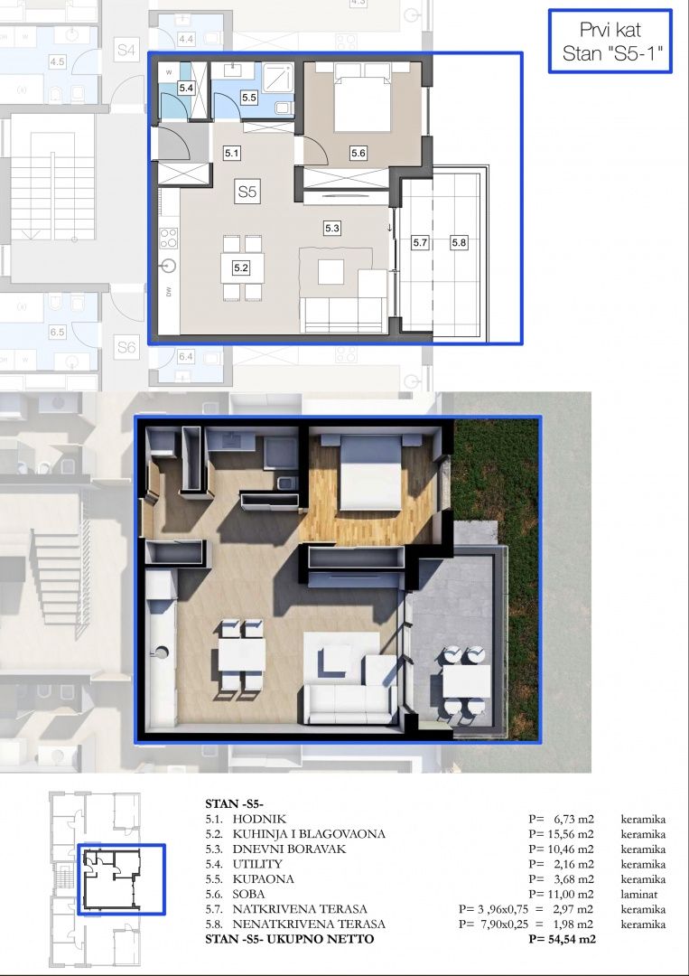 ISTRIEN, LABIN – Wohnung in einem modernen Neubau An der Südostküste Istriens, wo grüne Hügel auf das Meer treffen und Natur und Kulturerbe sich vereinen, liegen zwei Städte ähnlicher Größe mit unterschiedlichem, aber sich ergänzendem Charakter: Labin und Rabac. Die malerische Stadt Labin erhebt sich auf einem 320 Meter hohen Hügel, nur vier Kilometer von den weißen Kieselstränden Rabacs entfernt. Geprägt von einer reichen Geschichte und dem Bergbau, der diese Region einst kennzeichnete, ist Labin, das kurzzeitig eine unabhängige Republik war, heute eine faszinierende Stadt der Gegensätze: Alt und Neu, Geschichte und Gegenwart, Tourismus und Kunst. Nahe dem Zentrum von Labin entsteht ein modernes Gebäude mit Erdgeschoss und zwei Obergeschossen, das insgesamt acht Wohneinheiten umfasst. Für den Bau wurden langlebige und zuverlässige Materialien verwendet, die langfristige Zufriedenheit und Sicherheit garantieren. Die Raumaufteilung jeder Etage ist bis ins Detail durchdacht und bietet ein hochwertiges Raumkonzept. Zum Verkauf steht eine Wohnung im ersten Obergeschoss dieses Gebäudes. Die Wohnung besteht aus einem Schlafzimmer, einem Badezimmer, einem Gäste-WC, einem Flur und einem offenen Wohnbereich, der Wohnzimmer, Esszimmer und Küche verbindet und Zugang zu einer teilweise überdachten Terrasse bietet. Parkplätze werden separat nach dem entsprechenden Berechnungsschlüssel erworben. Diese Wohnung in einem Neubau in fußläufiger Entfernung zu Einkaufsmöglichkeiten, kulturellen, Bildungs- und Freizeiteinrichtungen ist ideal für ein angenehmes Familienleben und eignet sich auch als Kapitalanlage zur touristischen Vermietung. Der angegebene Preis bezieht sich auf den Rohbauzustand ohne Möbel, sodass Sie die Wohnung nach Ihren Wünschen und Vorlieben einrichten können. Der Verkäufer ist eine juristische Person, und die Mehrwertsteuer ist im angegebenen Preis enthalten.