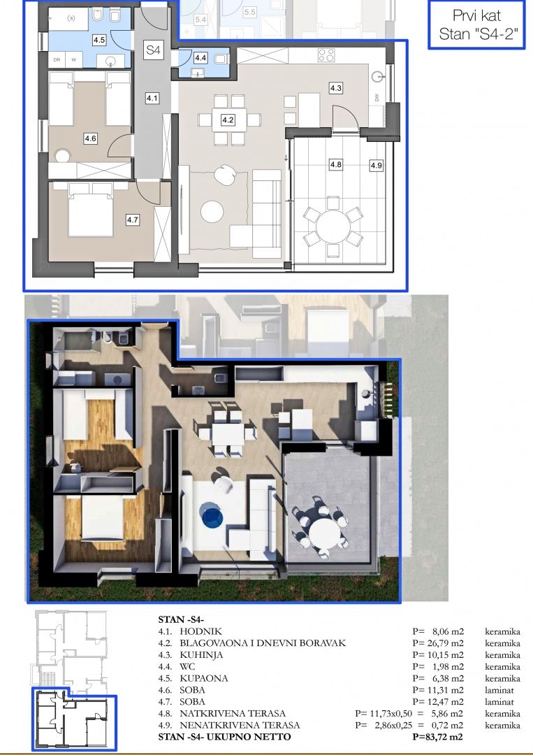 ISTRIEN, LABIN – Zwei-Zimmer-Wohnung in einem modernen Neubau An der Südostküste Istriens, wo grüne Hügel auf das Meer treffen und Natur und Kulturerbe sich vereinen, liegen zwei Städte ähnlicher Größe mit unterschiedlichem, aber sich ergänzendem Charakter: Labin und Rabac. Die malerische Stadt Labin erhebt sich auf einem 320 Meter hohen Hügel, nur vier Kilometer von den weißen Kieselstränden Rabacs entfernt. Geprägt von einer reichen Geschichte und dem Bergbau, der diese Region einst formierte, ist Labin, das kurzzeitig eine unabhängige Republik war, heute eine faszinierende Stadt der Gegensätze: Alt und Neu, Geschichte und Gegenwart, Tourismus und Kunst. Nahe dem Zentrum von Labin entsteht ein modernes Gebäude mit Erdgeschoss und zwei Obergeschossen, das insgesamt acht Wohneinheiten umfasst. Für den Bau wurden langlebige und zuverlässige Materialien verwendet, die langfristige Zufriedenheit und Sicherheit garantieren. Die Raumaufteilung jeder Etage ist bis ins Detail durchdacht und bietet ein hochwertiges Raumkonzept. Zum Verkauf steht eine Wohnung im ersten Obergeschoss dieses Gebäudes. Die Wohnung besteht aus zwei Schlafzimmern, einem Badezimmer, einem Gäste-WC, einem Flur und einem offenen Wohnbereich, der Wohnzimmer, Esszimmer und Küche verbindet und Zugang zu einer teilweise überdachten Terrasse bietet. Diese Wohnung in einem Neubau in fußläufiger Entfernung zu Einkaufsmöglichkeiten sowie kulturellen, Bildungs- und Freizeiteinrichtungen ist ideal für ein angenehmes Familienleben und eignet sich auch als Kapitalanlage zur touristischen Vermietung. Parkplätze werden separat gemäß dem entsprechenden Berechnungsfaktor erworben. Der angegebene Preis bezieht sich auf den Rohbauzustand ohne Möbel, sodass Sie die Wohnung nach Ihren Wünschen und Vorlieben einrichten können. Der Verkäufer ist eine juristische Person, und die Mehrwertsteuer ist im angegebenen Preis enthalten.
