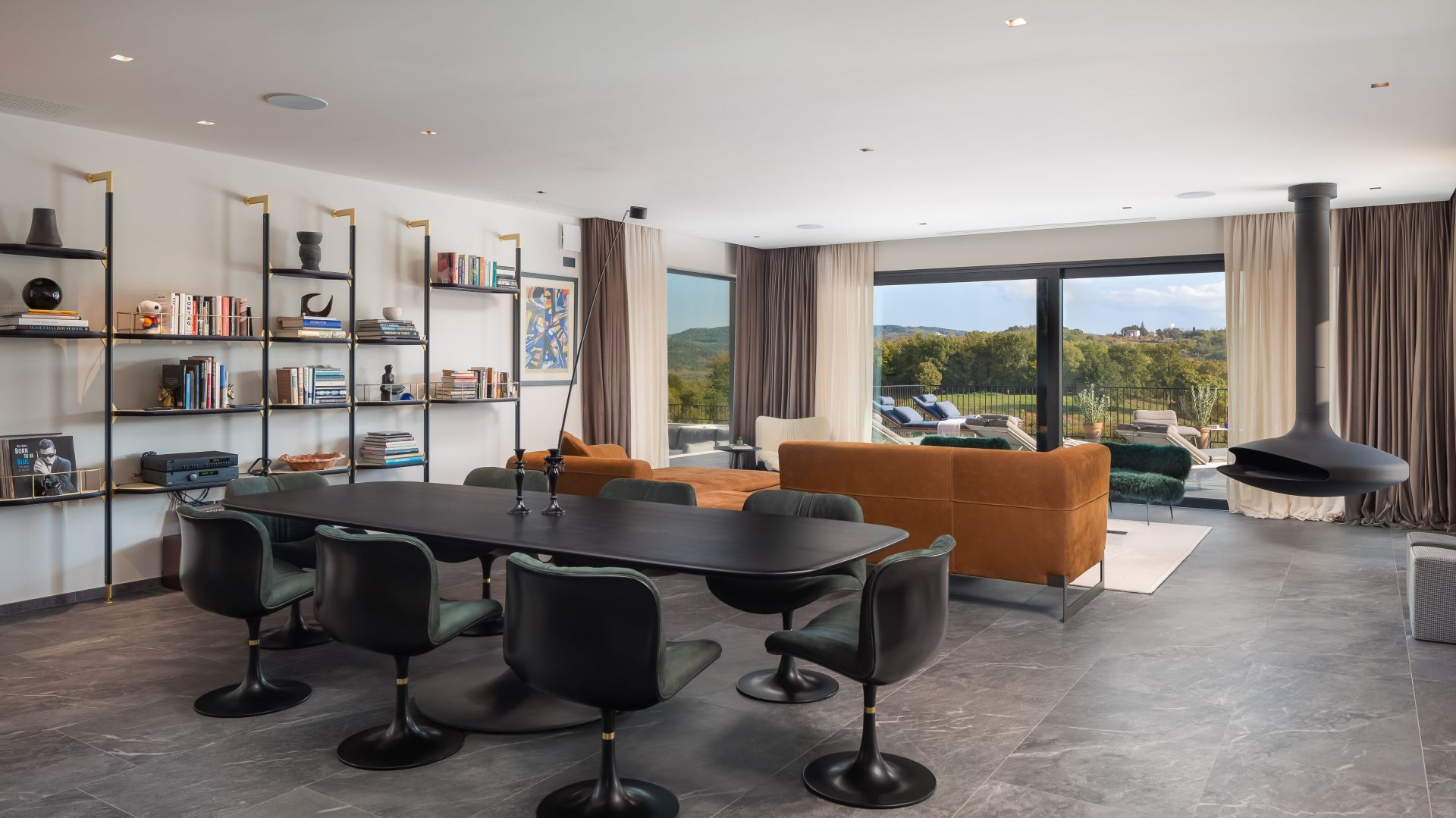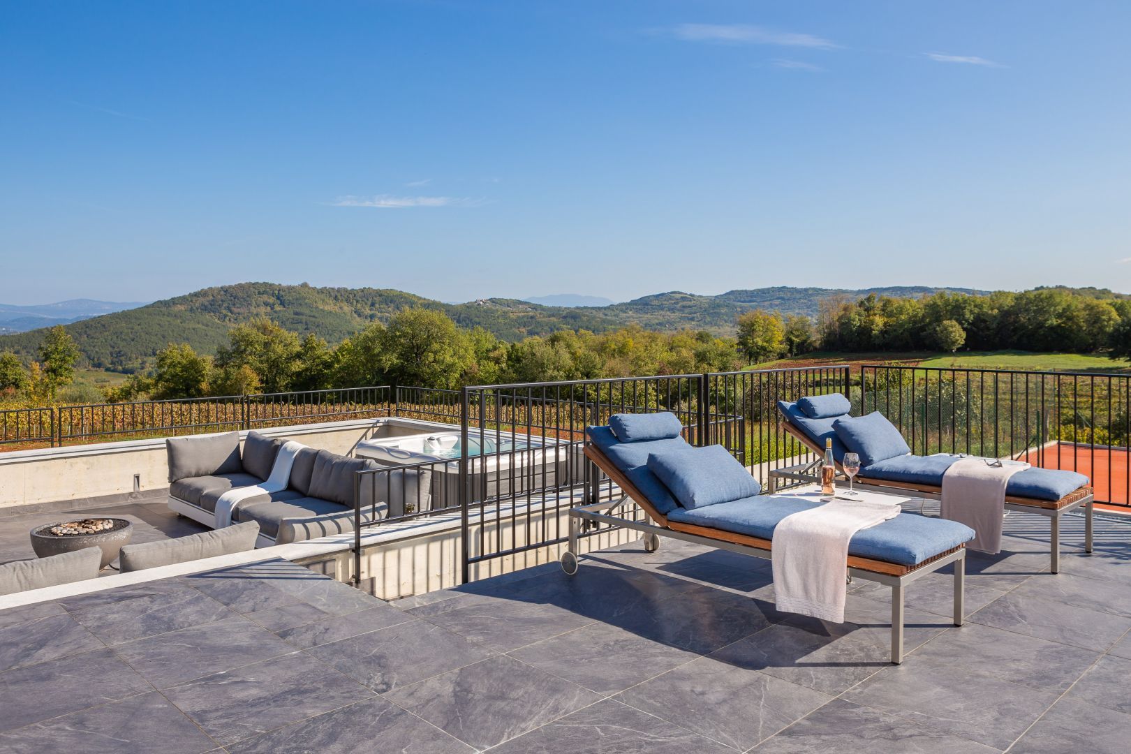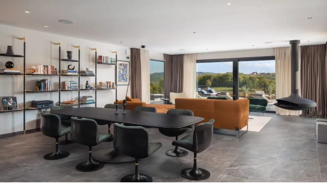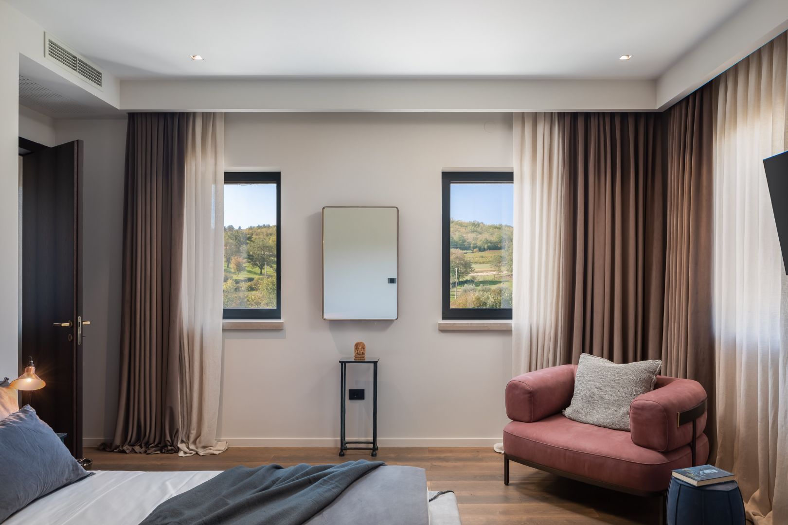 ISTRIEN, MOTOVUN – Luxusvilla mit Naturblick! Im idyllischen istrischen Hinterland liegt das friedliche und bezaubernde Städtchen Motovun. Eingebettet in die sanften Grüntöne der mediterranen Landschaft schmiegt sich das Dorf an einen Hügel. Asphaltierte Wege und verwinkelte Gassen laden zu entspannten Spaziergängen ein. Dank gut ausgebauter Rad- und Wanderwege durch das malerische Mirna-Tal lockt Motovun jedes Jahr zahlreiche Aktivurlauber an, die die unberührte Natur der idyllischen Hügellandschaft Istriens erkunden möchten. Lokale Tavernen, traditionelle Gasthäuser und Restaurants verwöhnen Sie mit einer reichen Auswahl an typisch istrischen Spezialitäten. Diese beeindruckende Villa, gelegen auf einem der Hügel von Motovun, vereint auf gelungene Weise traditionelles istrisches Flair mit moderner Eleganz. Ihr Wohnkonzept verspricht ein harmonisches Zusammenspiel mit der mediterranen Landschaft und bietet einen atemberaubenden Panoramablick auf Motovun und die Umgebung. Das Interieur des Anwesens besticht durch edelste Materialien renommierter Designer und Möbelhersteller sowie ein durchdachtes Design, das Komfort und Stil harmonisch vereint. Die großzügigen und hellen Räume begeistern jeden Besucher. Im Erdgeschoss befindet sich eine separate, große Küche mit Frühstückstisch und kleinem Sofa, die den perfekten Rahmen für gesellige Zusammenkünfte bietet. Die elegant ausgestattete Küche verfügt über modernste Gaggenau-Geräte, während ein offener Kamin dem beeindruckenden Wohn- und Esszimmer eine warme und einladende Atmosphäre verleiht. Ebenfalls im Erdgeschoss befinden sich ein Schlafzimmer mit Bad en suite und ein Fitnessraum mit Spiegeln. Weitere Annehmlichkeiten wie eine Waschküche und ein Abstellraum unterstreichen die Funktionalität der Villa. Im ersten Stock befinden sich zwei weitere luxuriöse Schlafzimmer mit Bad en suite sowie ein 70 m² großes Hauptschlafzimmer mit Bad en suite, Ankleidezimmer, freistehender Badewanne und Dusche – eine gelungene Kombination aus anspruchsvollem Luxus und maximalem Komfort. Die ästhetisch gestalteten Räume bieten nach einem erlebnisreichen Tag maximale Privatsphäre. Der im Untergeschoss gelegene, von außen zugängliche Wellnessbereich verspricht mit Sauna und Bad in unmittelbarer Nähe auch in den Wintermonaten pure Entspannung. Neben dem beeindruckenden Interieur unterstreichen der weitläufige Außenbereich mit privatem Tennisplatz (ATP-zertifiziert) und vielen weiteren Details die Exklusivität und den anspruchsvollen Charakter dieser Villa. Der imposante, 78 m² große Infinity-Pool mit Rollabdeckung fügt sich harmonisch in die Landschaft ein und lädt an heißen Sommertagen zur erfrischenden Abkühlung ein. Die überdachte Sommerküche bietet sich ideal für gesellige Stunden im Freien an. In der komfortablen Lounge mit Whirlpool genießen Sie das Farbenspiel der unberührten Natur mit Blick auf Motovun und die umliegenden Hügel und lassen den Tag bei einem Glas istrischen Wein im Kreise von Familie und Freunden ausklingen. Die Installation eines Stromverteilers auf dem Grundstück ist im Gange. Ausstattung der Villa: * 1 Wärmepumpe zum Heizen und Kühlen des Pools * 2 Wärmepumpen für die Fußbodenheizung (12 Thermostatzonen) * 11 Gebläsekonvektoren * Luftwärmepumpen in jedem Zimmer * Dreifach verglastes Sicherheitsglas mit Moskitonetzen * 5 Solarpaneele zur Warmwasserbereitung * 10 cm Fassadenisolierung * Außenmarkisen mit Windsensor * Wasserfiltersystem * Vorbereitete Installation für Alarmanlage und Kameras * Weinkeller * Spa-Bereich Für eine stimmungsvolle Atmosphäre im Garten wurden 220 sensorgesteuerte Leuchten und 70 Leuchten im Haus installiert. Im Garten befinden sich ausreichend Parkplätze für mehrere Fahrzeuge, einige davon überdacht. Diese luxuriöse Villa vereint modernes Design mit hohem Wohnkomfort. Die Villa ist mit hochwertigsten Materialien und modernster Technik ausgestattet und bietet so höchsten Luxus, Komfort und erstklassige Ausstattung. Sie eignet sich daher ideal zum ganzjährigen Wohnen und für Ferienaufenthalte. Für Käufer, die die Räumlichkeiten nach ihren eigenen Vorstellungen gestalten möchten, besteht die Möglichkeit, die Immobilie unmöbliert zu einem günstigeren Preis von 1.950.000,00 € zu erwerben. Eigentumsanteil (1/1), vollständige Dokumentation. Für weitere Informationen und Besichtigungen kontaktieren Sie uns gerne! Sehr geehrte Kunden, wir möchten Sie darauf hinweisen, dass Besichtigungen und alle weiteren Schritte im Zusammenhang mit dem Kauf nur auf Basis eines unterzeichneten Maklervertrags mit unserer Agentur möglich sind. Im Falle eines erfolgreichen Verkaufs berechnen wir auf dieser Grundlage eine Maklerprovision gemäß unseren Allgemeinen Geschäftsbedingungen (www.dux-nekretnine.hr/opci-uvjeti-poslovanja).