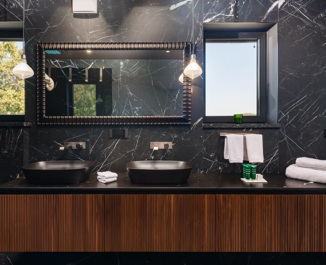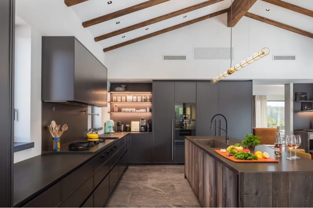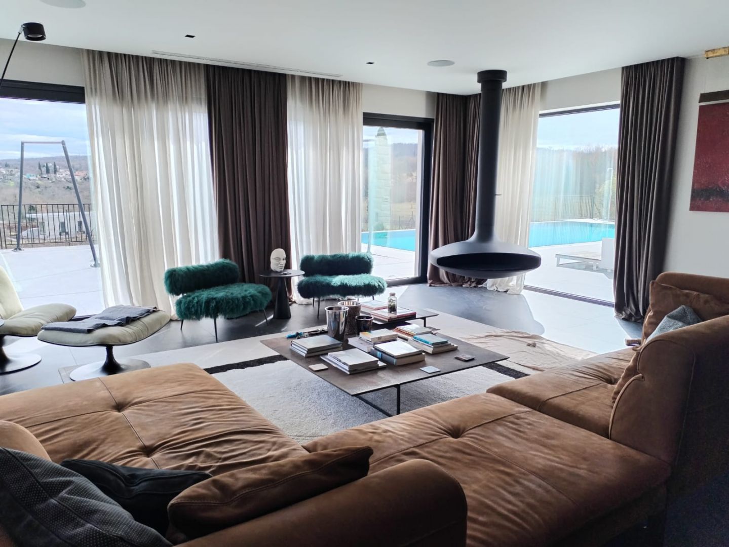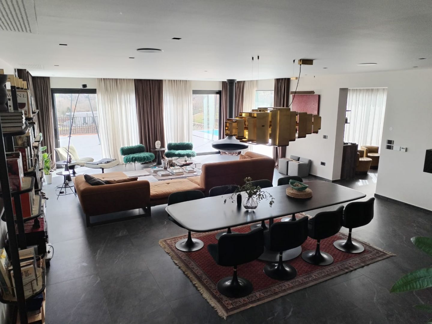 ISTRIEN, MOTOVUN – Luxusvilla mit Naturblick! Im idyllischen istrischen Hinterland liegt das friedliche und bezaubernde Städtchen Motovun. Eingebettet in die sanften Grüntöne der mediterranen Landschaft schmiegt sich das Dorf an einen Hügel. Asphaltierte Wege und verwinkelte Gassen laden zu entspannten Spaziergängen ein. Dank gut ausgebauter Rad- und Wanderwege durch das malerische Mirna-Tal lockt Motovun jedes Jahr zahlreiche Aktivurlauber an, die die unberührte Natur der idyllischen Hügellandschaft Istriens erkunden möchten. Lokale Tavernen, traditionelle Gasthäuser und Restaurants verwöhnen Sie mit einer reichen Auswahl an typisch istrischen Spezialitäten. Diese beeindruckende Villa, gelegen auf einem der Hügel von Motovun, vereint auf gelungene Weise traditionelles istrisches Flair mit moderner Eleganz. Ihr Wohnkonzept verspricht ein harmonisches Zusammenspiel mit der mediterranen Landschaft und bietet einen atemberaubenden Panoramablick auf Motovun und die Umgebung. Das Interieur des Anwesens besticht durch edelste Materialien renommierter Designer und Möbelhersteller sowie ein durchdachtes Design, das Komfort und Stil harmonisch vereint. Die großzügigen und hellen Räume begeistern jeden Besucher. Im Erdgeschoss befindet sich eine separate, große Küche mit Frühstückstisch und kleinem Sofa, die den perfekten Rahmen für gesellige Zusammenkünfte bietet. Die elegant ausgestattete Küche verfügt über modernste Gaggenau-Geräte, während ein offener Kamin dem beeindruckenden Wohn- und Esszimmer eine warme und einladende Atmosphäre verleiht. Ebenfalls im Erdgeschoss befinden sich ein Schlafzimmer mit Bad en suite und ein Fitnessraum mit Spiegeln. Weitere Annehmlichkeiten wie eine Waschküche und ein Abstellraum unterstreichen die Funktionalität der Villa. Im ersten Stock befinden sich zwei weitere luxuriöse Schlafzimmer mit Bad en suite sowie ein 70 m² großes Hauptschlafzimmer mit Bad en suite, Ankleidezimmer, freistehender Badewanne und Dusche – eine gelungene Kombination aus anspruchsvollem Luxus und maximalem Komfort. Die ästhetisch gestalteten Räume bieten nach einem erlebnisreichen Tag maximale Privatsphäre. Der im Untergeschoss gelegene, von außen zugängliche Wellnessbereich verspricht mit Sauna und Bad in unmittelbarer Nähe auch in den Wintermonaten pure Entspannung. Neben dem beeindruckenden Interieur unterstreichen der weitläufige Außenbereich mit privatem Tennisplatz (ATP-zertifiziert) und vielen weiteren Details die Exklusivität und den anspruchsvollen Charakter dieser Villa. Der imposante, 78 m² große Infinity-Pool mit Rollabdeckung fügt sich harmonisch in die Landschaft ein und lädt an heißen Sommertagen zur erfrischenden Abkühlung ein. Die überdachte Sommerküche bietet sich ideal für gesellige Stunden im Freien an. In der komfortablen Lounge mit Whirlpool genießen Sie das Farbenspiel der unberührten Natur mit Blick auf Motovun und die umliegenden Hügel und lassen den Tag bei einem Glas istrischen Wein im Kreise von Familie und Freunden ausklingen. Die Installation eines Stromverteilers auf dem Grundstück ist im Gange. Ausstattung der Villa: * 1 Wärmepumpe zum Heizen und Kühlen des Pools * 2 Wärmepumpen für die Fußbodenheizung (12 Thermostatzonen) * 11 Gebläsekonvektoren * Luftwärmepumpen in jedem Zimmer * Dreifach verglastes Sicherheitsglas mit Moskitonetzen * 5 Solarpaneele zur Warmwasserbereitung * 10 cm Fassadenisolierung * Außenmarkisen mit Windsensor * Wasserfiltersystem * Vorbereitete Installation für Alarmanlage und Kameras * Weinkeller * Spa-Bereich Für eine stimmungsvolle Atmosphäre im Garten wurden 220 sensorgesteuerte Leuchten und 70 Leuchten im Haus installiert. Im Garten befinden sich ausreichend Parkplätze für mehrere Fahrzeuge, einige davon überdacht. Diese luxuriöse Villa vereint modernes Design mit hohem Wohnkomfort. Die Villa ist mit hochwertigsten Materialien und modernster Technik ausgestattet und bietet so höchsten Luxus, Komfort und erstklassige Ausstattung. Sie eignet sich daher ideal zum ganzjährigen Wohnen und für Ferienaufenthalte. Für Käufer, die die Räumlichkeiten nach ihren eigenen Vorstellungen gestalten möchten, besteht die Möglichkeit, die Immobilie unmöbliert zu einem günstigeren Preis von 1.950.000,00 € zu erwerben. Eigentumsanteil (1/1), vollständige Dokumentation. Für weitere Informationen und Besichtigungen kontaktieren Sie uns gerne! Sehr geehrte Kunden, wir möchten Sie darauf hinweisen, dass Besichtigungen und alle weiteren Schritte im Zusammenhang mit dem Kauf nur auf Basis eines unterzeichneten Maklervertrags mit unserer Agentur möglich sind. Im Falle eines erfolgreichen Verkaufs berechnen wir auf dieser Grundlage eine Maklerprovision gemäß unseren Allgemeinen Geschäftsbedingungen (www.dux-nekretnine.hr/opci-uvjeti-poslovanja).