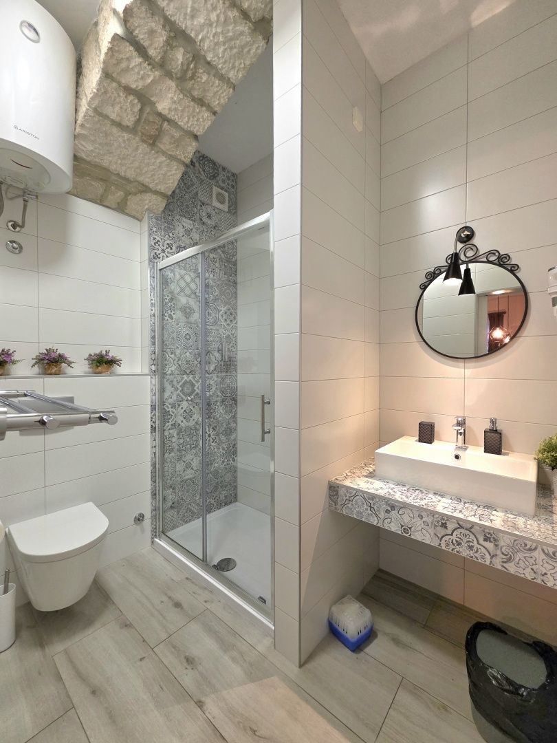ISTRIEN, PULA, ZENTRUM – Renovierte Erdgeschosswohnung in einem österreichisch-ungarischen Gebäude mit separatem Eingang Im Herzen der historischen Altstadt von Pula, umgeben von charmanten Gassen, kulturellen Sehenswürdigkeiten und dem warmen Flair der Altstadt, befindet sich diese komplett renovierte Wohnung, die den historischen Charakter österreichisch-ungarischer Architektur mit modernem Wohnkomfort verbindet. Die Wohnung liegt im Erdgeschoss eines kleineren, komplett renovierten Gebäudes und bietet einen seltenen Vorteil: einen eigenen Eingang, der absolute Privatsphäre und Exklusivität mitten im Stadtzentrum garantiert. WOHNUNGSBESCHREIBUNG: Die Wohnung umfasst 58,68 m² Wohnfläche, die sorgfältig gestaltet wurde, um maximale Funktionalität und Flexibilität zu gewährleisten. Der Eingangsbereich führt in einen Raum, der derzeit als Entspannungs- und Aufenthaltszone eingerichtet ist. Die zukünftigen Eigentümer können diesen Bereich problemlos in ein geräumiges Wohnzimmer mit Küche und Essbereich umwandeln und so den perfekten Ort zum Entspannen und Beisammensein mit Familie und Freunden schaffen. Im Erdgeschoss befinden sich zwei geräumige Schlafzimmer, jeweils mit eigenem Bad, was dieser Wohnung besonderen Komfort und Privatsphäre verleiht. Dank dieser Raumaufteilung eignet sich die Wohnung auch als Kapitalanlage. Es besteht die Möglichkeit, zwei separate Zimmer mit gemeinsamem Eingangsbereich zu vermieten – eine ideale Lösung für alle, die durch touristische oder langfristige Vermietung Rendite erzielen möchten. ZUSÄTZLICHE INFORMATIONEN: * Die Wohnung wurde komplett renoviert. Dabei wurden alle wichtigen Elemente sorgfältig erneuert: * Strom-, Wasser-, Abwasser- und Internetanschlüsse wurden erneuert. * Neue PVC-Fenster und -Türen wurden eingebaut. * Wärme-, Wasser- und Schalldämmung wurden installiert. * Neue Beton-Zwischenbodenkonstruktion wurde errichtet. * Alle Wände wurden neu begradigt und die Böden mit modernen Materialien renoviert. Das Gebäude, in dem sich die Wohnung befindet, ist eine Eigentumswohnanlage und verfügt über alle notwendigen Dokumente sowie eine gültige Nutzungsgenehmigung. Die Eigentumsverhältnisse sind geordnet (1/1), und jede Wohnung hat einen eigenen Strom- und Wasserzähler. Dies unterstreicht die Sicherheit und Transparenz dieses Angebots. LAGEBESCHREIBUNG: Die Wohnung befindet sich im Herzen von Pula, nur wenige Schritte von den bekanntesten Sehenswürdigkeiten der Stadt entfernt: dem Goldenen Tor, dem Herkulestor, dem Amphitheater, dem alten Stadtforum, der Festung Kaštel und dem Römischen Theater. In der Umgebung finden Sie ein vielfältiges kulturelles und urbanes Angebot: Restaurants, Cafés, Geschäfte, Schulen, Kindergärten und Arztpraxen. Bushaltestellen der Stadtbuslinien, die alle Stadtteile und die Küste mit den wunderschönen Stränden von Pula verbinden, befinden sich ebenfalls in unmittelbarer Nähe. Obwohl die Wohnung zentral liegt, befindet sie sich in einer ruhigen Gegend. Mehrere öffentliche Parkplätze stehen in direkter Umgebung zur Verfügung. Eigentümer haben die Möglichkeit, eine Jahresparkkarte zu erwerben, was die Immobilie noch attraktiver für Selbstnutzer oder Mieter macht. FAZIT: Diese Immobilie ist die perfekte Wahl für alle, die im Herzen von Pula wohnen möchten – in einem Viertel, das Geschichte ausstrahlt und gleichzeitig modernen Komfort und Ästhetik bietet. Ob Sie ein komfortables Zuhause in der Stadt oder eine sichere Kapitalanlage mit hervorragendem Vermietungspotenzial suchen – diese Wohnung bietet die ideale Kombination aus Stil, Lage und Funktionalität. Für weitere Informationen oder zur Vereinbarung eines Besichtigungstermins kontaktieren Sie uns bitte jederzeit.