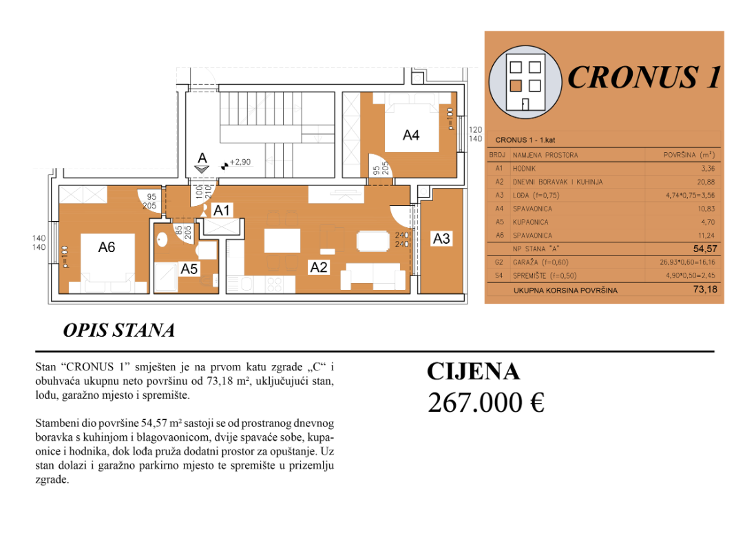 Istrien, Pula – Moderner Neubau in begehrter Lage! In attraktiver Lage am Stadtrand von Pula entsteht ein neues Wohnprojekt mit sechs Gebäuden und insgesamt 24 Wohnungen. Die Fertigstellung ist für Frühjahr 2027 geplant, alle erforderlichen Genehmigungen und der Energieausweis liegen vor. Objektbeschreibung: Das Projekt umfasst vier Wohnungen pro Gebäude mit einer Wohnfläche zwischen 60 m² und 88 m² – zwei im ersten und zwei im zweiten Obergeschoss. Jede Wohnung verfügt über zwei Schlafzimmer, eine geräumige Wohnküche, ein Badezimmer und eine Loggia. Zur Wohneinheit gehören außerdem eine Garage oder ein Außenstellplatz sowie ein Abstellraum im Erdgeschoss. AUSSENBEREICH: Die Umgebung des Gebäudes wird mit Grünflächen mit einheimischen istrischen Pflanzen, einem Rasen mit automatischer Bewässerung, gepflasterten Wegen und Zufahrten, einer Hecke für mehr Privatsphäre, LED-Beleuchtung mit Bewegungsmeldern und einem nachhaltigen Entwässerungssystem mit unterirdischen Drainagen und einem Versickerungsschacht gestaltet. TECHNISCHE DATEN: - Die Innenausstattung der Wohngebäude entspricht hohen Qualitätsstandards (Energieklasse A/A+): - Wärmedämmfassade (WDVS) und hocheffiziente, 10 cm dicke Wärmedämmung (Mineralwolle/EPS) - Einbruchsichere Eingangstüren, Außenfenster und -türen aus PVC-Profilen mit argongefülltem Doppelglas (IZO) und Rollläden - In allen Räumen der Wohnungen werden hochwertige, moderne Keramikfliesen verlegt, die sorgfältig nach Langlebigkeit und Ästhetik ausgewählt wurden. Auf den Loggien sorgen rutschfeste Fliesen für zusätzliche Sicherheit und Komfort. - Jede Wohneinheit wird klimatisiert, Bad, Wohnzimmer und Küche verfügen über eine elektrische Fußbodenheizung. Elektrische Heizkörper (Wäschetrockner) mit Thermostat sind in den Badezimmern vorhanden. LAGE: - In unmittelbarer Nähe zur Hauptstraße, schnelle Anbindung an das Zentrum von Pula, den Busbahnhof und die Ausfahrt zum Istrischen Autobahnring. - Nur wenige Gehminuten von Lidl, Plodin, Kaufland, Pevex, Bauhaus und weiteren Geschäften entfernt – ideal für den Alltag. - Der Parkwald von Šijana ist nur wenige Minuten entfernt – perfekt zum Spazierengehen, Joggen, Radfahren und für Familienaktivitäten in der Natur. - In der Nähe befinden sich Kindergärten, die Grundschule Šijana, Sportanlagen und Kinderspielplätze. - Die Siedlung ist ein ruhiges Wohngebiet abseits vom Stadtlärm, aber dennoch in unmittelbarer Nähe zu allen wichtigen Einrichtungen. Ein hervorragendes Projekt in begehrter Lage, das Ihnen alles bietet, was Sie für einen neuen Lebensabschnitt benötigen. Für weitere Informationen und zur Vereinbarung eines Besichtigungstermins kontaktieren Sie bitte Ihren Makler!