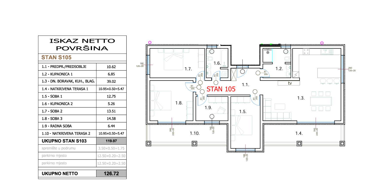 Istrien, Pula – Modernes Neubaugebäude – Zentrum! 2. Etage! Wir präsentieren Ihnen ein Projekt im Zentrum von Pula. Das moderne Neubaugebäude erstreckt sich vom Erdgeschoss bis zum dritten Obergeschoss und umfasst insgesamt 21 Wohneinheiten. Wir bieten 10 Wohneinheiten an, die hier angebotene befindet sich im zweiten Obergeschoss. Sie besteht aus einer Eingangshalle, einem Wohnzimmer mit angrenzender Küche und Essbereich sowie Zugang zu einer überdachten Terrasse, einem Flur, drei Schlafzimmern, einem Arbeitszimmer und zwei Badezimmern. Zur Immobilie gehören außerdem ein Abstellraum im Untergeschoss und zwei Außenstellplätze. Die Nettowohnfläche der Wohnung beträgt 126,72 m². Alle Wohnungen sind mit hochwertigen und modernen Ausstattungsdetails versehen: - Gas-Fußbodenheizung mit Thermostaten in jedem Zimmer - PVC-Fenster und -Türen mit Dreifachverglasung, Rollläden und Insektenschutzgittern - Innentüren mit Wabenfüllung - einbruch- und feuerfeste Eingangstüren - Video-Gegensprechanlage - Daikin-Klimaanlagen (6 kW) im Wohnzimmer (Installation in allen Zimmern gegen Aufpreis möglich) - Fliesen oder Parkett/Laminat für die Fußbodenheizung (nach Absprache mit dem Bauträger wählbar) Die Bauarbeiten werden voraussichtlich im März 2027 abgeschlossen sein. Eine hervorragende Immobilie in bester Lage, ideal für Familien oder als Kapitalanlage zur langfristigen Vermietung. Für weitere Informationen und zur Vereinbarung eines Besichtigungstermins kontaktieren Sie bitte Ihren Makler!