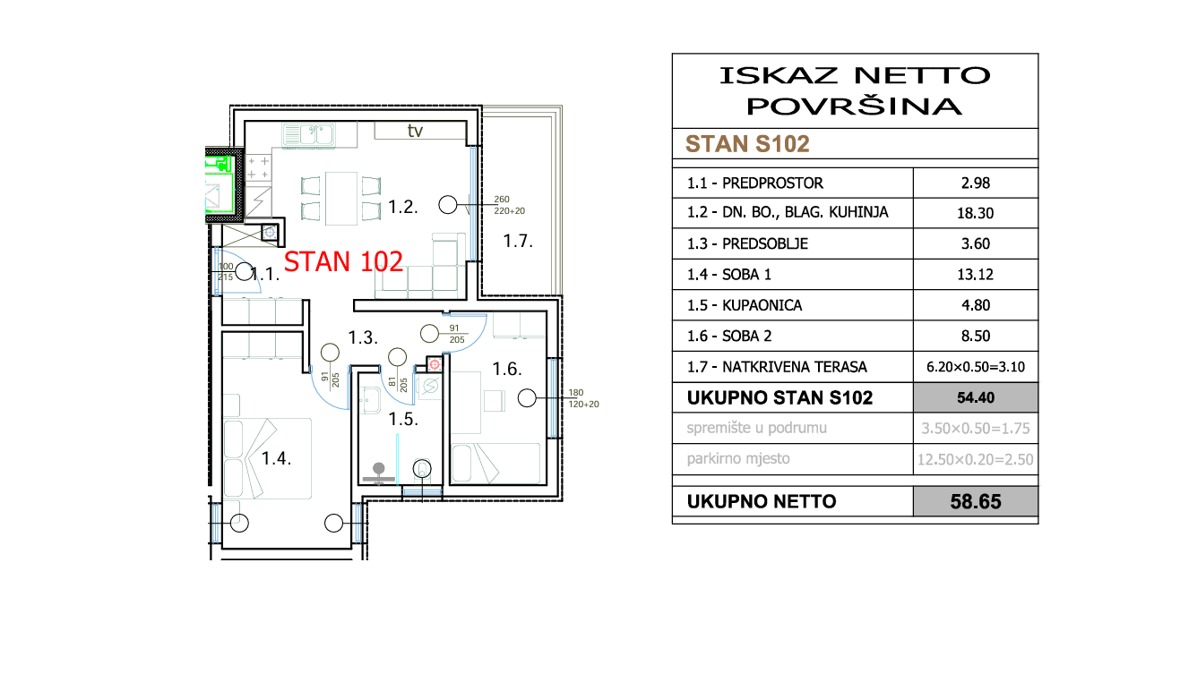 Istrien, Pula – Moderner Neubau – Zentrum! 3. Etage! Wir präsentieren Ihnen ein Projekt im Zentrum von Pula. Der moderne Neubau erstreckt sich vom Erdgeschoss bis zum dritten Obergeschoss und umfasst insgesamt 21 Wohneinheiten. Wir bieten 10 Wohneinheiten an, die hier angebotene Wohnung befindet sich im dritten Obergeschoss. Sie besteht aus einem Eingangsbereich, einem Wohnzimmer mit angrenzender Küche und Essbereich sowie Zugang zu einer überdachten Terrasse, einem Flur, zwei Schlafzimmern und einem Badezimmer. Zur Immobilie gehören außerdem ein Abstellraum im Untergeschoss und ein Außenstellplatz. Die Wohnfläche der Wohnung beträgt 58,65 m². Alle Wohnungen sind mit hochwertigen und modernen Ausstattungsdetails versehen: - Gas-Fußbodenheizung mit Thermostaten in jedem Zimmer - PVC-Fenster und -Türen mit Dreifachverglasung, Rollläden und Insektenschutzgittern - Innentüren mit Wabenfüllung - einbruch- und feuerfeste Eingangstüren - Video-Gegensprechanlage - Daikin-Klimaanlagen (6 kW) im Wohnzimmer (Installation in allen Zimmern gegen Aufpreis möglich) - Fliesen oder Parkett/Laminat für die Fußbodenheizung (nach Absprache mit dem Bauträger wählbar) Die Bauarbeiten werden voraussichtlich im März 2027 abgeschlossen sein. Eine hervorragende Immobilie in bester Lage, ideal für Familien oder als Kapitalanlage zur langfristigen Vermietung. Für weitere Informationen und zur Vereinbarung eines Besichtigungstermins kontaktieren Sie bitte Ihren Makler!