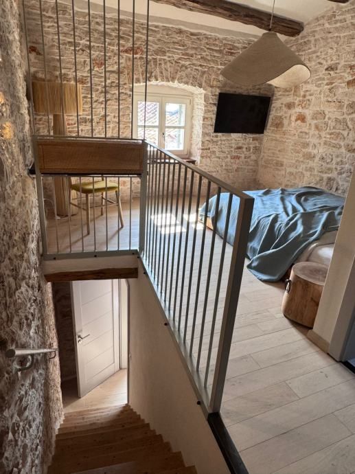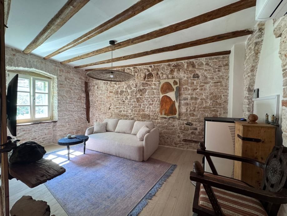 ISTRIEN, BALE – Charmantes Steinhaus in der Altstadt Die Gemeinde Bale, nahe Rovinj gelegen, ist ein geschütztes Gebiet Istriens, das von jeglicher Zerstörung verschont geblieben ist und sich heute mit Stolz seiner fast unberührten Schönheit rühmen kann. Diese zeichnet sich durch hervorragende Naturschätze, unberührte Natur und ein reiches kulturelles und architektonisches Erbe aus. Die Steinstadt Bale bietet istrische Tradition und Architektur, deren archäologische Forschungen belegen, dass das Gebiet bereits zur Zeit des Römischen Reiches besiedelt war. Bale ist nicht nur eine Stadt, sondern die gesamte Gemeinde Bale ist ein Naturraum mit Feldern, Weiden und Wäldern, in denen sich Überreste alter Gebäude, römischer Straßen, Zisternen, Brunnen, römischer Villen, Ölmühlen, Kirchen und vieles mehr finden. Dieses einzigartige Anwesen in der Altstadt besticht durch Charakter, Eleganz und sorgsam bewahrte Geschichte. Das Haus erstreckt sich über vier Etagen und bietet eine Wohnfläche von 116 m². Das Erdgeschoss verfügt über eine Küche (Nolte), ein Esszimmer, ein WC mit Waschtrockner und einen Abstellraum. Im ersten Obergeschoss befindet sich ein Wohnzimmer, während sich in den beiden anderen Etagen jeweils ein Schlafzimmer mit Bad und WC befindet. Dieses Haus ist nicht nur ein Zuhause, sondern ein Kunstwerk – eine Verbindung von Tradition, Kultur und modernem Design. Es wurde sorgfältig renoviert, wobei die Steinmauern, Balken und die alte Holztreppe erhalten und sichtbar gemacht wurden. Die Innenräume sind mit Kunstwerken eines lokalen Künstlers geschmückt – jeder Raum erzählt seine eigene Geschichte. Das Haus ist mit einer Fußbodenheizung und Pelletöfen ausgestattet, und drei Klimaanlagen sorgen zu jeder Jahreszeit für angenehme Temperaturen. Das Haus wird komplett möbliert verkauft. Reines Eigentum ohne Belastungen.