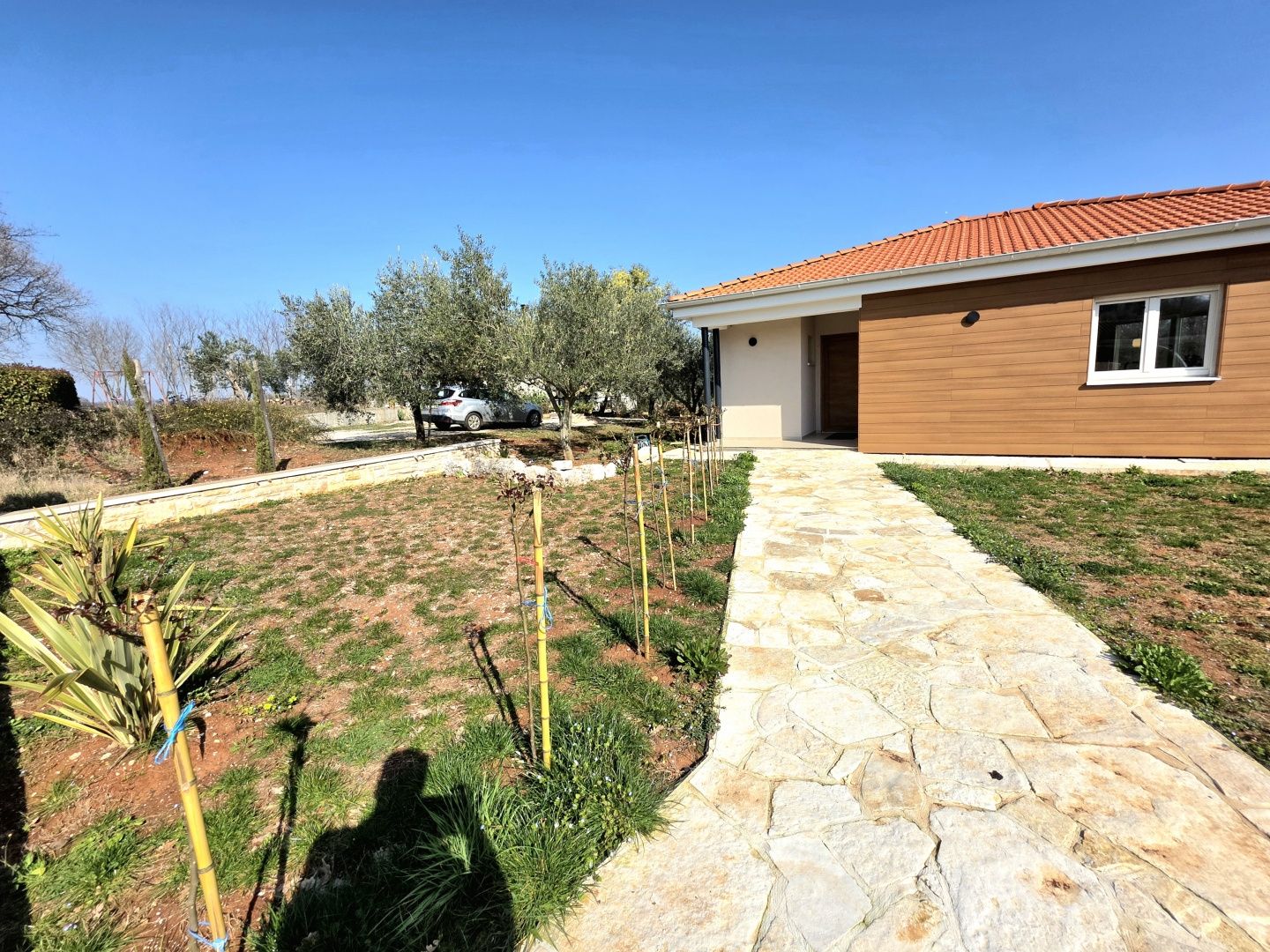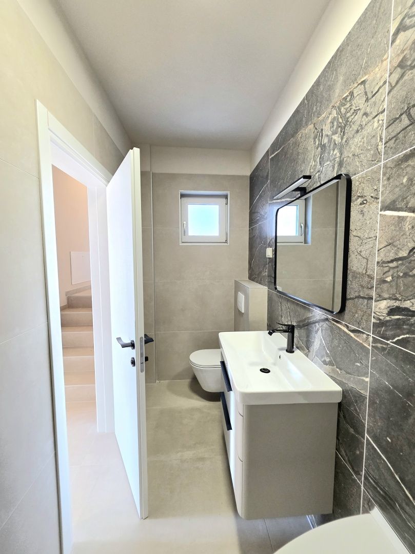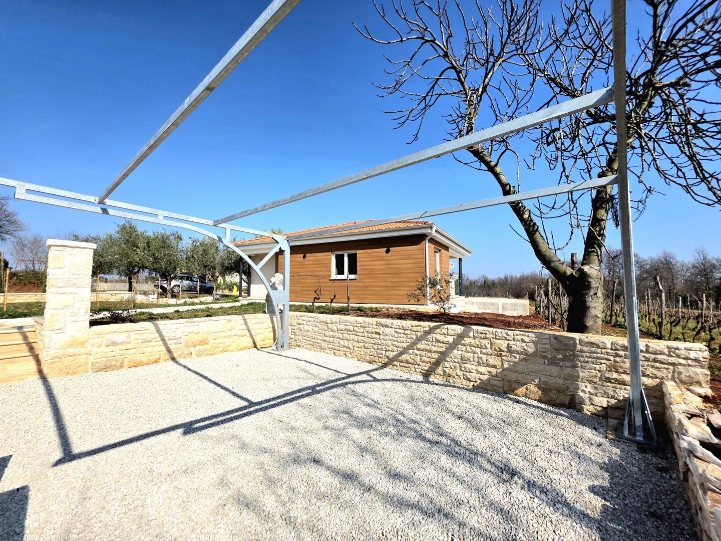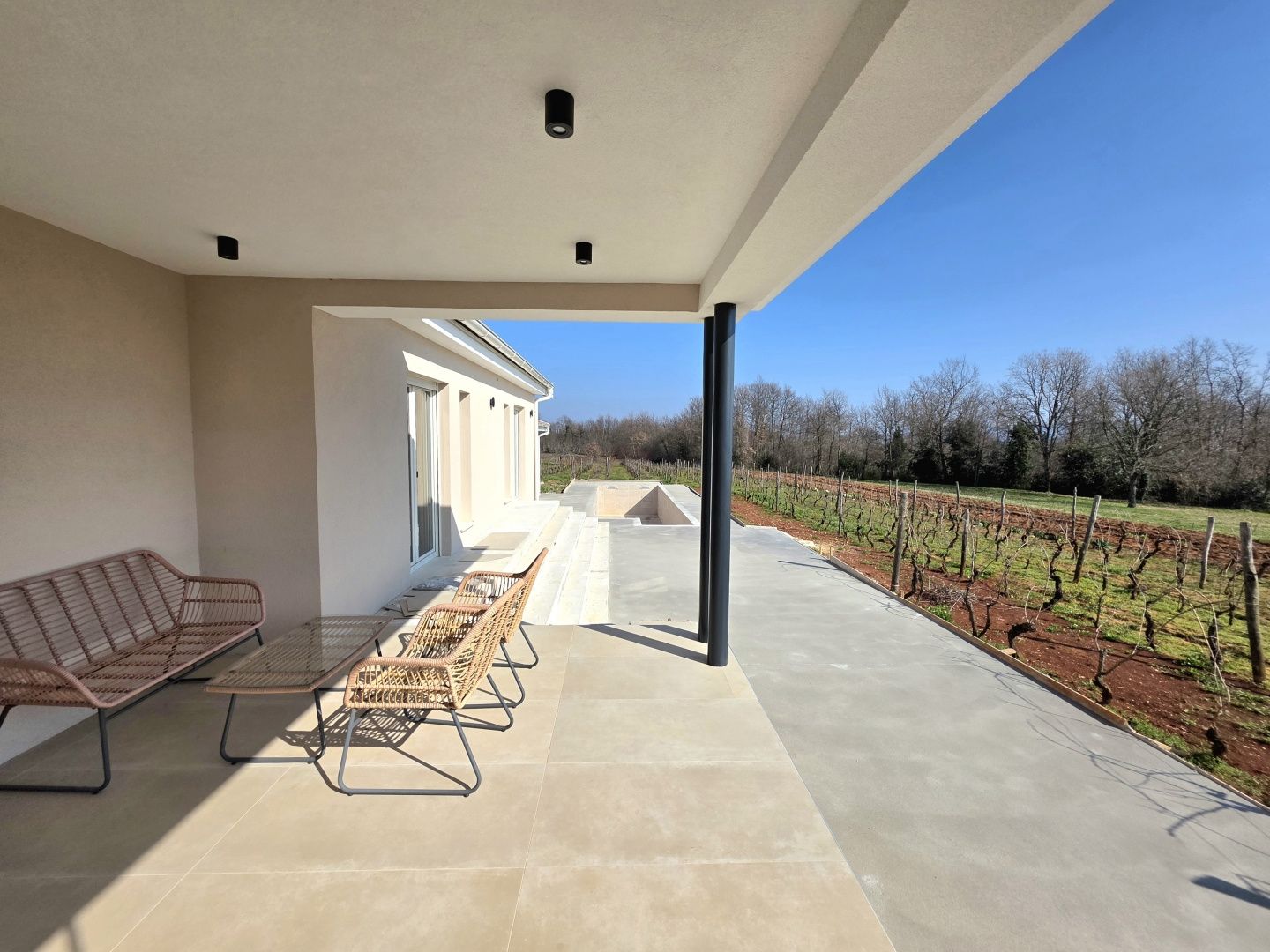 ISTRIEN, BARBAN – Neue Erdgeschossvilla inmitten von Weinbergen, Privatsphäre, Eleganz und absolute Ruhe zur Langzeitmiete In einer ruhigen und gepflegten Siedlung nahe Barban, umgeben von Grün und gepflegten Weinbergen, befindet sich diese neue, private Erdgeschossvilla. Sie vereint modernen Luxus mit authentischem istrischem Ambiente. Das 2026 erbaute Anwesen ist ideal für alle, die absolute Privatsphäre, Großzügigkeit und höchste Lebensqualität suchen – ob für das Familienleben oder als exklusive Kapitalanlage. HAUSBESCHREIBUNG – Ein lichtdurchfluteter Raum inmitten der Natur Beim Betreten der Villa öffnet sich ein beeindruckender Wohnbereich im offenen Stil. Ein komfortables Wohnzimmer, eine etwas abgetrennte, moderne und voll ausgestattete Küche mit eigenem Abstellraum sowie ein geräumiges Esszimmer für die ganze Familie bilden ein harmonisches und funktionales Ensemble. Große Glaswände lassen die Grenzen zwischen Innen und Außen verschwimmen und verbinden den Innenraum mit einer überdachten Sommerterrasse, dem Swimmingpool und dem Garten. Der gesamte Wohnbereich ist lichtdurchflutet, und von fast jedem Winkel der Villa bietet sich ein beruhigender Blick auf den gepflegten Weinberg, der das Anwesen umgibt. Neben dem Wohnbereich befinden sich ein Gäste-WC und ein Technik-/Abstellraum. Der Flur vom Wohnbereich führt in einen separaten, intimen Teil der Villa mit vier Schlafzimmern. Zwei Zimmer verfügen über ein eigenes Bad, die anderen beiden teilen sich ein geräumiges Badezimmer. Ein besonderer Vorteil dieser Villa ist der direkte Zugang jedes Schlafzimmers zum angelegten Garten und zum Swimmingpool. So entsteht ein Gefühl von Hotelkomfort und gleichzeitig eine tiefe Verbundenheit mit der Natur. Eines der Zimmer ist derzeit als Spielzimmer eingerichtet, kann aber problemlos an Ihre Bedürfnisse angepasst werden. BESCHREIBUNG DES GARTENS – Der Garten als Erweiterung des Wohnraums Der weitläufige und luftige Garten ist von den gepflegten Weinbergen der Eigentümer umgeben. Dies garantiert ein hohes Maß an Privatsphäre und einen ungestörten Ausblick ohne Befürchtungen zukünftiger Bebauung. Die Zufahrt zum Anwesen erfolgt über eine asphaltierte Straße. Am Eingang befinden sich zwei separate, überdachte Parkplätze. Das Herzstück des Gartens ist ein beeindruckender, 40 m² großer Salzwasserpool, der sich hinter der Villa befindet und maximale Ruhe und Privatsphäre bietet. Angrenzend an den Pool befinden sich eine überdachte Sommerterrasse, eine Außenküche und ein separater Bereich für einen Whirlpool – der perfekte Ort zum geselligen Beisammensein, für sommerliche Abendessen und zum Entspannen unter freiem Himmel. Der restliche Garten ist im mediterranen Stil mit sorgfältig ausgewählten Pflanzen und Bäumen gestaltet, während Rasenflächen ausreichend Platz zum Spielen für Kinder und zum Verweilen für Haustiere bieten. ZUSÄTZLICHE INFORMATIONEN: * Die Villa wird komplett möbliert vermietet, inklusive aller Möbel und Geräte. Die Inneneinrichtung besteht aus Designermöbeln, die speziell für dieses Anwesen angefertigt wurden und eine einzigartige Ästhetik mit maximaler Funktionalität vereinen. * Zu den technischen Annehmlichkeiten gehören Fußbodenheizung in allen Räumen sowie eine Klimaanlage zum Heizen und Kühlen in jedem Zimmer. Diese Villa ist die perfekte Wahl für alle, die modernen Luxus in authentisch istrischer Umgebung suchen, umgeben von Natur und dennoch in unmittelbarer Nähe zu allen Annehmlichkeiten des täglichen Bedarfs. Für weitere Fragen, Informationen oder zur Vereinbarung eines Besichtigungstermins kontaktieren Sie uns bitte jederzeit.