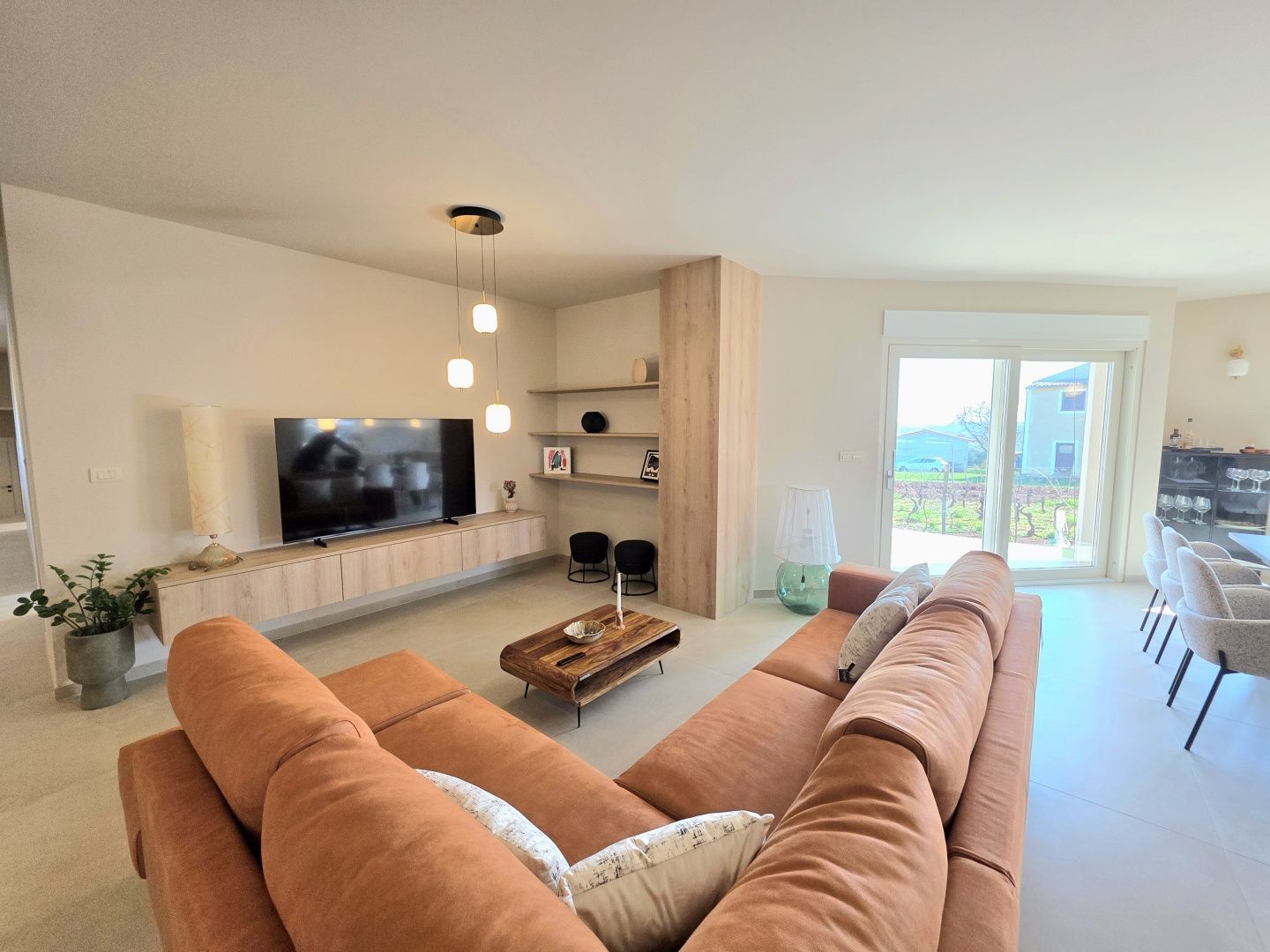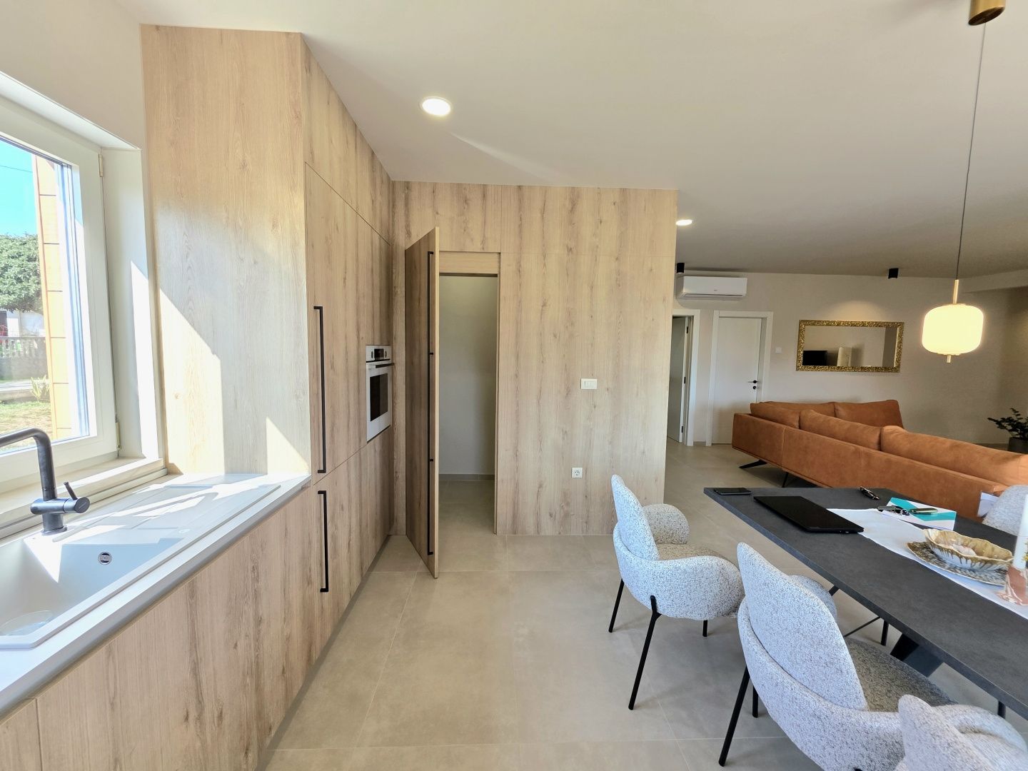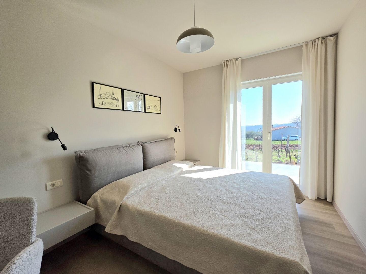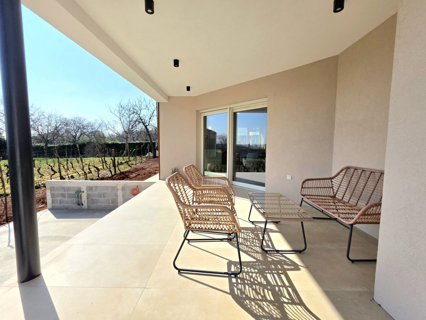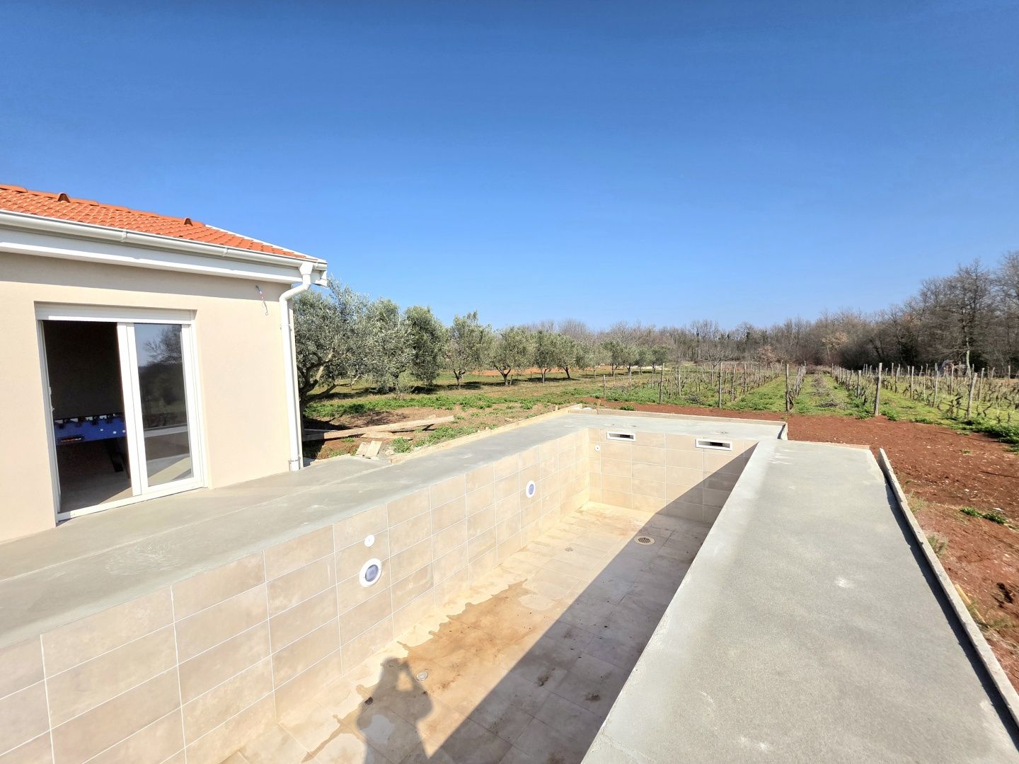 ISTRIEN, BARBAN – Neue Erdgeschossvilla inmitten von Weinbergen, Privatsphäre, Eleganz und absolute Ruhe zur Langzeitmiete In einer ruhigen und gepflegten Siedlung nahe Barban, umgeben von Grün und gepflegten Weinbergen, befindet sich diese neue, private Erdgeschossvilla. Sie vereint modernen Luxus mit authentischem istrischem Ambiente. Das 2026 erbaute Anwesen ist ideal für alle, die absolute Privatsphäre, Großzügigkeit und höchste Lebensqualität suchen – ob für das Familienleben oder als exklusive Kapitalanlage. HAUSBESCHREIBUNG – Ein lichtdurchfluteter Raum inmitten der Natur Beim Betreten der Villa öffnet sich ein beeindruckender Wohnbereich im offenen Stil. Ein komfortables Wohnzimmer, eine etwas abgetrennte, moderne und voll ausgestattete Küche mit eigenem Abstellraum sowie ein geräumiges Esszimmer für die ganze Familie bilden ein harmonisches und funktionales Ensemble. Große Glaswände lassen die Grenzen zwischen Innen und Außen verschwimmen und verbinden den Innenraum mit einer überdachten Sommerterrasse, dem Swimmingpool und dem Garten. Der gesamte Wohnbereich ist lichtdurchflutet, und von fast jedem Winkel der Villa bietet sich ein beruhigender Blick auf den gepflegten Weinberg, der das Anwesen umgibt. Neben dem Wohnbereich befinden sich ein Gäste-WC und ein Technik-/Abstellraum. Der Flur vom Wohnbereich führt in einen separaten, intimen Teil der Villa mit vier Schlafzimmern. Zwei Zimmer verfügen über ein eigenes Bad, die anderen beiden teilen sich ein geräumiges Badezimmer. Ein besonderer Vorteil dieser Villa ist der direkte Zugang jedes Schlafzimmers zum angelegten Garten und zum Swimmingpool. So entsteht ein Gefühl von Hotelkomfort und gleichzeitig eine tiefe Verbundenheit mit der Natur. Eines der Zimmer ist derzeit als Spielzimmer eingerichtet, kann aber problemlos an Ihre Bedürfnisse angepasst werden. BESCHREIBUNG DES GARTENS – Der Garten als Erweiterung des Wohnraums Der weitläufige und luftige Garten ist von den gepflegten Weinbergen der Eigentümer umgeben. Dies garantiert ein hohes Maß an Privatsphäre und einen ungestörten Ausblick ohne Befürchtungen zukünftiger Bebauung. Die Zufahrt zum Anwesen erfolgt über eine asphaltierte Straße. Am Eingang befinden sich zwei separate, überdachte Parkplätze. Das Herzstück des Gartens ist ein beeindruckender, 40 m² großer Salzwasserpool, der sich hinter der Villa befindet und maximale Ruhe und Privatsphäre bietet. Angrenzend an den Pool befinden sich eine überdachte Sommerterrasse, eine Außenküche und ein separater Bereich für einen Whirlpool – der perfekte Ort zum geselligen Beisammensein, für sommerliche Abendessen und zum Entspannen unter freiem Himmel. Der restliche Garten ist im mediterranen Stil mit sorgfältig ausgewählten Pflanzen und Bäumen gestaltet, während Rasenflächen ausreichend Platz zum Spielen für Kinder und zum Verweilen für Haustiere bieten. ZUSÄTZLICHE INFORMATIONEN: * Die Villa wird komplett möbliert vermietet, inklusive aller Möbel und Geräte. Die Inneneinrichtung besteht aus Designermöbeln, die speziell für dieses Anwesen angefertigt wurden und eine einzigartige Ästhetik mit maximaler Funktionalität vereinen. * Zu den technischen Annehmlichkeiten gehören Fußbodenheizung in allen Räumen sowie eine Klimaanlage zum Heizen und Kühlen in jedem Zimmer. Diese Villa ist die perfekte Wahl für alle, die modernen Luxus in authentisch istrischer Umgebung suchen, umgeben von Natur und dennoch in unmittelbarer Nähe zu allen Annehmlichkeiten des täglichen Bedarfs. Für weitere Fragen, Informationen oder zur Vereinbarung eines Besichtigungstermins kontaktieren Sie uns bitte jederzeit.