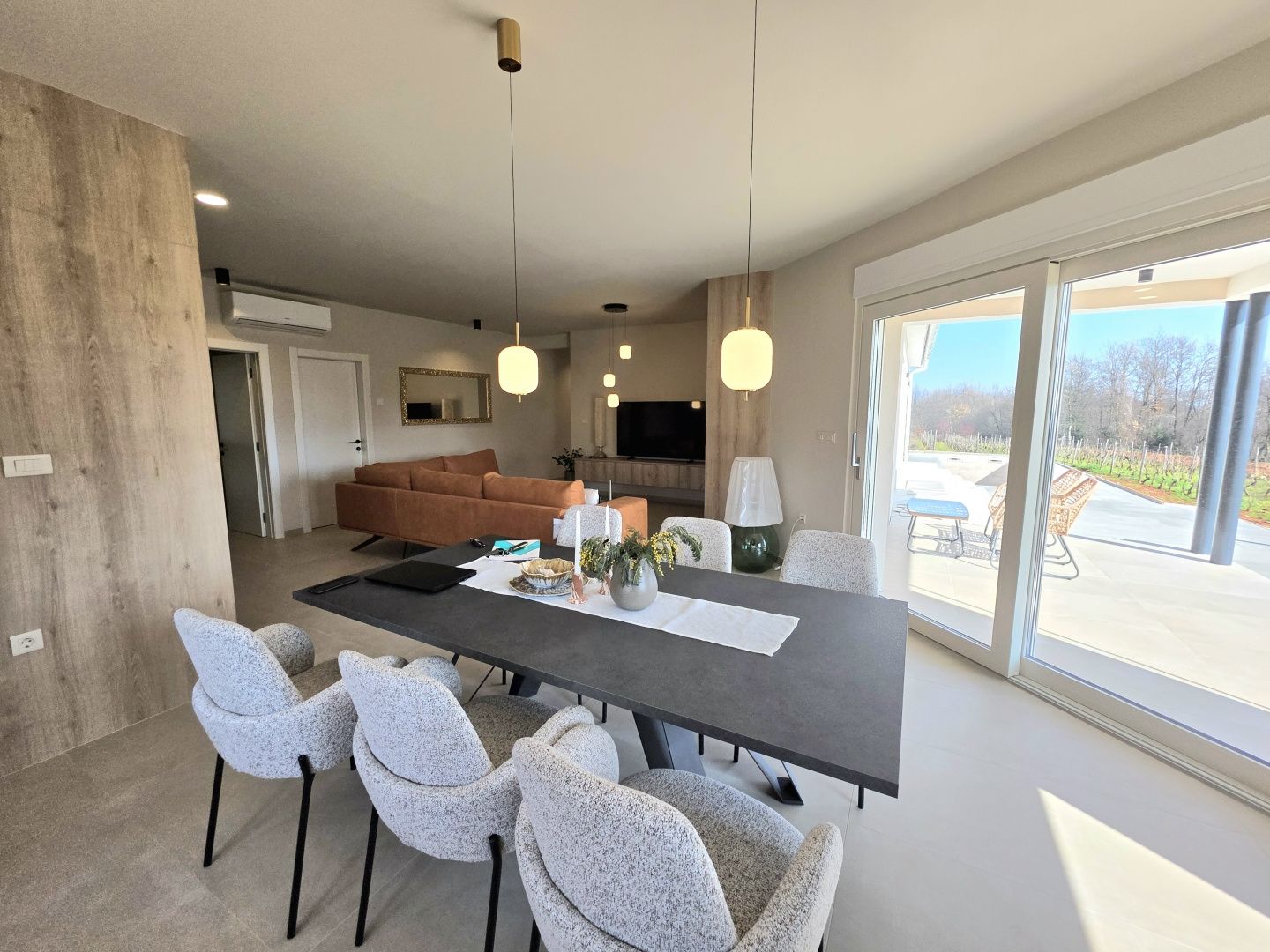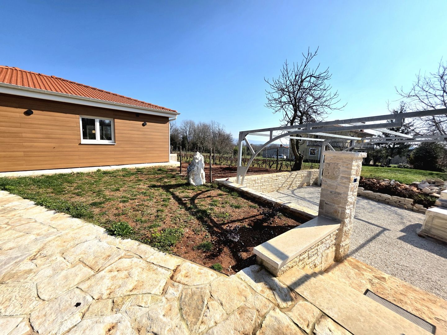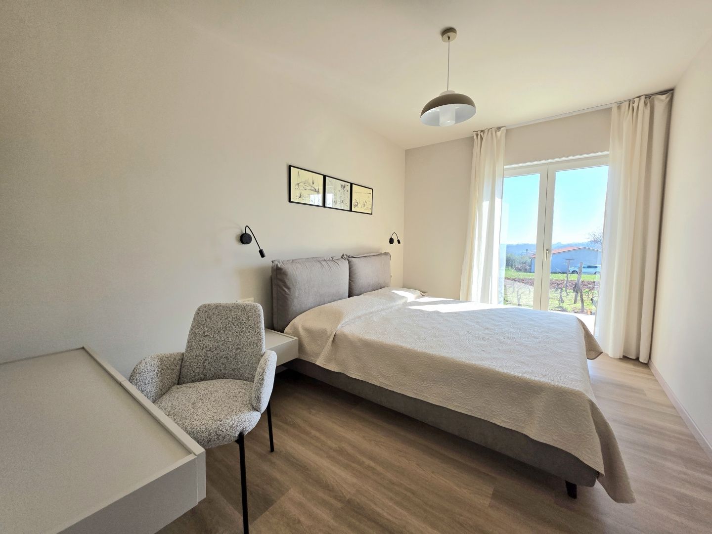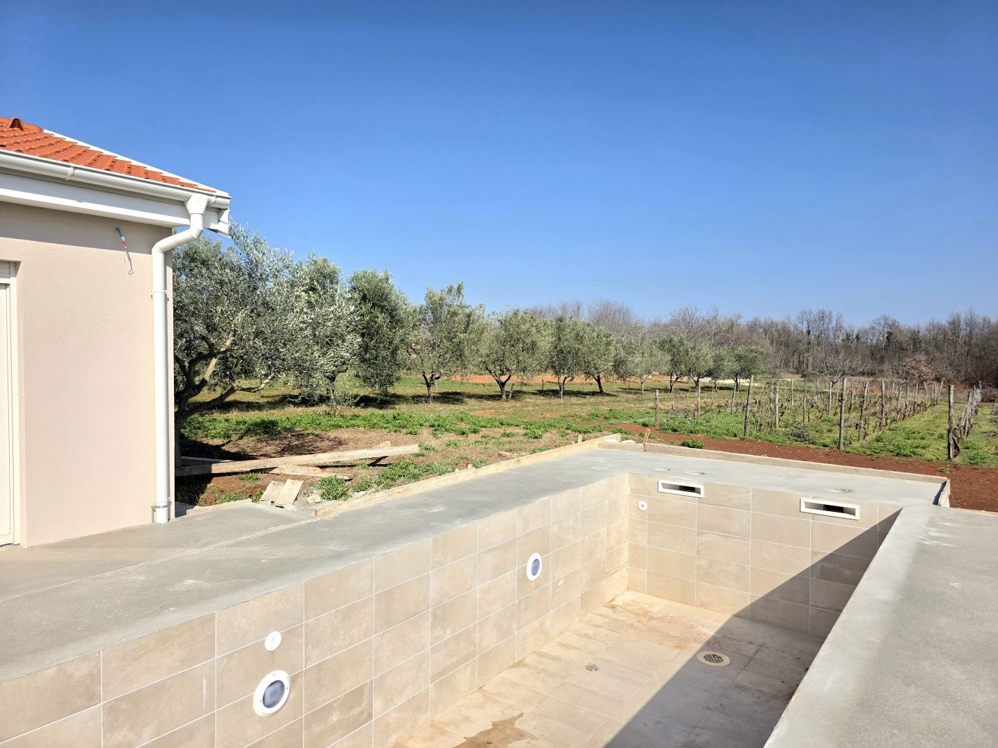 ISTRIEN, BARBAN – Neue Erdgeschossvilla inmitten von Weinbergen, Privatsphäre, Eleganz und absolute Ruhe zur Langzeitmiete In einer ruhigen und gepflegten Siedlung nahe Barban, umgeben von Grün und gepflegten Weinbergen, befindet sich diese neue, private Erdgeschossvilla. Sie vereint modernen Luxus mit authentischem istrischem Ambiente. Das 2026 erbaute Anwesen ist ideal für alle, die absolute Privatsphäre, Großzügigkeit und höchste Lebensqualität suchen – ob für das Familienleben oder als exklusive Kapitalanlage. HAUSBESCHREIBUNG – Ein lichtdurchfluteter Raum inmitten der Natur Beim Betreten der Villa öffnet sich ein beeindruckender Wohnbereich im offenen Stil. Ein komfortables Wohnzimmer, eine etwas abgetrennte, moderne und voll ausgestattete Küche mit eigenem Abstellraum sowie ein geräumiges Esszimmer für die ganze Familie bilden ein harmonisches und funktionales Ensemble. Große Glaswände lassen die Grenzen zwischen Innen und Außen verschwimmen und verbinden den Innenraum mit einer überdachten Sommerterrasse, dem Swimmingpool und dem Garten. Der gesamte Wohnbereich ist lichtdurchflutet, und von fast jedem Winkel der Villa bietet sich ein beruhigender Blick auf den gepflegten Weinberg, der das Anwesen umgibt. Neben dem Wohnbereich befinden sich ein Gäste-WC und ein Technik-/Abstellraum. Der Flur vom Wohnbereich führt in einen separaten, intimen Teil der Villa mit vier Schlafzimmern. Zwei Zimmer verfügen über ein eigenes Bad, die anderen beiden teilen sich ein geräumiges Badezimmer. Ein besonderer Vorteil dieser Villa ist der direkte Zugang jedes Schlafzimmers zum angelegten Garten und zum Swimmingpool. So entsteht ein Gefühl von Hotelkomfort und gleichzeitig eine tiefe Verbundenheit mit der Natur. Eines der Zimmer ist derzeit als Spielzimmer eingerichtet, kann aber problemlos an Ihre Bedürfnisse angepasst werden. BESCHREIBUNG DES GARTENS – Der Garten als Erweiterung des Wohnraums Der weitläufige und luftige Garten ist von den gepflegten Weinbergen der Eigentümer umgeben. Dies garantiert ein hohes Maß an Privatsphäre und einen ungestörten Ausblick ohne Befürchtungen zukünftiger Bebauung. Die Zufahrt zum Anwesen erfolgt über eine asphaltierte Straße. Am Eingang befinden sich zwei separate, überdachte Parkplätze. Das Herzstück des Gartens ist ein beeindruckender, 40 m² großer Salzwasserpool, der sich hinter der Villa befindet und maximale Ruhe und Privatsphäre bietet. Angrenzend an den Pool befinden sich eine überdachte Sommerterrasse, eine Außenküche und ein separater Bereich für einen Whirlpool – der perfekte Ort zum geselligen Beisammensein, für sommerliche Abendessen und zum Entspannen unter freiem Himmel. Der restliche Garten ist im mediterranen Stil mit sorgfältig ausgewählten Pflanzen und Bäumen gestaltet, während Rasenflächen ausreichend Platz zum Spielen für Kinder und zum Verweilen für Haustiere bieten. ZUSÄTZLICHE INFORMATIONEN: * Die Villa wird komplett möbliert vermietet, inklusive aller Möbel und Geräte. Die Inneneinrichtung besteht aus Designermöbeln, die speziell für dieses Anwesen angefertigt wurden und eine einzigartige Ästhetik mit maximaler Funktionalität vereinen. * Zu den technischen Annehmlichkeiten gehören Fußbodenheizung in allen Räumen sowie eine Klimaanlage zum Heizen und Kühlen in jedem Zimmer. Diese Villa ist die perfekte Wahl für alle, die modernen Luxus in authentisch istrischer Umgebung suchen, umgeben von Natur und dennoch in unmittelbarer Nähe zu allen Annehmlichkeiten des täglichen Bedarfs. Für weitere Fragen, Informationen oder zur Vereinbarung eines Besichtigungstermins kontaktieren Sie uns bitte jederzeit.