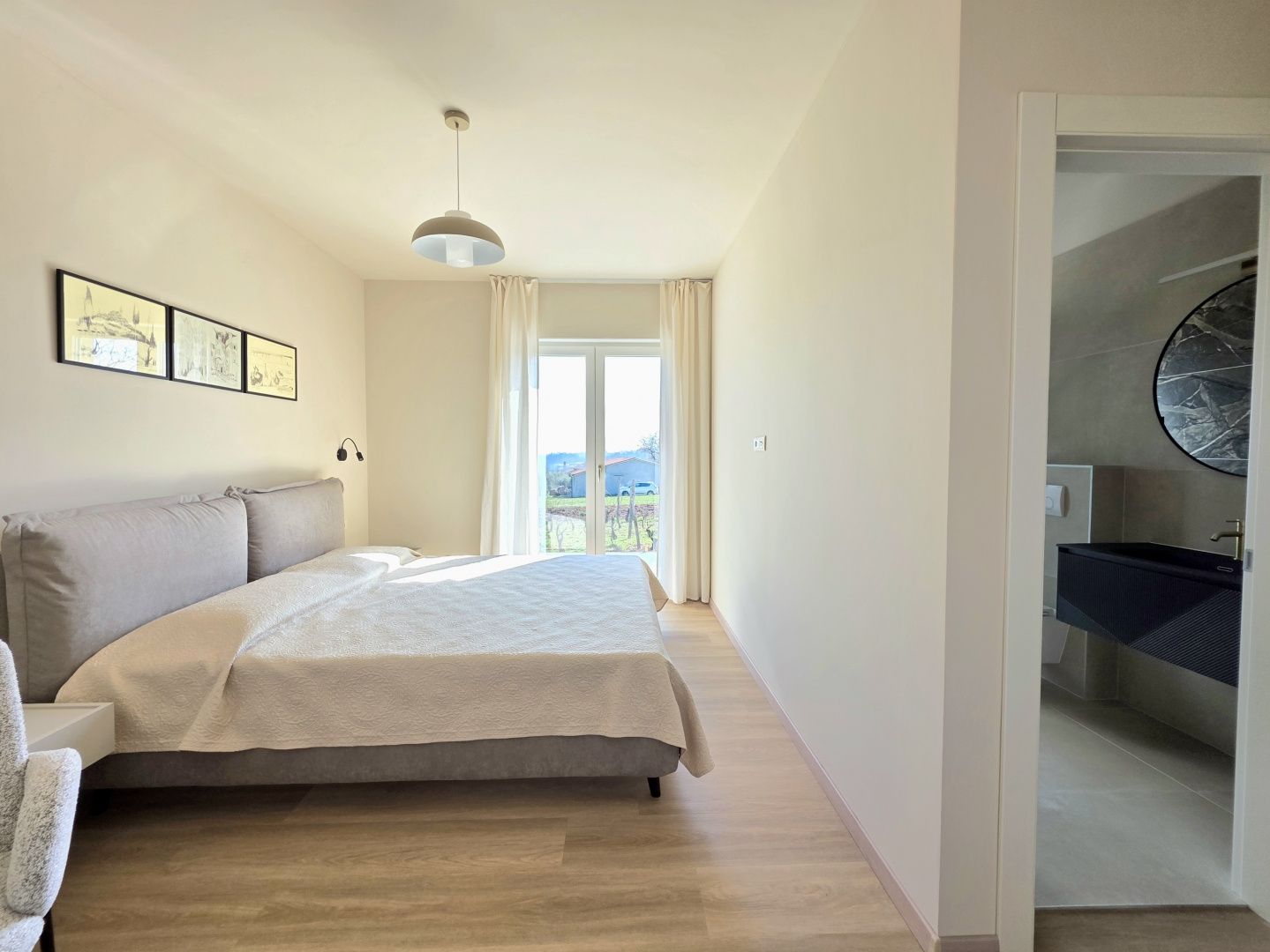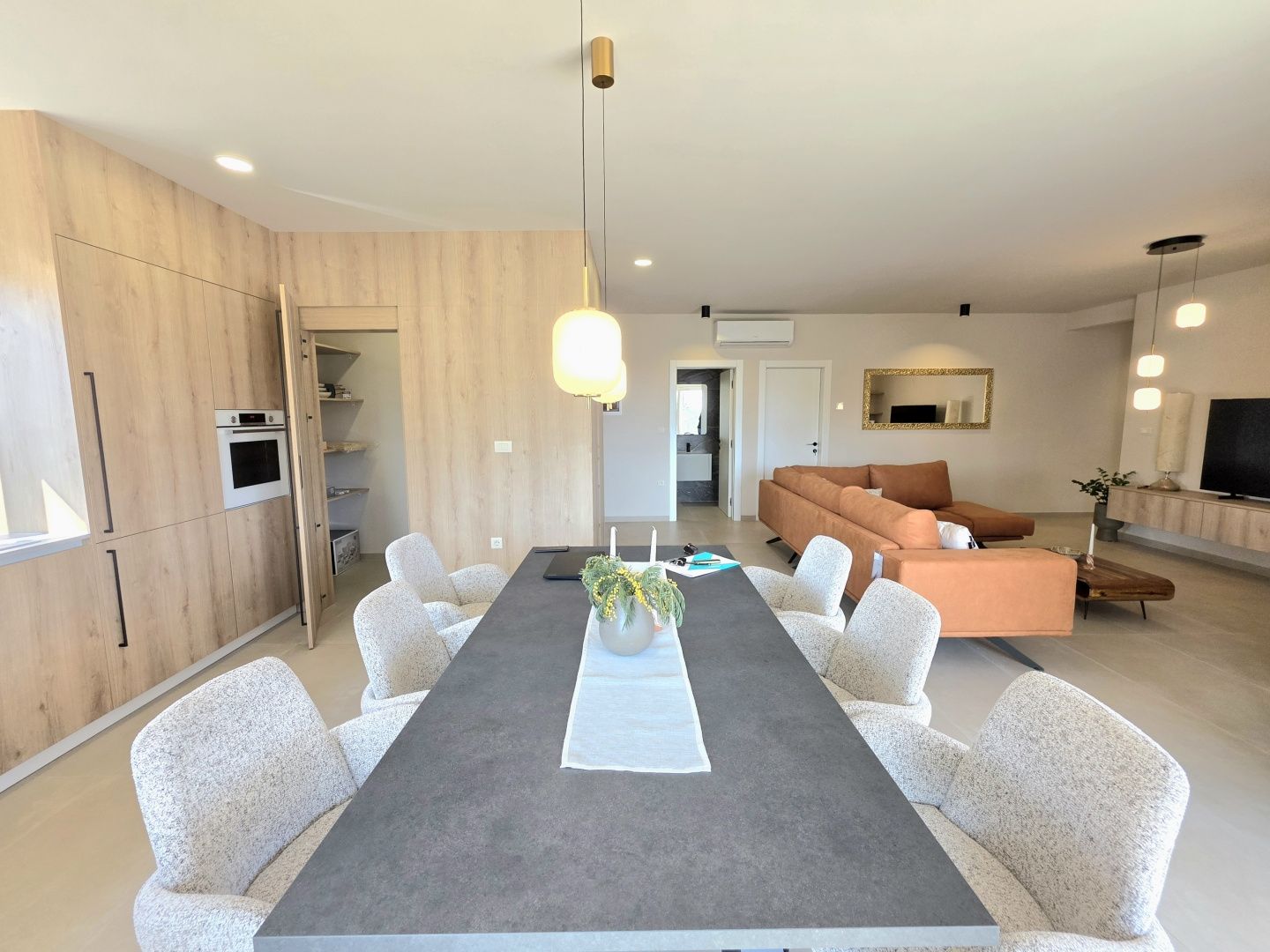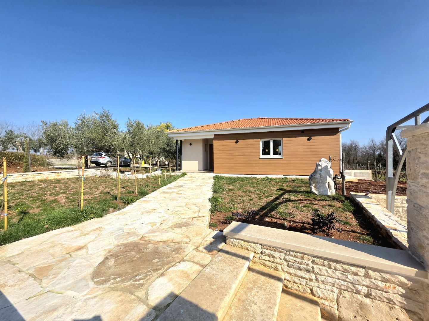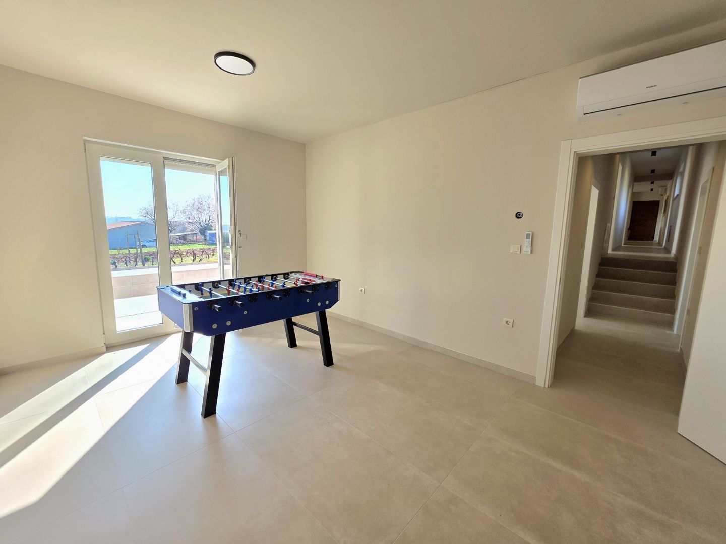 ISTRIEN, BARBAN – Neue Erdgeschossvilla inmitten von Weinbergen, Privatsphäre, Eleganz und absolute Ruhe zur Langzeitmiete In einer ruhigen und gepflegten Siedlung nahe Barban, umgeben von Grün und gepflegten Weinbergen, befindet sich diese neue, private Erdgeschossvilla. Sie vereint modernen Luxus mit authentischem istrischem Ambiente. Das 2026 erbaute Anwesen ist ideal für alle, die absolute Privatsphäre, Großzügigkeit und höchste Lebensqualität suchen – ob für das Familienleben oder als exklusive Kapitalanlage. HAUSBESCHREIBUNG – Ein lichtdurchfluteter Raum inmitten der Natur Beim Betreten der Villa öffnet sich ein beeindruckender Wohnbereich im offenen Stil. Ein komfortables Wohnzimmer, eine etwas abgetrennte, moderne und voll ausgestattete Küche mit eigenem Abstellraum sowie ein geräumiges Esszimmer für die ganze Familie bilden ein harmonisches und funktionales Ensemble. Große Glaswände lassen die Grenzen zwischen Innen und Außen verschwimmen und verbinden den Innenraum mit einer überdachten Sommerterrasse, dem Swimmingpool und dem Garten. Der gesamte Wohnbereich ist lichtdurchflutet, und von fast jedem Winkel der Villa bietet sich ein beruhigender Blick auf den gepflegten Weinberg, der das Anwesen umgibt. Neben dem Wohnbereich befinden sich ein Gäste-WC und ein Technik-/Abstellraum. Der Flur vom Wohnbereich führt in einen separaten, intimen Teil der Villa mit vier Schlafzimmern. Zwei Zimmer verfügen über ein eigenes Bad, die anderen beiden teilen sich ein geräumiges Badezimmer. Ein besonderer Vorteil dieser Villa ist der direkte Zugang jedes Schlafzimmers zum angelegten Garten und zum Swimmingpool. So entsteht ein Gefühl von Hotelkomfort und gleichzeitig eine tiefe Verbundenheit mit der Natur. Eines der Zimmer ist derzeit als Spielzimmer eingerichtet, kann aber problemlos an Ihre Bedürfnisse angepasst werden. BESCHREIBUNG DES GARTENS – Der Garten als Erweiterung des Wohnraums Der weitläufige und luftige Garten ist von den gepflegten Weinbergen der Eigentümer umgeben. Dies garantiert ein hohes Maß an Privatsphäre und einen ungestörten Ausblick ohne Befürchtungen zukünftiger Bebauung. Die Zufahrt zum Anwesen erfolgt über eine asphaltierte Straße. Am Eingang befinden sich zwei separate, überdachte Parkplätze. Das Herzstück des Gartens ist ein beeindruckender, 40 m² großer Salzwasserpool, der sich hinter der Villa befindet und maximale Ruhe und Privatsphäre bietet. Angrenzend an den Pool befinden sich eine überdachte Sommerterrasse, eine Außenküche und ein separater Bereich für einen Whirlpool – der perfekte Ort zum geselligen Beisammensein, für sommerliche Abendessen und zum Entspannen unter freiem Himmel. Der restliche Garten ist im mediterranen Stil mit sorgfältig ausgewählten Pflanzen und Bäumen gestaltet, während Rasenflächen ausreichend Platz zum Spielen für Kinder und zum Verweilen für Haustiere bieten. ZUSÄTZLICHE INFORMATIONEN: * Die Villa wird komplett möbliert vermietet, inklusive aller Möbel und Geräte. Die Inneneinrichtung besteht aus Designermöbeln, die speziell für dieses Anwesen angefertigt wurden und eine einzigartige Ästhetik mit maximaler Funktionalität vereinen. * Zu den technischen Annehmlichkeiten gehören Fußbodenheizung in allen Räumen sowie eine Klimaanlage zum Heizen und Kühlen in jedem Zimmer. Diese Villa ist die perfekte Wahl für alle, die modernen Luxus in authentisch istrischer Umgebung suchen, umgeben von Natur und dennoch in unmittelbarer Nähe zu allen Annehmlichkeiten des täglichen Bedarfs. Für weitere Fragen, Informationen oder zur Vereinbarung eines Besichtigungstermins kontaktieren Sie uns bitte jederzeit.