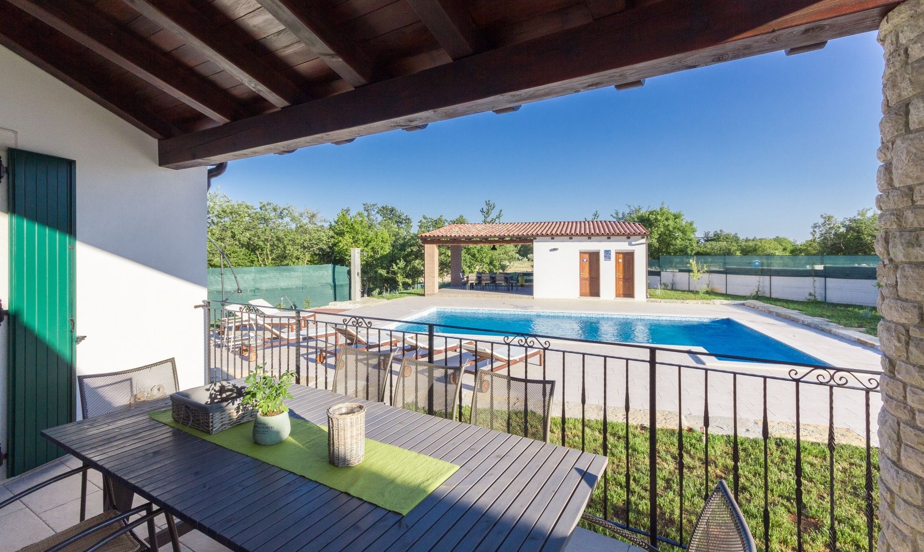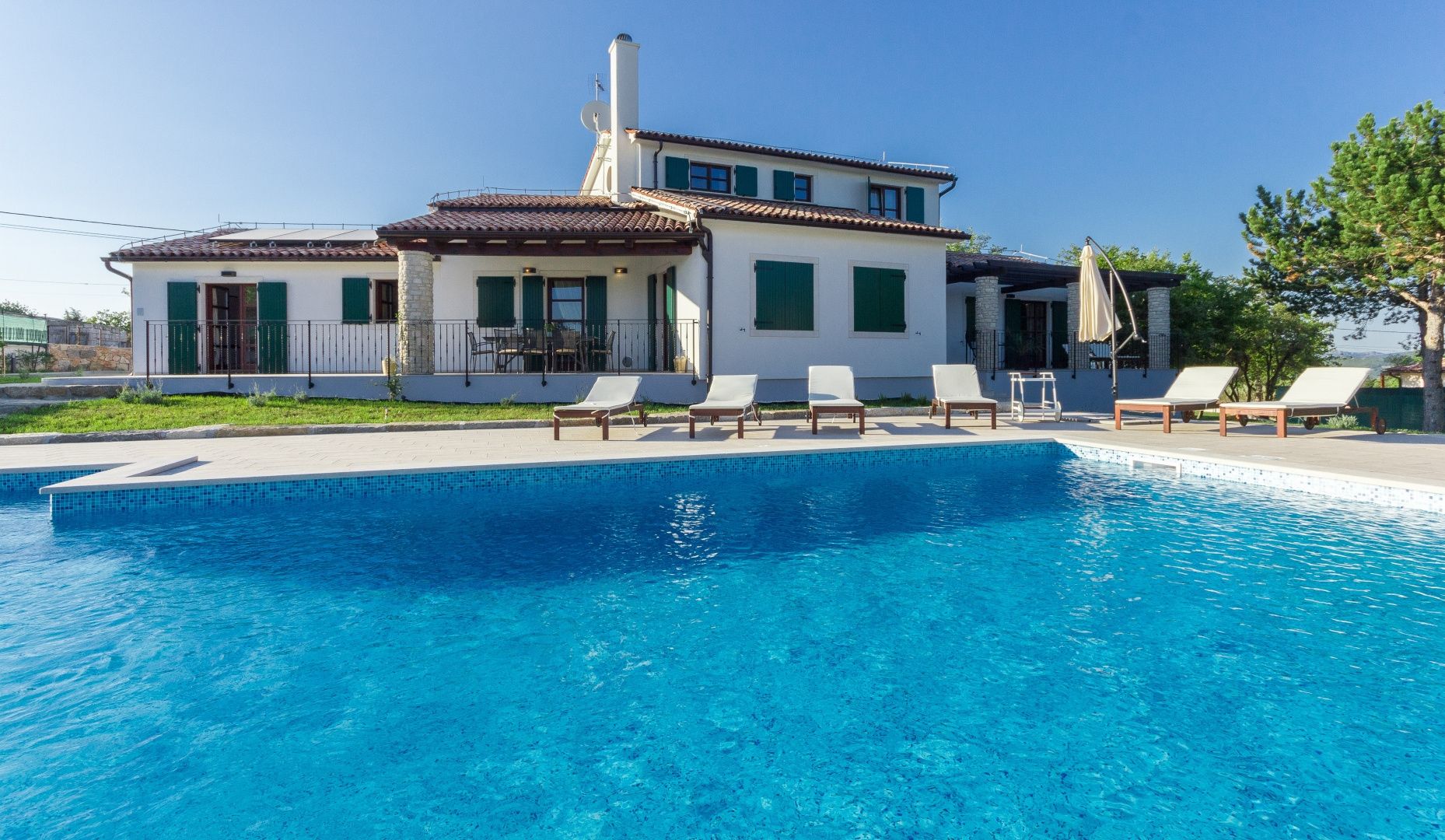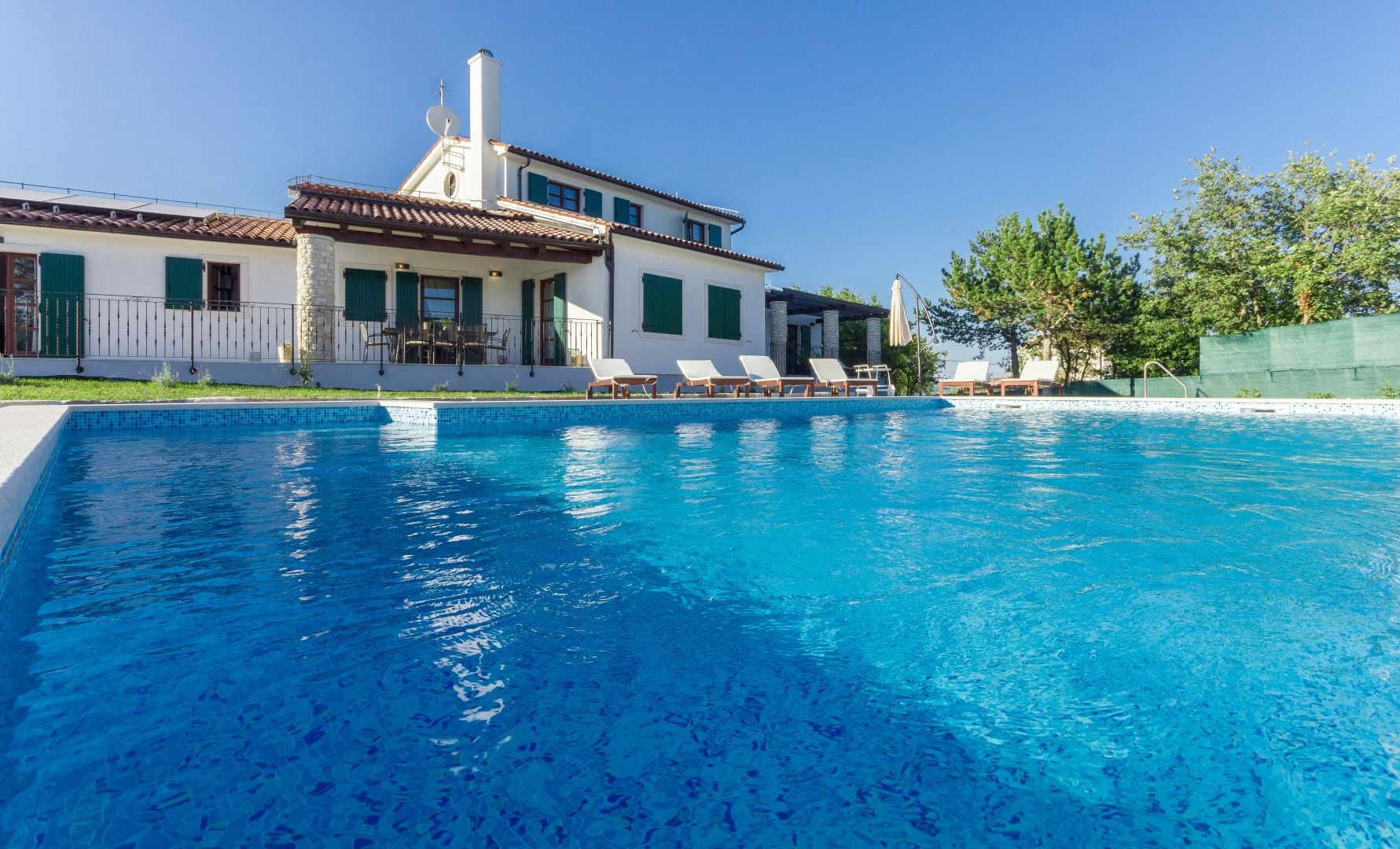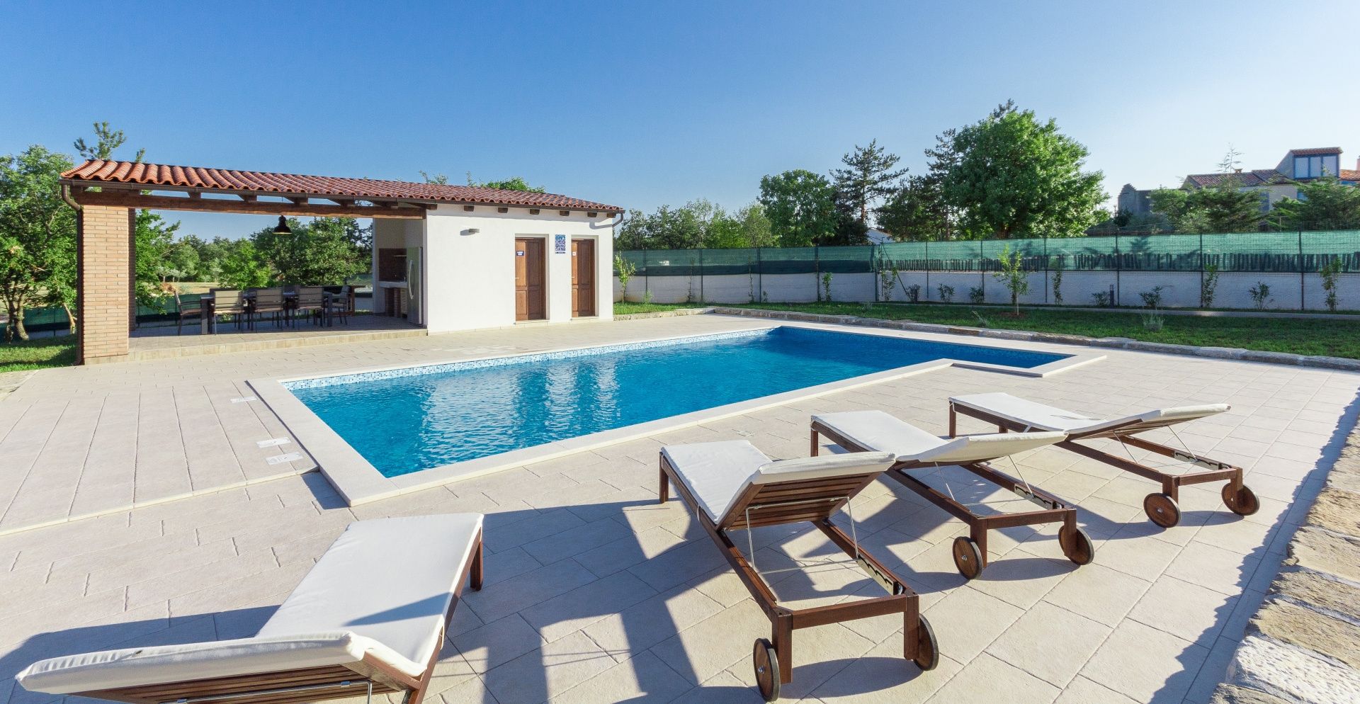 ISTRIEN, BARBAN – Wunderschönes Steinhaus mit Pool Im Angebot von DUX Immobilien präsentieren wir Ihnen ein besonderes Objekt: eine freistehende Steinvilla in traumhafter Lage. Diese Villa bietet Ihnen 220 m² Wohnfläche, einen herrlichen Blick auf die Učka und ein 1900 m² großes Grundstück! Die perfekte Verbindung istrischer Tradition und Moderne mit hohen Decken und viel Tageslicht sind nur einige der Merkmale dieser wunderschönen Villa. AUFTEILUNG: Im Erdgeschoss befinden sich ein überdachter Eingangsbereich, ein Flur, ein offener Wohnbereich mit einem schönen Kaminofen, eine Küche mit Essbereich, zwei Schlafzimmer mit jeweils eigenem Bad und Flur, ein weiteres Badezimmer, zwei Terrassen und ein Technikraum (Heizraum). Im Obergeschoss befinden sich zwei weitere Schlafzimmer mit jeweils eigenem Bad. AUSSENBEREICH: Im großzügigen Garten befinden sich ein 5 x 10 m großer Swimmingpool, eine Sommerküche, eine Liegewiese, ein Hauswirtschaftsraum und eine Außentoilette. Für Heizung und Kühlung sorgt eine Wärmepumpe mit Zentralheizung. In fast allen Räumen sind Klimaanlagen installiert. Auf dem Dach befinden sich außerdem Solarpaneele. Für weitere Informationen und zur Vereinbarung eines Besichtigungstermins kontaktieren Sie uns!