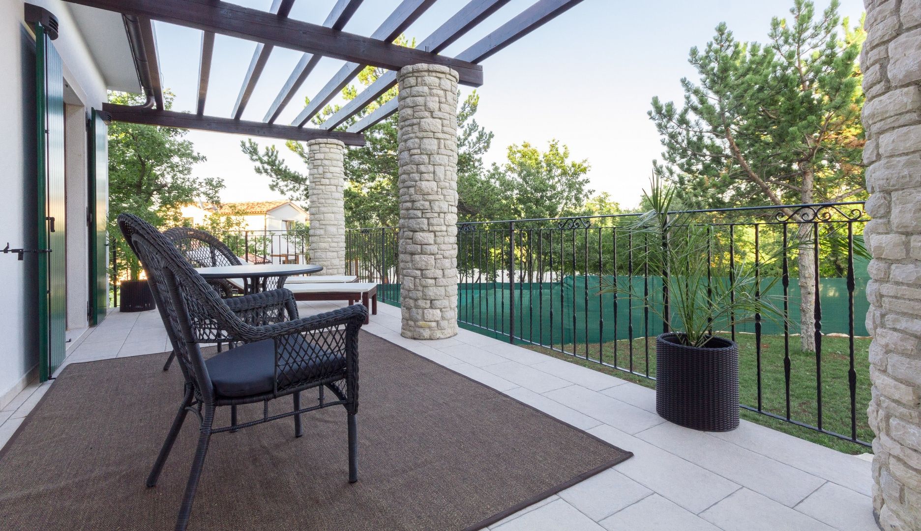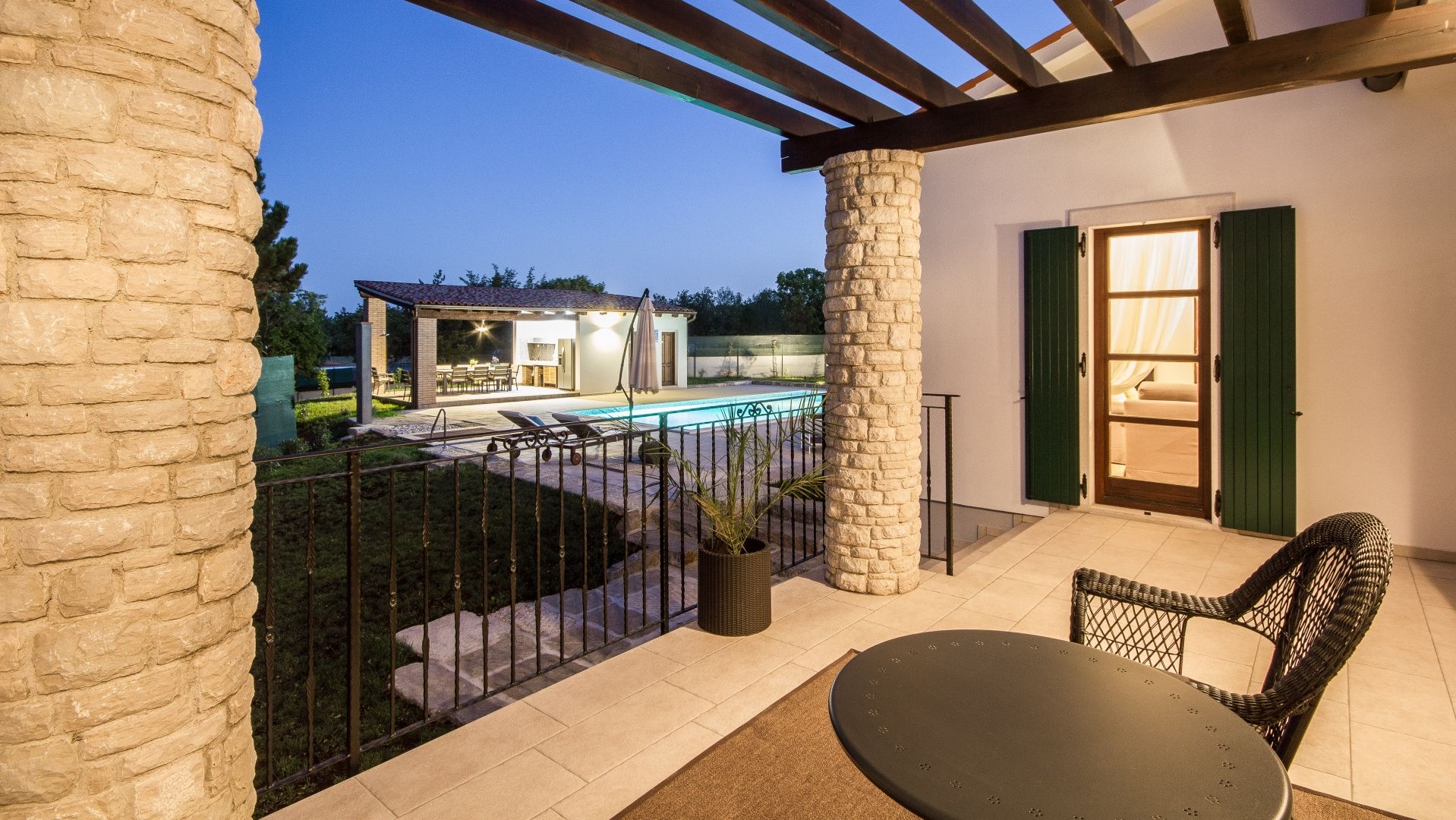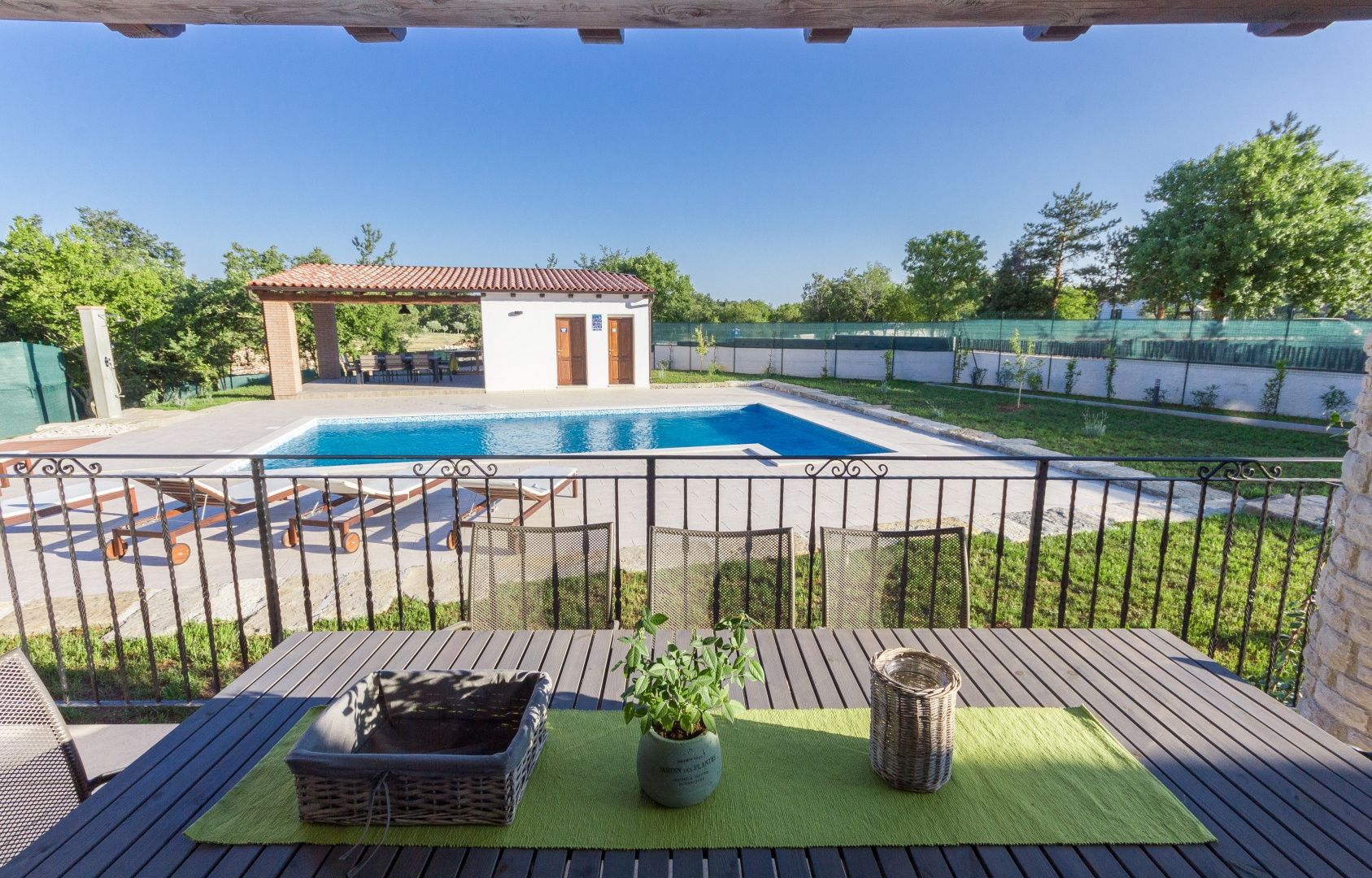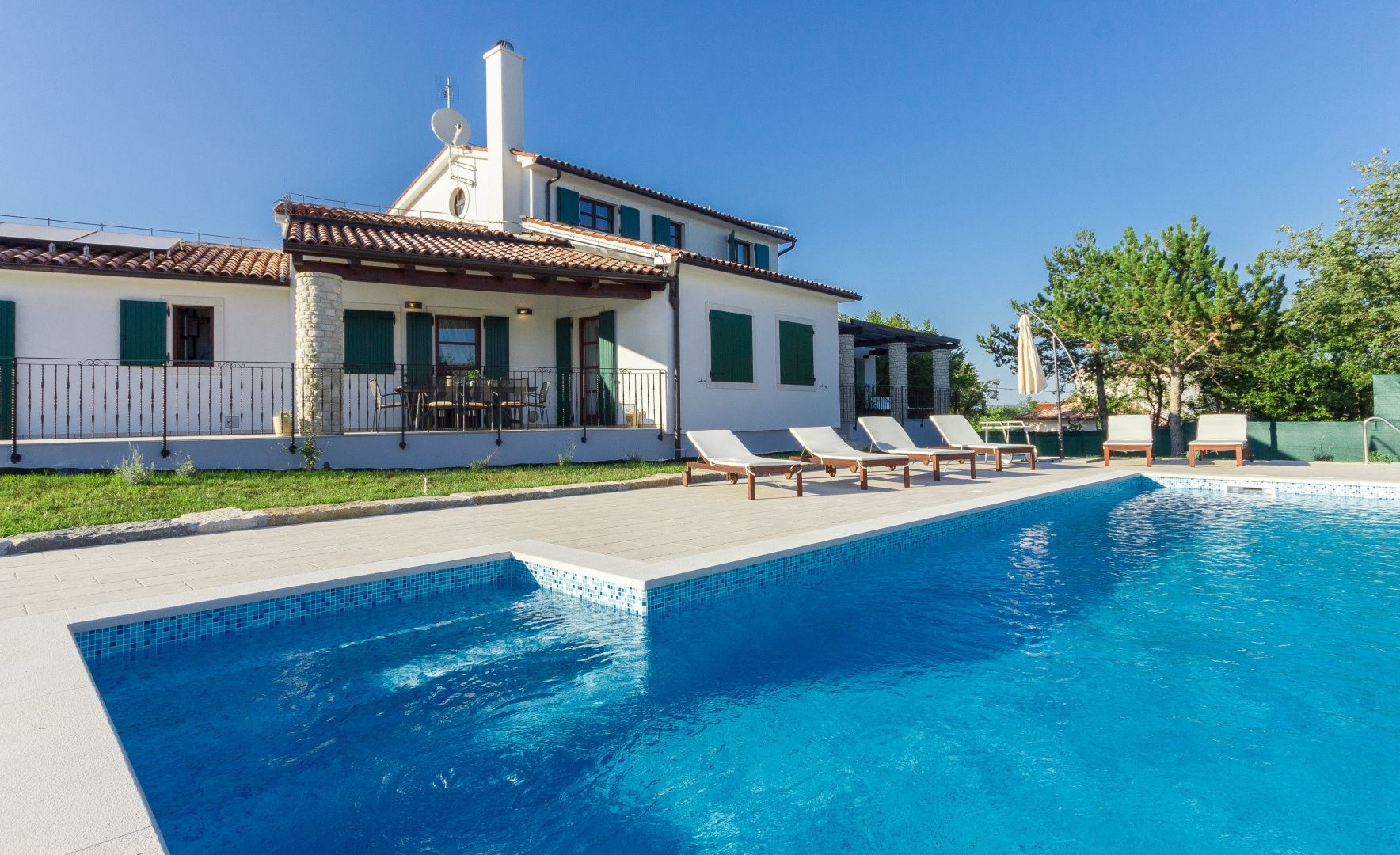 ISTRIEN, BARBAN – Wunderschönes Steinhaus mit Pool Im Angebot von DUX Immobilien präsentieren wir Ihnen ein besonderes Objekt: eine freistehende Steinvilla in traumhafter Lage. Diese Villa bietet Ihnen 220 m² Wohnfläche, einen herrlichen Blick auf die Učka und ein 1900 m² großes Grundstück! Die perfekte Verbindung istrischer Tradition und Moderne mit hohen Decken und viel Tageslicht sind nur einige der Merkmale dieser wunderschönen Villa. AUFTEILUNG: Im Erdgeschoss befinden sich ein überdachter Eingangsbereich, ein Flur, ein offener Wohnbereich mit einem schönen Kaminofen, eine Küche mit Essbereich, zwei Schlafzimmer mit jeweils eigenem Bad und Flur, ein weiteres Badezimmer, zwei Terrassen und ein Technikraum (Heizraum). Im Obergeschoss befinden sich zwei weitere Schlafzimmer mit jeweils eigenem Bad. AUSSENBEREICH: Im großzügigen Garten befinden sich ein 5 x 10 m großer Swimmingpool, eine Sommerküche, eine Liegewiese, ein Hauswirtschaftsraum und eine Außentoilette. Für Heizung und Kühlung sorgt eine Wärmepumpe mit Zentralheizung. In fast allen Räumen sind Klimaanlagen installiert. Auf dem Dach befinden sich außerdem Solarpaneele. Für weitere Informationen und zur Vereinbarung eines Besichtigungstermins kontaktieren Sie uns!