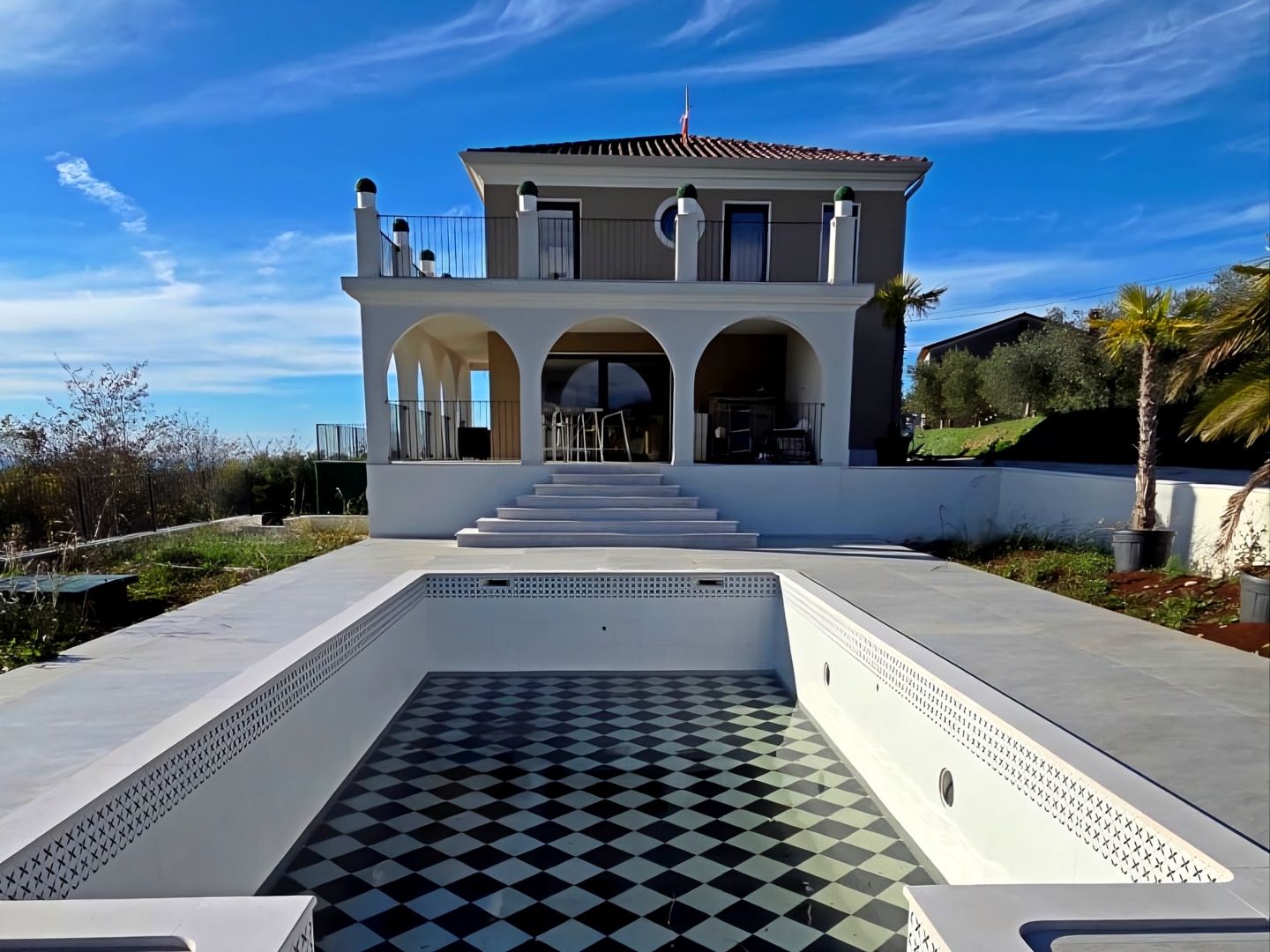 ISTRIEN, BUJE – Exklusive Villa mit Panoramablick Die mittelalterliche Stadt Buje liegt im Nordwesten der istrischen Halbinsel auf einem Hügel und bietet einen wunderschönen Blick auf das Meer, die umliegenden Hügel, Weinberge und Olivenhaine, für die diese Gegend bekannt ist. Die Nähe zum Meer, das mediterrane und milde Kontinentalklima, die lange Tradition in Landwirtschaft, Jagd und Tourismus, die hügelige Landschaft und die unberührte Natur machen die Gegend um Buje zu einer der attraktivsten Regionen Istriens. Inmitten dieser malerischen Landschaft steht eine exklusive Villa mit Panoramablick zum Verkauf. Das Anwesen vereint Raum, Funktionalität, Bauweise und Ästhetik in perfekter Harmonie. Es befindet sich in einer ruhigen Gegend, umgeben von idyllischen istrischen Landschaften, Einfamilienhäusern und Ferienhäusern. Die Villa bietet die ideale Balance zwischen ländlicher Idylle und der Nähe zum Meer sowie städtischen Annehmlichkeiten – fernab vom Trubel und doch in unmittelbarer Nähe zu allen Einrichtungen für einen ganzjährigen Aufenthalt. Neben der erstklassigen Lage, die höchsten Wohnkomfort bietet, zeichnet sich das Anwesen auch durch seine hochwertige Bauweise und Ausstattung aus, die langfristige Zufriedenheit und Lebensqualität garantieren. Die luxuriöse Villa, die Funktionalität und Ästhetik vereint, fügt sich in Form und Farbe harmonisch in die Umgebung ein. Sie erstreckt sich über drei Etagen mit einem funktionalen Grundriss, und der Wohnbereich bietet ein harmonisches, lichtdurchflutetes Ambiente, das mit hochwertigen Möbeln und Geräten Eleganz und Komfort ausstrahlt. Im Untergeschoss befinden sich ein Casino mit Roulettetisch, ein Heimkino, ein Saunaraum, ein Weinkeller, eine Waschküche und ein Technikraum mit Abstellraum. Das Erdgeschoss besteht aus einem offenen Wohnbereich, der Küche, Esszimmer und Wohnzimmer vereint und Zugang zu einer überdachten Terrasse, einem Hauswirtschaftsraum und einem Gäste-WC bietet. Im ersten Obergeschoss befinden sich drei Schlafzimmer, zwei Badezimmer und eine großzügige Terrasse. Der umzäunte Garten ist üppig begrünt, und die perfekte Harmonie des stimmungsvollen Gartens wird durch einen Swimmingpool mit Liegewiese abgerundet. Die Lage, der Komfort und die Ausstattung machen dieses hervorragende Anwesen zur idealen Wahl für ein ruhiges Familienleben sowie zur Investition in die touristische Vermietung.
