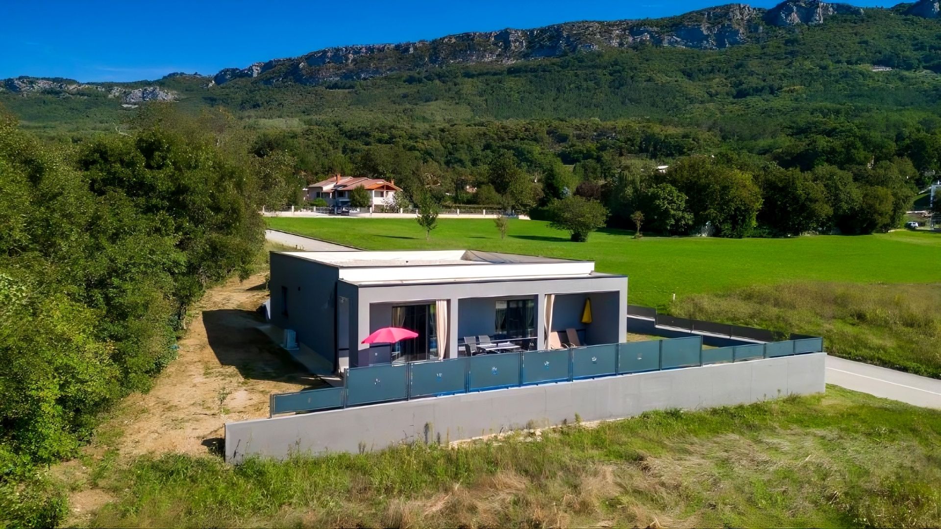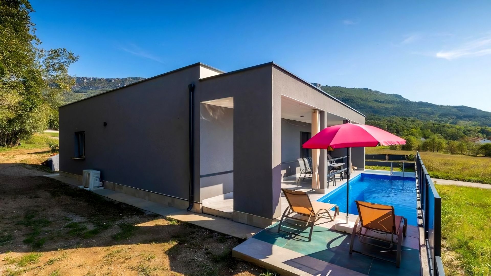 ISTRIEN, BUZET – Haus mit Pool Buzet, ein kleines Städtchen auf einem sanften Hügel, umgeben von mächtigen Steinmauern und bekannt für seine köstliche istrische Küche, ist berühmt als Trüffelstadt. Die Trüffel stammen aus den Wäldern des Mirna-Tals. Eines der wertvollsten Merkmale dieser Region ist zweifellos die unberührte Natur. Wunderschöne Naturlandschaften, die Küste und Gebirge mit ihren zahlreichen Hügeln und dem Mirna-Tal verbinden, bieten einzigartige Ausblicke. Die Region Buzet liegt im nördlichsten Binnenland Istriens, zwischen den drei großen Städten Rijeka, Triest und Pula. Die Höhenlage ist sehr vielfältig und reicht von 10 m bis über 1000 m über dem Meeresspiegel. Buzet und die umliegende Region Buzet umfassen 165 km². Unweit der Stadt Buzet, inmitten von Grün, steht ein Haus mit Pool zum Verkauf. Es liegt in einem ruhigen Dorf, dessen Lage ein authentisches istrisches Dorfleben, Intimität, Erholung vom Alltag und Ruhe bietet, und gleichzeitig die Nähe zu den dynamischen Städten Istriens mit ihren vielfältigen Annehmlichkeiten gewährleistet. Neben der günstigen Lage zeichnet sich das Anwesen durch seine hochwertige Bauweise aus, die langfristige Zufriedenheit und hohe Wohnqualität garantiert. Das Haus fügt sich architektonisch harmonisch in die Umgebung ein und schafft eine gelungene Verbindung von Natur und modernem Design. Es handelt sich um ein eingeschossiges Haus mit einer elegant möblierten und bestens ausgestatteten Wohneinheit. Der offene Wohnbereich vereint Küche, Esszimmer und Wohnzimmer und bietet Zugang zu einer überdachten Terrasse. Außerdem verfügt das Haus über zwei Schlafzimmer, zwei Badezimmer und einen Abstellraum. Der Garten ist stimmungsvoll und gärtnerisch gestaltet, und ein Swimmingpool mit Liegewiese sorgt für vollkommene Harmonie. Die exzellente Lage und die durchdachte Raumaufteilung im Innen- und Außenbereich bieten ideale Voraussetzungen für ein komfortables Familienleben oder als Investition in die touristische Vermietung.