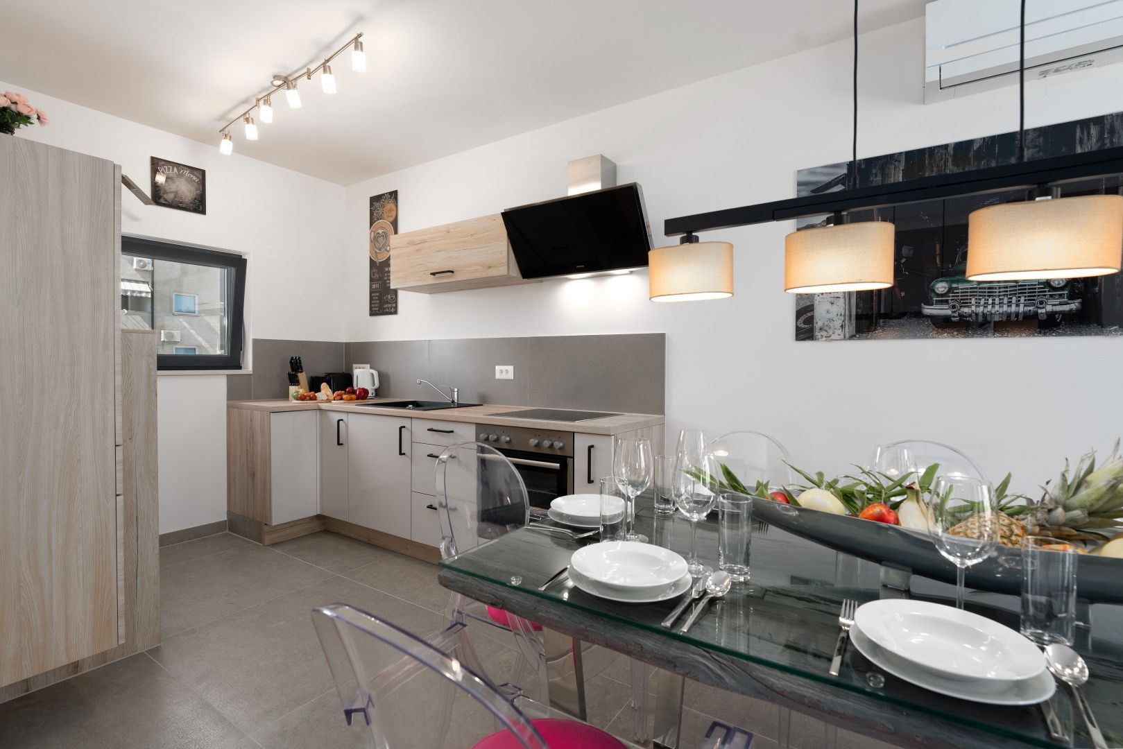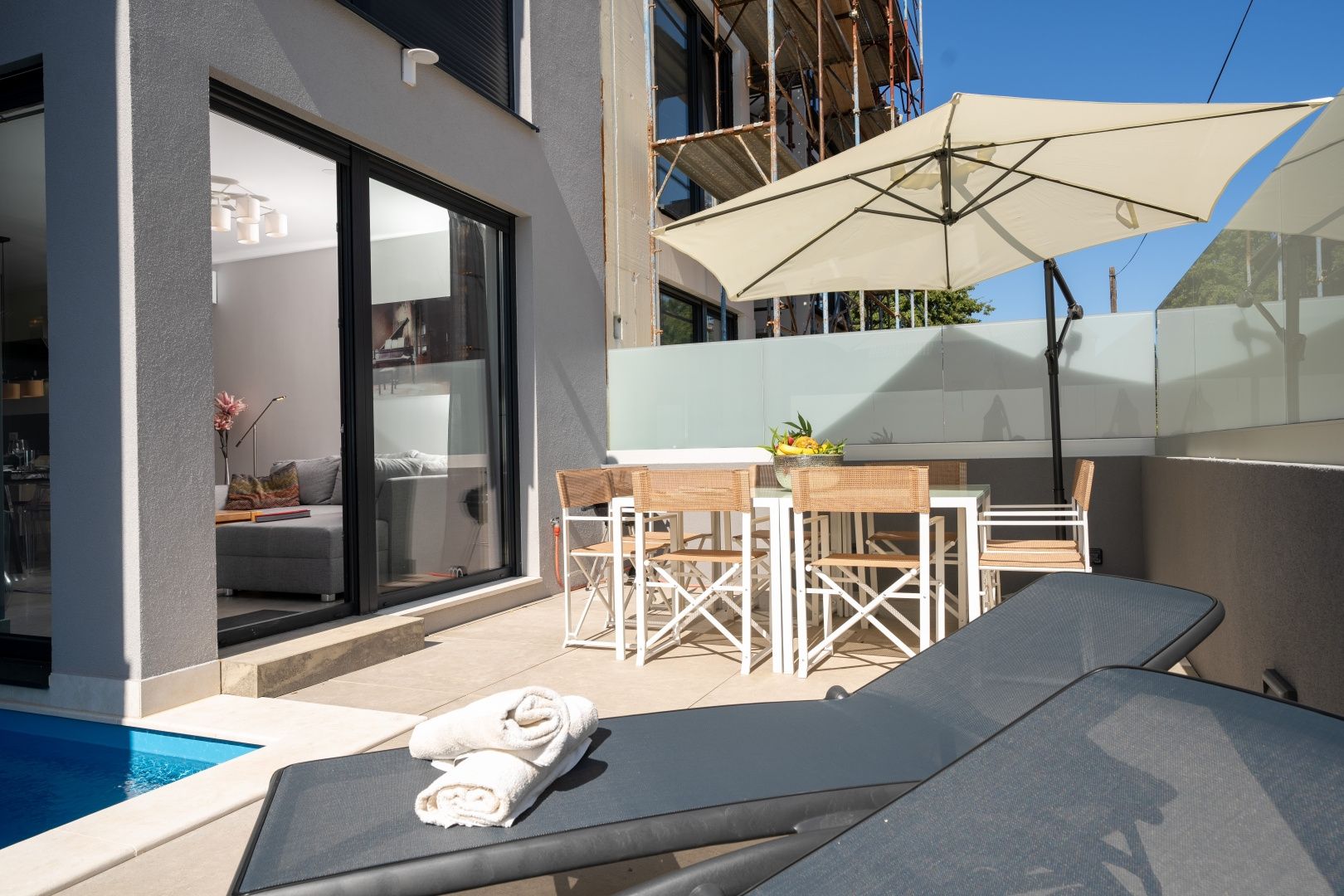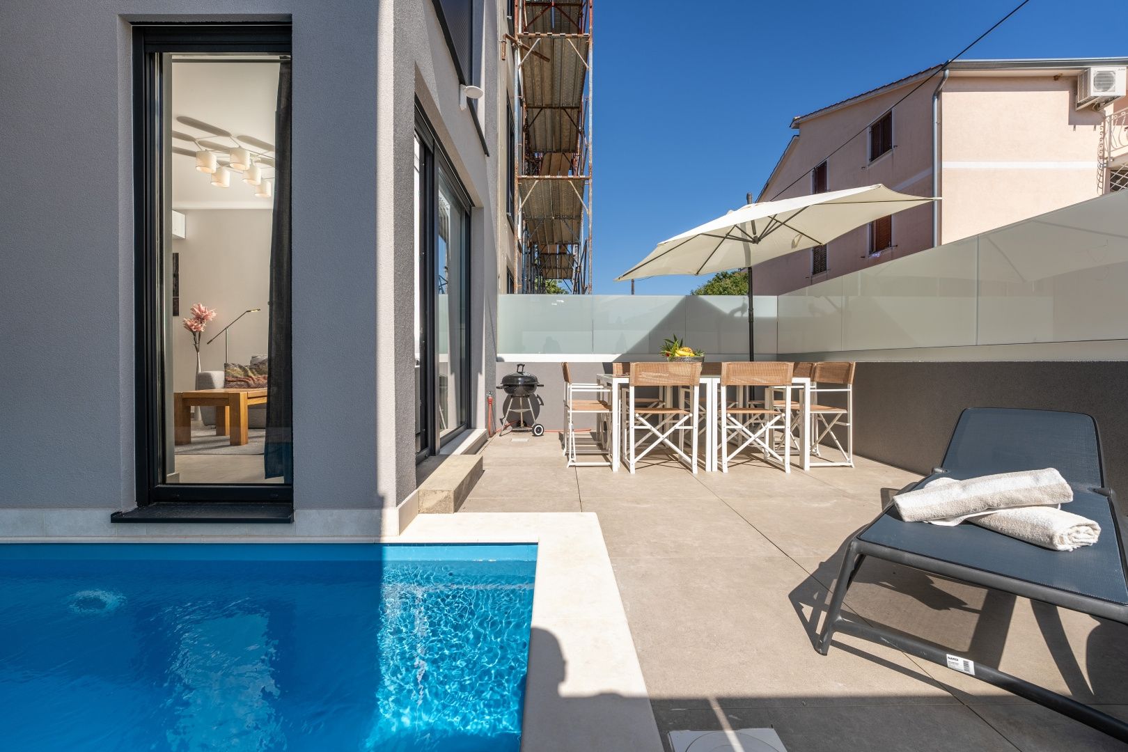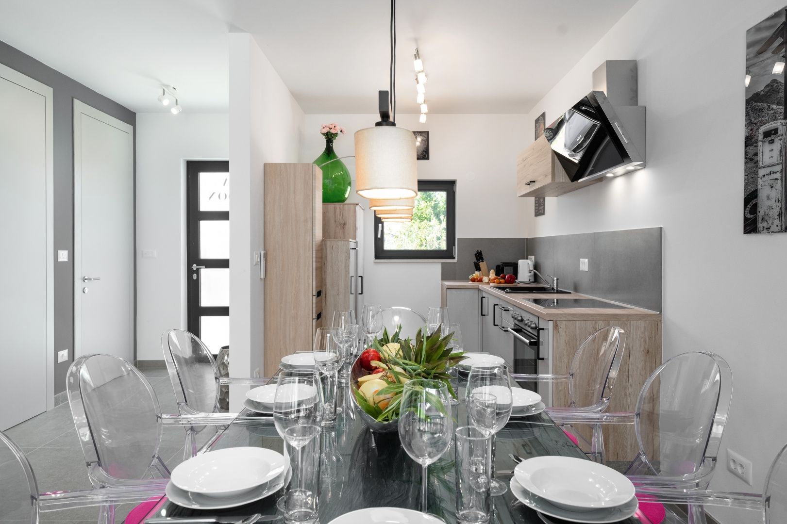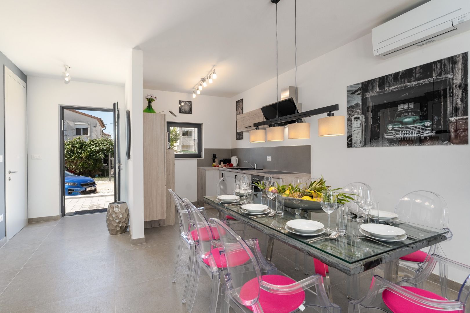 ISTRIEN, FUNTANA – Eine luxuriöse Oase am Meer, eine perfekte Investition Funtana liegt an der Westküste Istriens und ist ein charmantes und malerisches Reiseziel, bekannt für sein kristallklares Meer, die authentische istrische Küche, die Weinstraßen und zahlreiche Rad- und Wanderwege. Diese Oase am Meer bietet die perfekte Kombination aus Entspannung und Aktivurlaub und strahlt gleichzeitig Ruhe und mediterranen Charme aus, der Besucher aus aller Welt verzaubert. In Funtana, in attraktiver Lage, nur 700 Meter vom Meer entfernt, steht ein elegantes, modern eingerichtetes Reihenhaus zum Verkauf, das höchsten Komfort und mediterranen Lebensstil bietet. Dieses beeindruckende Haus mit einer Gesamtfläche von 114 m² erstreckt sich über drei Etagen und wurde sorgfältig entworfen, um den Anforderungen eines modernen Lebensstils gerecht zu werden. Im Erdgeschoss befindet sich ein offener und luftiger Wohnbereich mit einer modernen Küche, einem gemütlichen Wohnzimmer, einem eleganten Esszimmer und einem praktischen Gäste-WC. Im ersten Stock befinden sich zwei geräumige und geschmackvoll eingerichtete Schlafzimmer und ein modernes Badezimmer. Die dritte Etage verfügt über zwei weitere Schlafzimmer, jedes mit eigenem Bad – ideal für Familie oder Gäste. Die Inneneinrichtung strahlt Stil, Raffinesse und Funktionalität aus. Das Haus wird komplett möbliert mit sorgfältig ausgewählten Möbeln und allen Details bezugsfertig verkauft. Zum Haus gehören außerdem zwei private Parkplätze und ein wunderschöner privater Pool, ideal zum Erfrischen in den Sommermonaten oder zum Genießen von Sonnenuntergängen bei einem Glas Wein. Ein besonderer Vorteil dieses eleganten Hauses ist, dass es bereits von einem etablierten Unternehmen touristisch vermietet wird. Dies ermöglicht es dem neuen Eigentümer, die Immobilie sofort weiter zu vermieten und Einnahmen zu erzielen oder sie ausschließlich für den eigenen Bedarf und Genuss zu nutzen. Dieses Haus bietet die ideale Kombination aus Top-Lage, luxuriöser Ausstattung und Investitionspotenzial. In einer der begehrtesten Gegenden Istriens, nur wenige Schritte vom Meer entfernt, bietet es den perfekten Ort zum Entspannen, Wohnen oder zur profitablen touristischen Vermietung. Verpassen Sie nicht die Gelegenheit, Eigentümer dieser außergewöhnlichen Immobilie zu werden, die Komfort, Stil und mediterranen Lebensstil vereint. Kontaktieren Sie uns noch heute und vereinbaren Sie Ihren Besichtigungstermin!