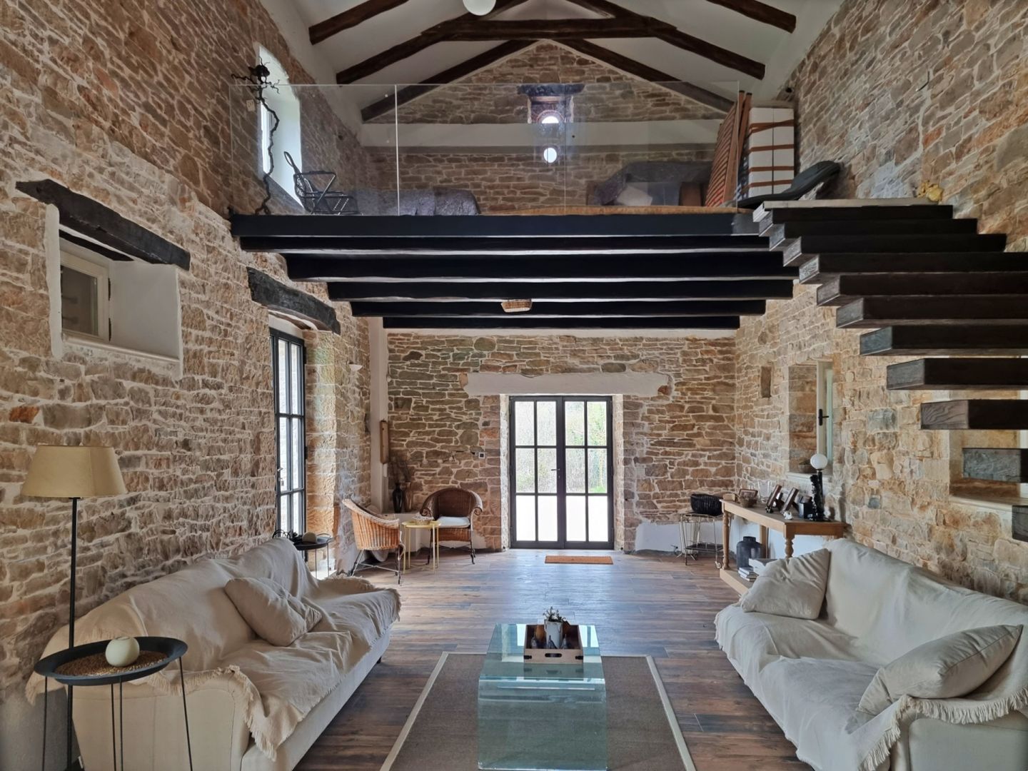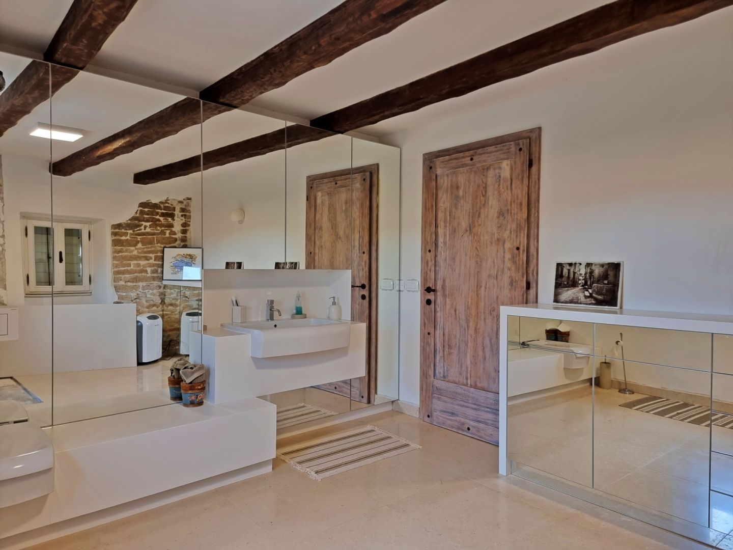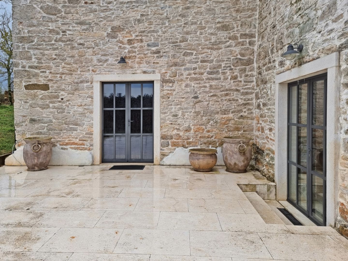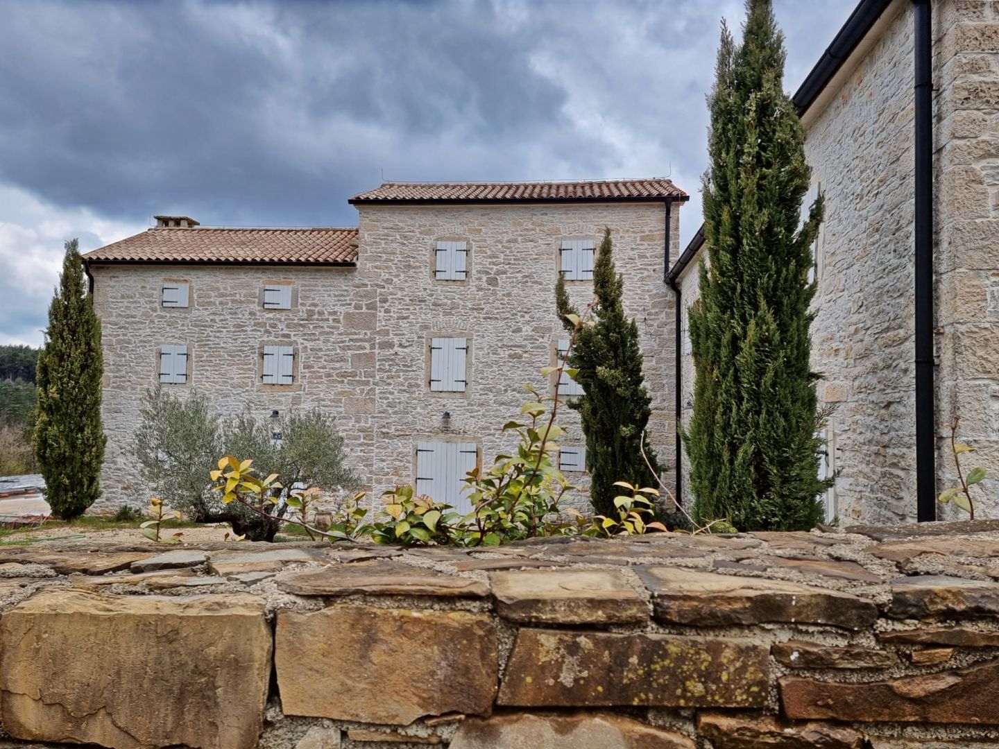 ISTRIEN, GROŽNJAN – Luxuriöse Stein-Stancija Die mittelalterliche Stadt Grožnjan liegt auf einem Hügel, umgeben von Olivenhainen und Weinbergen. Einst eine bedeutende venezianische Festung und regionales Zentrum, ist Grožnjan heute eine Künstlerstadt und eines der begehrtesten Reiseziele für einen kreativen Urlaub. Wie in anderen Städten Istriens verschmelzen hier mediterranes und kontinentales Klima und schaffen so äußerst günstige Lebensbedingungen. Die Stadt besteht aus elf Ortsteilen. In der Nähe dieser romanischen Stadt, inmitten einer unglaublich friedlichen und ruhigen Umgebung, umgeben von Olivenhainen und Weinbergen, steht eine luxuriöse Stein-Stancija zum Verkauf. Obwohl sie sich in ländlicher Umgebung befindet, bietet sie absoluten Luxus und absolute Privatsphäre. Die altehrwürdige Steinarchitektur erstrahlt in neuem Glanz und verbindet auf zeitlose Weise Tradition und höchsten Luxus. Das Anwesen erstreckt sich über 15.304 Quadratmeter unberührter Natur. Umgeben von einer Steinmauer, befindet sich innerhalb dieser Mauer eine renovierte Steinvilla mit 232 m² Wohnfläche, ein Neubau mit Wellnessbereich und Mediathek inklusive Kinosaal, der über eine überdachte Terrasse mit Sommerküche und Weinkeller (insgesamt 279 m²) verbunden ist, sowie ein 88 m² großer Swimmingpool mit Sonnenterrasse. Das elegante Haupthaus wurde 2020 komplett renoviert und mit hochwertigen Möbeln ausgestattet. Auch die alten Balken, die das Haus prägen, wurden restauriert und das alte Mauerwerk neu interpretiert. Das Interieur dieses Schmuckstücks erstreckt sich über drei Etagen und vereint gekonnt traditionellen istrischen Stil mit modernem Design, was dem Anwesen eine besondere Attraktivität verleiht. Es wurde darauf geachtet, die Räume nicht mit Möbeln und Details zu überladen, um traditionelle Elemente wie Holzbalken an der Decke, antike und rustikale Stücke sowie Stein hervorzuheben. Das Erdgeschoss umfasst ein beeindruckendes Wohnzimmer mit Galerie und offenem Kamin, eine Küche mit Essbereich, eine Diele und ein Gäste-WC. Im ersten Obergeschoss befinden sich ein Flur, ein geräumiges Schlafzimmer und ein großzügiges Badezimmer. Das zweite Obergeschoss besteht aus einer Galerie und einem geräumigen Schlafzimmer mit Bad. Der restliche Teil des Gebäudes muss gemäß dem bereits erstellten Konzeptentwurf renoviert und fertiggestellt werden. Diese außergewöhnliche Immobilie ist ein wahres Juwel, das den Charme vergangener Zeiten, die Ruhe und den ländlichen Charakter der Umgebung, den Komfort des istrischen Lebens und modernen Luxus vereint. Sie bietet eine hervorragende Investitionsmöglichkeit sowie die Chance auf ein idyllisches Familienleben.