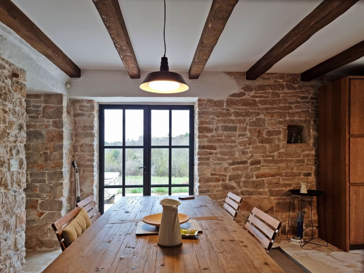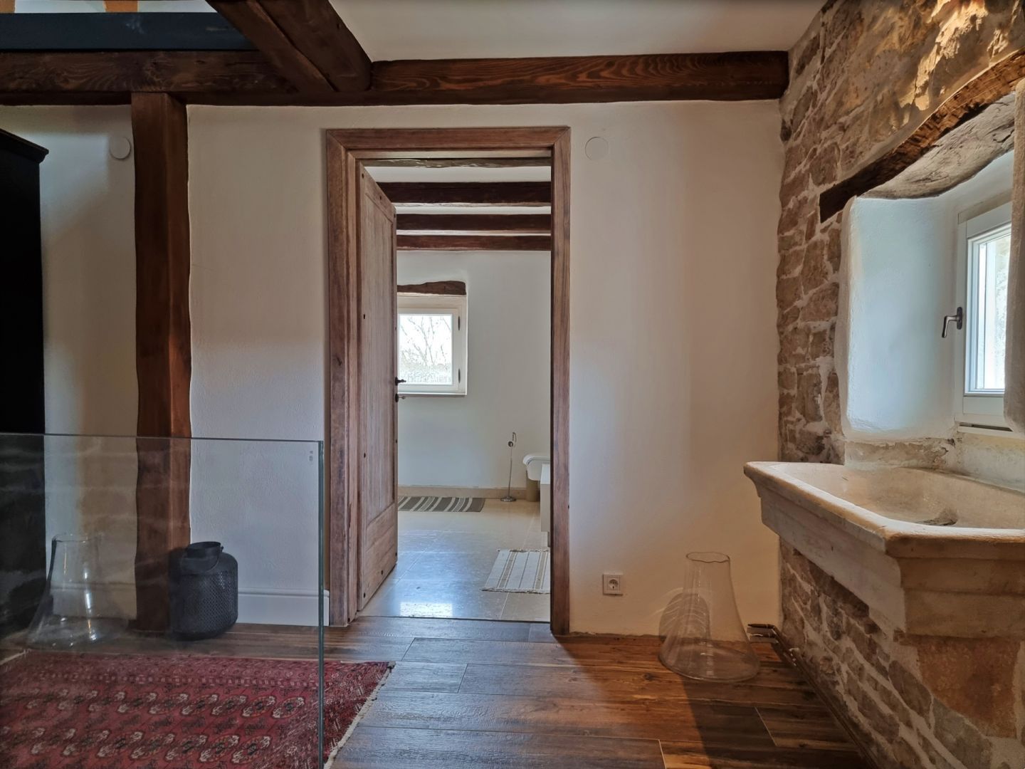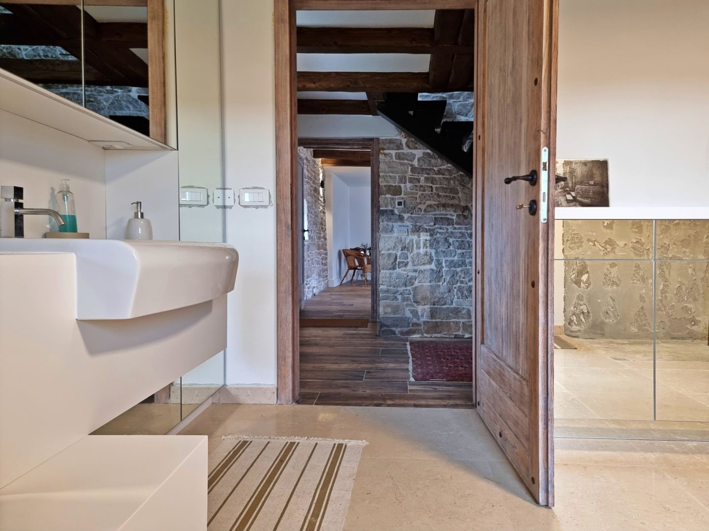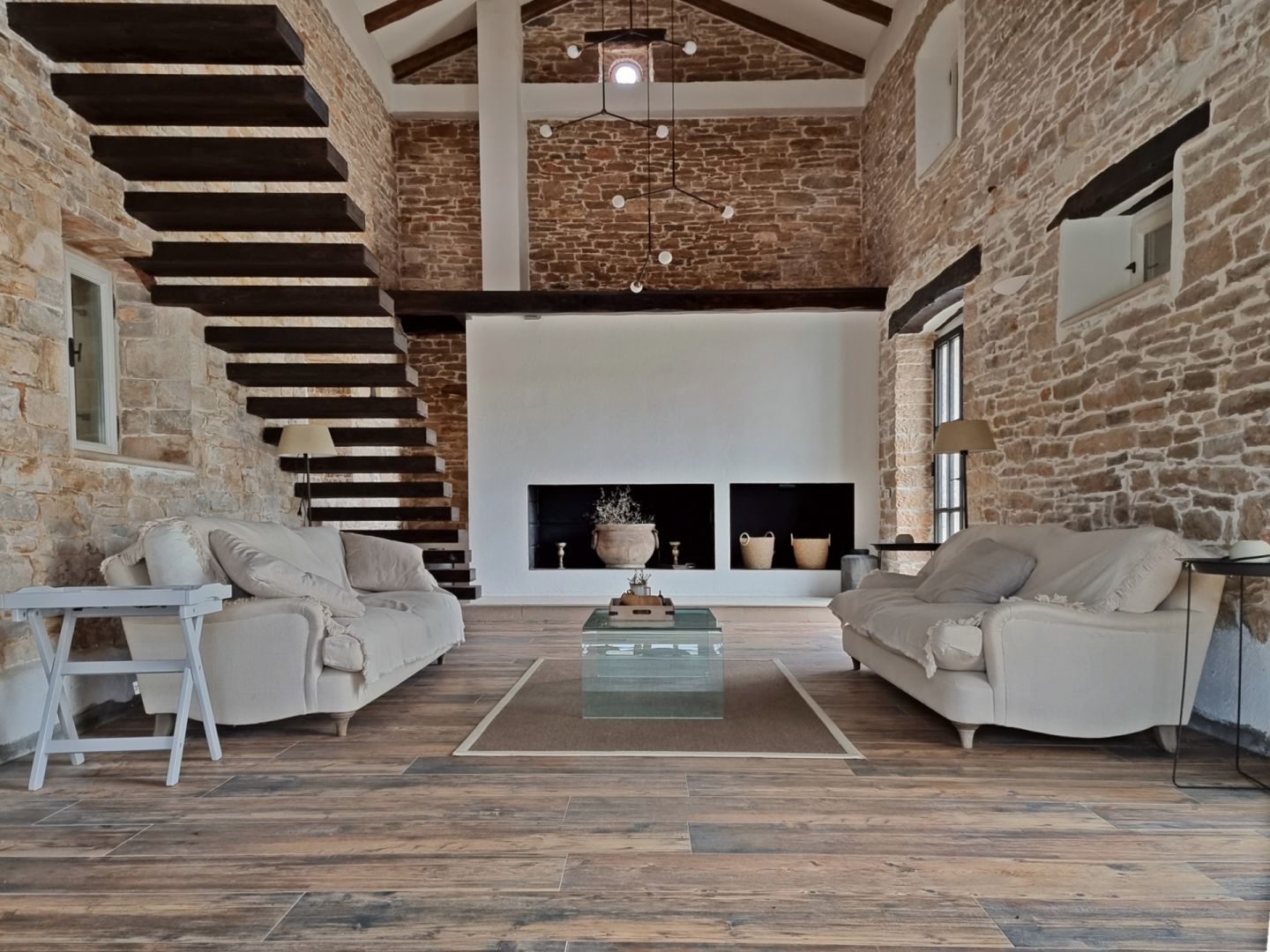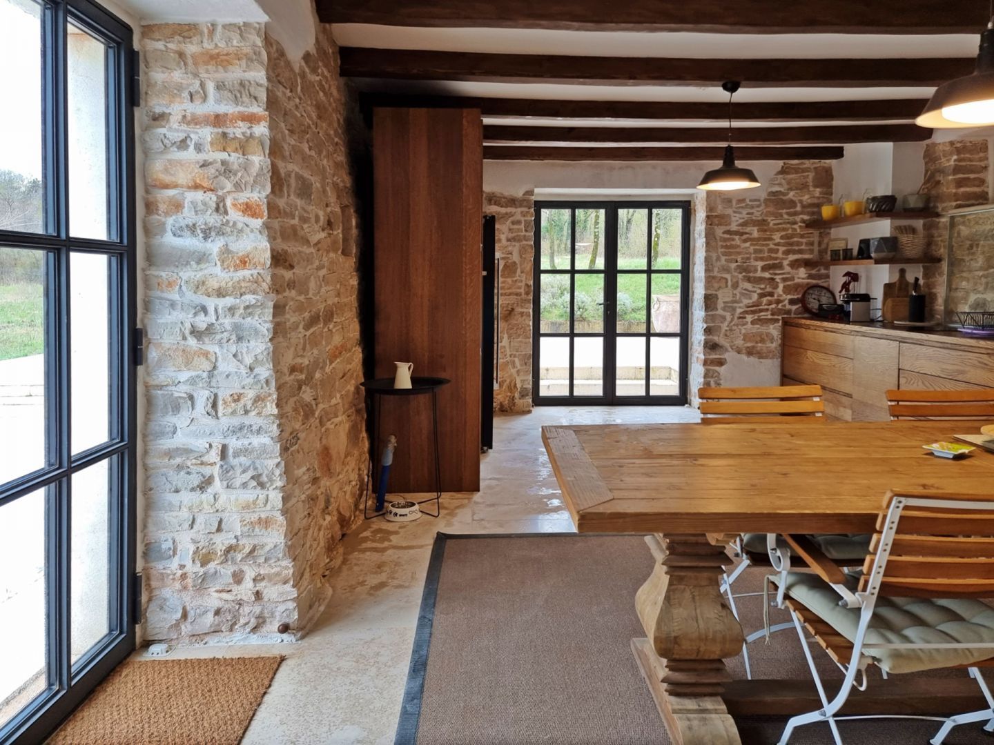 ISTRIEN, GROŽNJAN – Luxuriöse Stein-Stancija Die mittelalterliche Stadt Grožnjan liegt auf einem Hügel, umgeben von Olivenhainen und Weinbergen. Einst eine bedeutende venezianische Festung und regionales Zentrum, ist Grožnjan heute eine Künstlerstadt und eines der begehrtesten Reiseziele für einen kreativen Urlaub. Wie in anderen Städten Istriens verschmelzen hier mediterranes und kontinentales Klima und schaffen so äußerst günstige Lebensbedingungen. Die Stadt besteht aus elf Ortsteilen. In der Nähe dieser romanischen Stadt, inmitten einer unglaublich friedlichen und ruhigen Umgebung, umgeben von Olivenhainen und Weinbergen, steht eine luxuriöse Stein-Stancija zum Verkauf. Obwohl sie sich in ländlicher Umgebung befindet, bietet sie absoluten Luxus und absolute Privatsphäre. Die altehrwürdige Steinarchitektur erstrahlt in neuem Glanz und verbindet auf zeitlose Weise Tradition und höchsten Luxus. Das Anwesen erstreckt sich über 15.304 Quadratmeter unberührter Natur. Umgeben von einer Steinmauer, befindet sich innerhalb dieser Mauer eine renovierte Steinvilla mit 232 m² Wohnfläche, ein Neubau mit Wellnessbereich und Mediathek inklusive Kinosaal, der über eine überdachte Terrasse mit Sommerküche und Weinkeller (insgesamt 279 m²) verbunden ist, sowie ein 88 m² großer Swimmingpool mit Sonnenterrasse. Das elegante Haupthaus wurde 2020 komplett renoviert und mit hochwertigen Möbeln ausgestattet. Auch die alten Balken, die das Haus prägen, wurden restauriert und das alte Mauerwerk neu interpretiert. Das Interieur dieses Schmuckstücks erstreckt sich über drei Etagen und vereint gekonnt traditionellen istrischen Stil mit modernem Design, was dem Anwesen eine besondere Attraktivität verleiht. Es wurde darauf geachtet, die Räume nicht mit Möbeln und Details zu überladen, um traditionelle Elemente wie Holzbalken an der Decke, antike und rustikale Stücke sowie Stein hervorzuheben. Das Erdgeschoss umfasst ein beeindruckendes Wohnzimmer mit Galerie und offenem Kamin, eine Küche mit Essbereich, eine Diele und ein Gäste-WC. Im ersten Obergeschoss befinden sich ein Flur, ein geräumiges Schlafzimmer und ein großzügiges Badezimmer. Das zweite Obergeschoss besteht aus einer Galerie und einem geräumigen Schlafzimmer mit Bad. Der restliche Teil des Gebäudes muss gemäß dem bereits erstellten Konzeptentwurf renoviert und fertiggestellt werden. Diese außergewöhnliche Immobilie ist ein wahres Juwel, das den Charme vergangener Zeiten, die Ruhe und den ländlichen Charakter der Umgebung, den Komfort des istrischen Lebens und modernen Luxus vereint. Sie bietet eine hervorragende Investitionsmöglichkeit sowie die Chance auf ein idyllisches Familienleben.