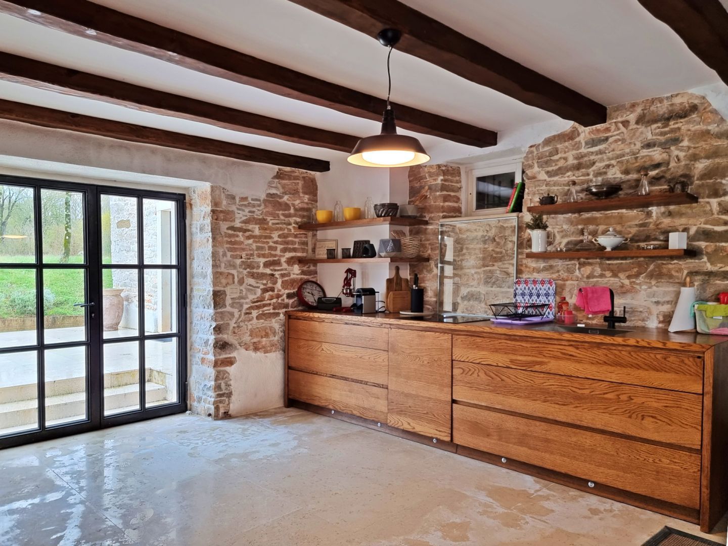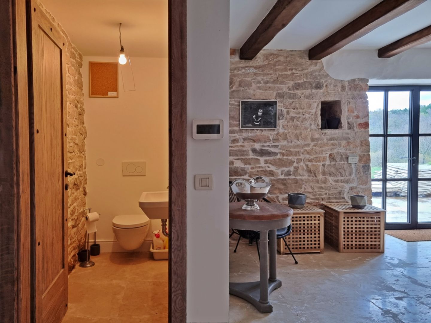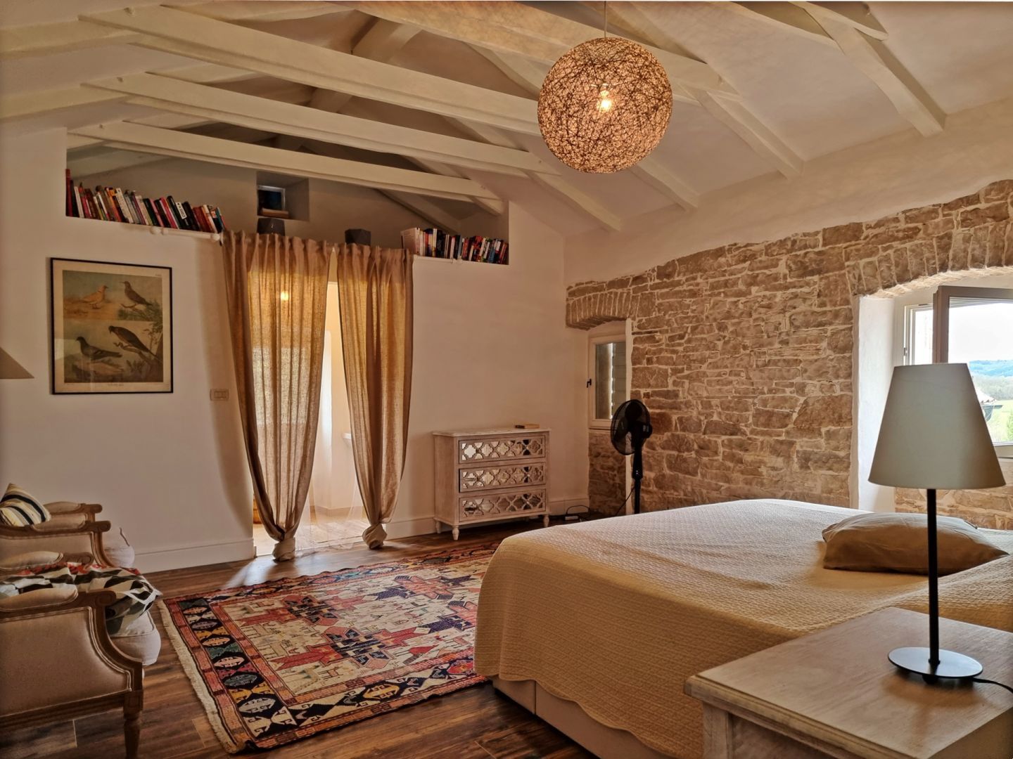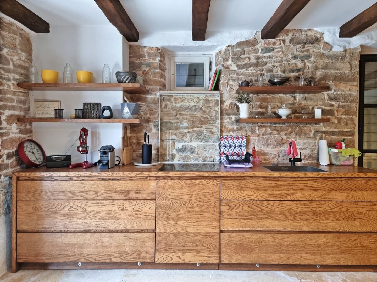 ISTRIEN, GROŽNJAN – Luxuriöse Stein-Stancija Die mittelalterliche Stadt Grožnjan liegt auf einem Hügel, umgeben von Olivenhainen und Weinbergen. Einst eine bedeutende venezianische Festung und regionales Zentrum, ist Grožnjan heute eine Künstlerstadt und eines der begehrtesten Reiseziele für einen kreativen Urlaub. Wie in anderen Städten Istriens verschmelzen hier mediterranes und kontinentales Klima und schaffen so äußerst günstige Lebensbedingungen. Die Stadt besteht aus elf Ortsteilen. In der Nähe dieser romanischen Stadt, inmitten einer unglaublich friedlichen und ruhigen Umgebung, umgeben von Olivenhainen und Weinbergen, steht eine luxuriöse Stein-Stancija zum Verkauf. Obwohl sie sich in ländlicher Umgebung befindet, bietet sie absoluten Luxus und absolute Privatsphäre. Die altehrwürdige Steinarchitektur erstrahlt in neuem Glanz und verbindet auf zeitlose Weise Tradition und höchsten Luxus. Das Anwesen erstreckt sich über 15.304 Quadratmeter unberührter Natur. Umgeben von einer Steinmauer, befindet sich innerhalb dieser Mauer eine renovierte Steinvilla mit 232 m² Wohnfläche, ein Neubau mit Wellnessbereich und Mediathek inklusive Kinosaal, der über eine überdachte Terrasse mit Sommerküche und Weinkeller (insgesamt 279 m²) verbunden ist, sowie ein 88 m² großer Swimmingpool mit Sonnenterrasse. Das elegante Haupthaus wurde 2020 komplett renoviert und mit hochwertigen Möbeln ausgestattet. Auch die alten Balken, die das Haus prägen, wurden restauriert und das alte Mauerwerk neu interpretiert. Das Interieur dieses Schmuckstücks erstreckt sich über drei Etagen und vereint gekonnt traditionellen istrischen Stil mit modernem Design, was dem Anwesen eine besondere Attraktivität verleiht. Es wurde darauf geachtet, die Räume nicht mit Möbeln und Details zu überladen, um traditionelle Elemente wie Holzbalken an der Decke, antike und rustikale Stücke sowie Stein hervorzuheben. Das Erdgeschoss umfasst ein beeindruckendes Wohnzimmer mit Galerie und offenem Kamin, eine Küche mit Essbereich, eine Diele und ein Gäste-WC. Im ersten Obergeschoss befinden sich ein Flur, ein geräumiges Schlafzimmer und ein großzügiges Badezimmer. Das zweite Obergeschoss besteht aus einer Galerie und einem geräumigen Schlafzimmer mit Bad. Der restliche Teil des Gebäudes muss gemäß dem bereits erstellten Konzeptentwurf renoviert und fertiggestellt werden. Diese außergewöhnliche Immobilie ist ein wahres Juwel, das den Charme vergangener Zeiten, die Ruhe und den ländlichen Charakter der Umgebung, den Komfort des istrischen Lebens und modernen Luxus vereint. Sie bietet eine hervorragende Investitionsmöglichkeit sowie die Chance auf ein idyllisches Familienleben.