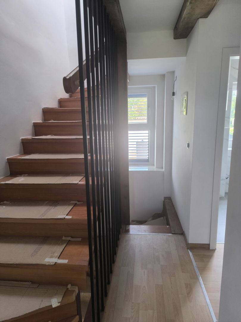 ISTRIEN, JURŠIĆI - Reihenhaus mit Pool + Wohnung, Neubau Im Zentrum von Juršići, in einer ruhigen Sackgasse, befindet sich dieses neue Projekt eines dreistöckigen Steinhauses mit Swimmingpool und Nebengebäude. Die betreffende Immobilie befindet sich auf einem Grundstück mit einer Gesamtfläche von 226 m2. Gesamtnettowohnfläche 129 m2, das Haus besteht aus 6 Schlafzimmern und 3 Bädern mit WC, aufgeteilt in 3 Obergeschosse: Im Erdgeschoss des Hauses gibt es ein Wohnzimmer, eine Küche, ein Esszimmer und ein kleines Badezimmer mit Toilette. Das Erdgeschoss hat auch einen Ausgang zur Terrasse mit Zugang zum Pool. Die Innentreppe führt in den zweiten Stock, wo sich 3 Schlafzimmer und ein Badezimmer mit Toilette befinden. Es gibt auch 3 weitere Schlafzimmer und ein Badezimmer mit Toilette im Obergeschoss. Die Kommunikation mit dem Hof erfolgt über das Erdgeschoss, das einen Durchgang zur Liegewiese, zum Swimmingpool und zu den dazugehörigen Einrichtungen bietet. Auf dem Grundstück befindet sich auch ein als Wohnung konzipiertes Nebengebäude mit einer Netto-Wohnfläche von 34 m2. Es besteht aus 2 Zimmern, einem Badezimmer mit Toilette und einem kleinen Abstellraum. Weitere Informationen: *Der Pool ist 6 x 3 m groß und hat eine Gesamtfläche von 18 m2. *Heizung ist auf Holz. *Möglichkeit der Installation von Sonnenkollektoren. *Der zukünftige Käufer hat die Möglichkeit, Ausstattung und Möblierung nach Wunsch auszuwählen. Hinweis: Der aufgeführte Preis gilt für ein komplett fertiggestelltes schlüsselfertiges Haus, es besteht jedoch auch die Möglichkeit das Objekt im aktuellen Zustand zu erwerben. Ein ideales Objekt für den Start in ein friedliches Familienleben oder für Zwecke der touristischen Vermietung.