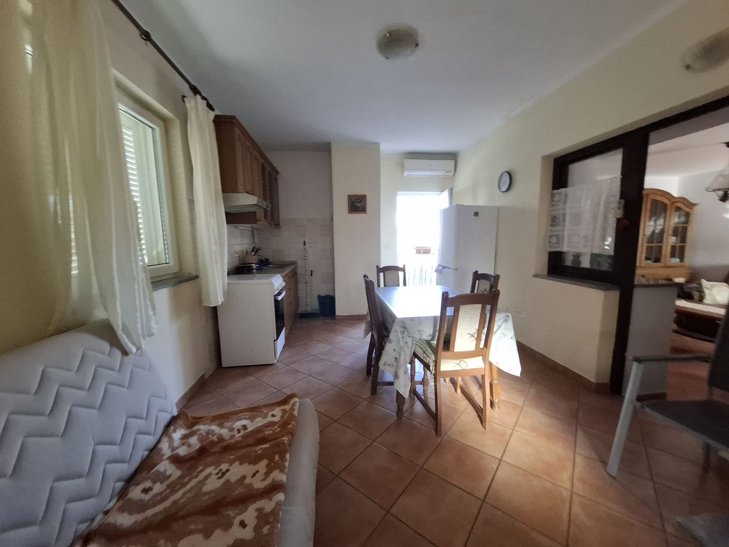 ISTRIEN, KANFANAR – Authentisches istrisches Anwesen Unweit des Lim-Kanals, in erhöhter und ruhiger Lage, befindet sich dieses authentische istrische Anwesen. Umgeben von Natur und Grün, mit freiem Blick auf den Wald, ist es ideal für Käufer, die Privatsphäre, Ruhe und ein authentisches istrisches Ambiente suchen. Das Anwesen bietet insgesamt ca. 140 m² Nutzfläche und vielfältige Gestaltungsmöglichkeiten. Im Erdgeschoss befinden sich zwei authentische Steintavernen, die sich leicht in zusätzlichen Wohnraum, einen Wellnessbereich, einen Weinkeller oder einen Aufenthaltsraum umwandeln lassen. Im ersten Stock befindet sich eine geschmackvoll eingerichtete und komplett möblierte Wohnung, die 2005 renoviert wurde (Installationen, Fassade und Innenausstattung). Die Wohnung verfügt über zwei Terrassen – eine nach vorne und eine nach hinten – neben denen sich ein authentischer Brunnen befindet, der den ursprünglichen istrischen Charakter unterstreicht. Sie ist mit Klimaanlage und Kaminvorbereitung ausgestattet und sofort bezugsfertig. Neben dem Haupthaus befindet sich eine Steinscheune/Garage, die nach einer Komplettsanierung die Möglichkeit bietet, zusätzlichen Wohnraum auf zwei Etagen, eine Wohnung, ein Atelier oder eine Werkstatt einzurichten. Die Vorderseite des Hauses grenzt an einen umzäunten Garten, der von einer traditionellen Steinmauer begrenzt wird und so für Privatsphäre und ein authentisches Ambiente sorgt. Ein weiterer Teil des Gartens liegt hinter dem Haus. Dank seiner Südausrichtung ist das Haus den ganzen Tag über sonnendurchflutet, während der Blick auf den Wald am Hang ein Gefühl der Verbundenheit mit der Natur vermittelt. Das Anwesen verfügt über alle erforderlichen Dokumente, einen vollständigen Bauplan, eigene Strom- und Wasseranschlüsse sowie einen Glasfaseranschluss, der modernen Komfort auch in dieser ruhigen ländlichen Umgebung ermöglicht. Dieses seltene istrische Anwesen eignet sich ideal als Privathaus, Ferienhaus oder attraktives Tourismusprojekt für alle, die den Wert authentischer Steinbauweise und das Potenzial der Lage zu schätzen wissen.