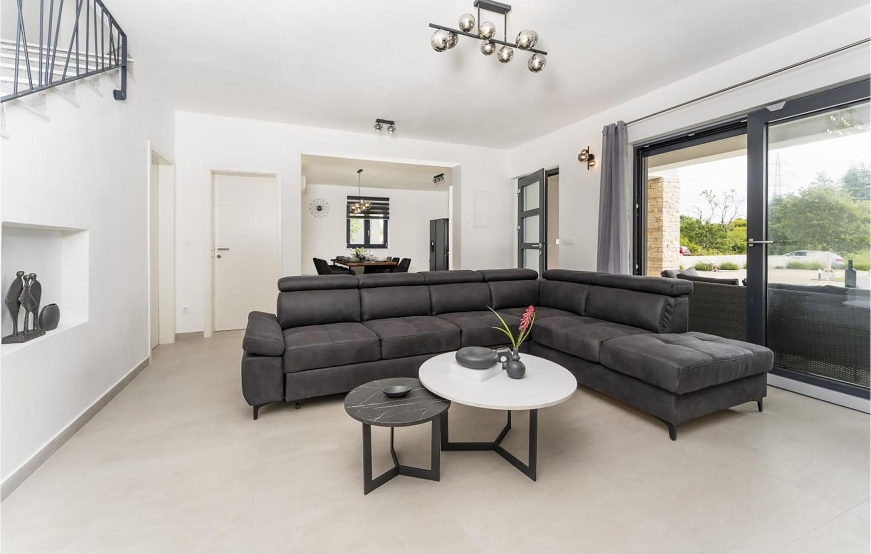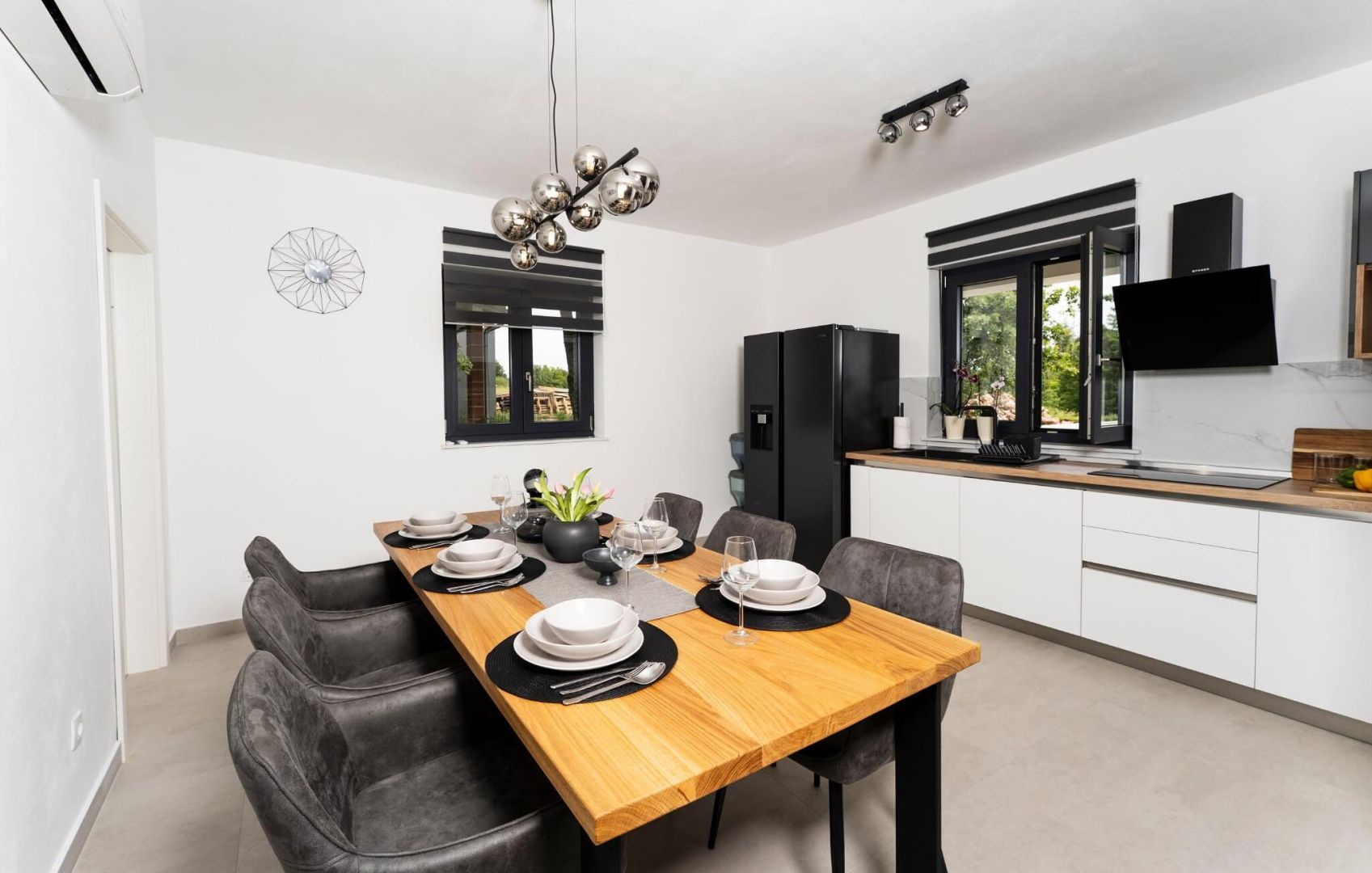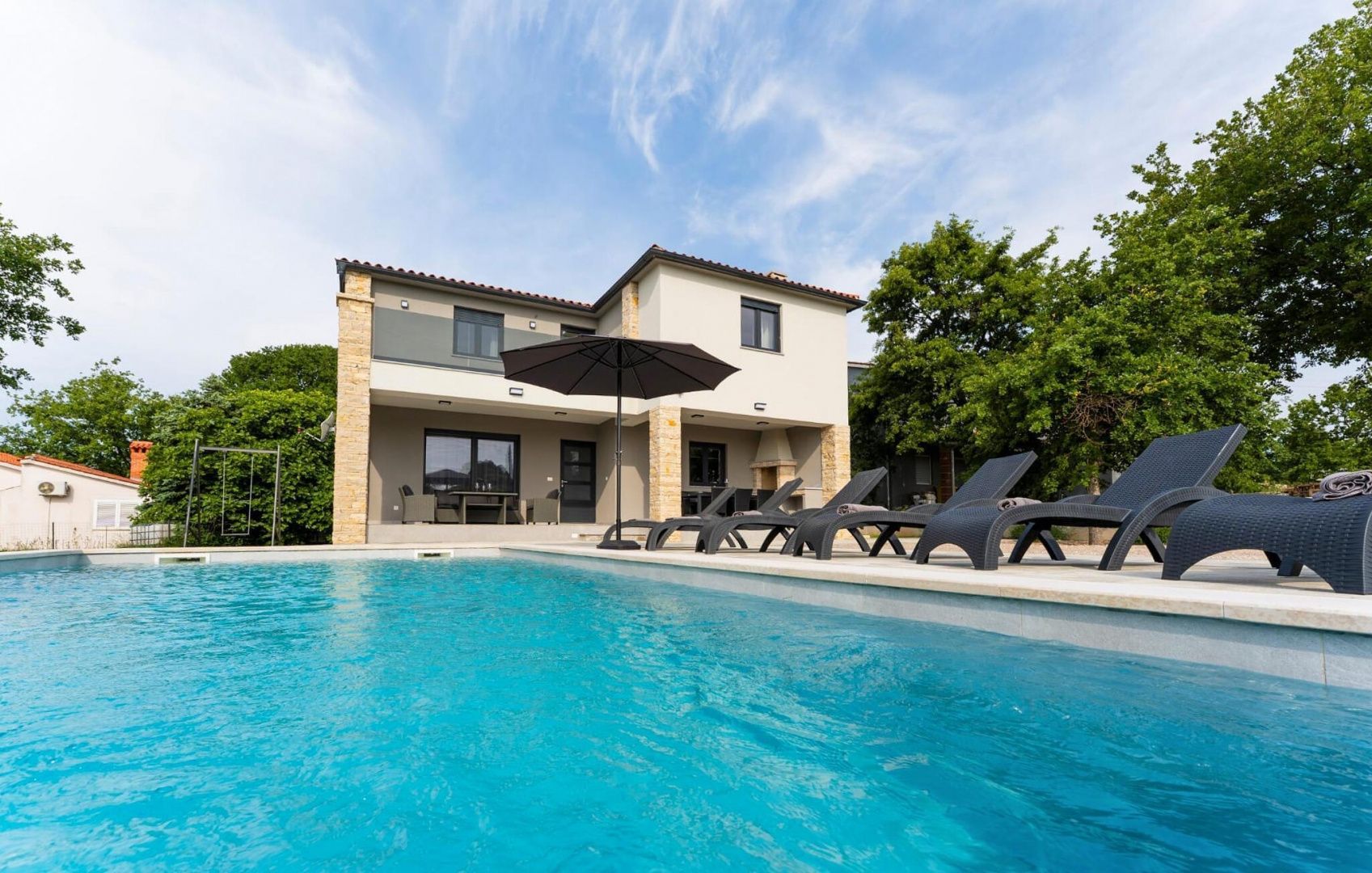 ISTRIEN, LABIN – Haus mit Swimmingpool in einem ruhigen Dorf An der Südostküste Istriens, wo grüne Hügel auf das Meer treffen, wo Natur und Erbe sich vereinen, gibt es zwei Städte ähnlicher Größe mit unterschiedlichem, aber sich gegenseitig ergänzendem Charakter – Labin und Rabac. Die malerische Stadt Labin erhebt sich auf einem 320 m hohen Hügel, nur vier Kilometer von den weißen Kieselstränden von Rabac entfernt. Labin, das kurzzeitig als unabhängige Republik ausgerufen wurde, ist verwoben mit einer reichen Geschichte und dem Bergbau, der diese Region prägte, und ist heute eine faszinierende Stadt voller Widersprüche. Alt und Neu, Geschichte und Gegenwart, Tourismus und Kunst. Nahe der Stadt Labin steht in einem ruhigen Dorf ein Haus mit Swimmingpool zum Verkauf. Neben der verkehrsgünstigen Lage zeichnet sich das Objekt durch eine zeitlose Architektur und räumliche Organisation der Innenräume aus. Der Wohnbereich ist konzeptionell zweiteilig gestaltet; Wohn- und Schlafbereich. Der Wohnbereich befindet sich im Erdgeschoss und besteht aus einem Wohnzimmer, einem Esszimmer und einer offenen Küche mit Zugang zu einer überdachten Terrasse, einem Hauswirtschaftsraum und einer Gästetoilette. Der Schlafbereich liegt im Obergeschoss und besteht aus drei Schlafzimmern mit eigenen Bädern und einem Flur mit Zugang zu einer Terrasse mit Panoramablick auf die Umgebung. Zum Heizen und Kühlen stehen Klimaanlagen und ein Festbrennstoff-/Pelletofen im Wohnbereich zur Verfügung. Der angelegte Garten wird durch einen Swimmingpool mit Liegewiese ergänzt. Dieses Anwesen in einem ruhigen Dorf ist eine ideale Gelegenheit für ein friedliches Familienleben sowie eine Investition zur touristischen Vermietung.
