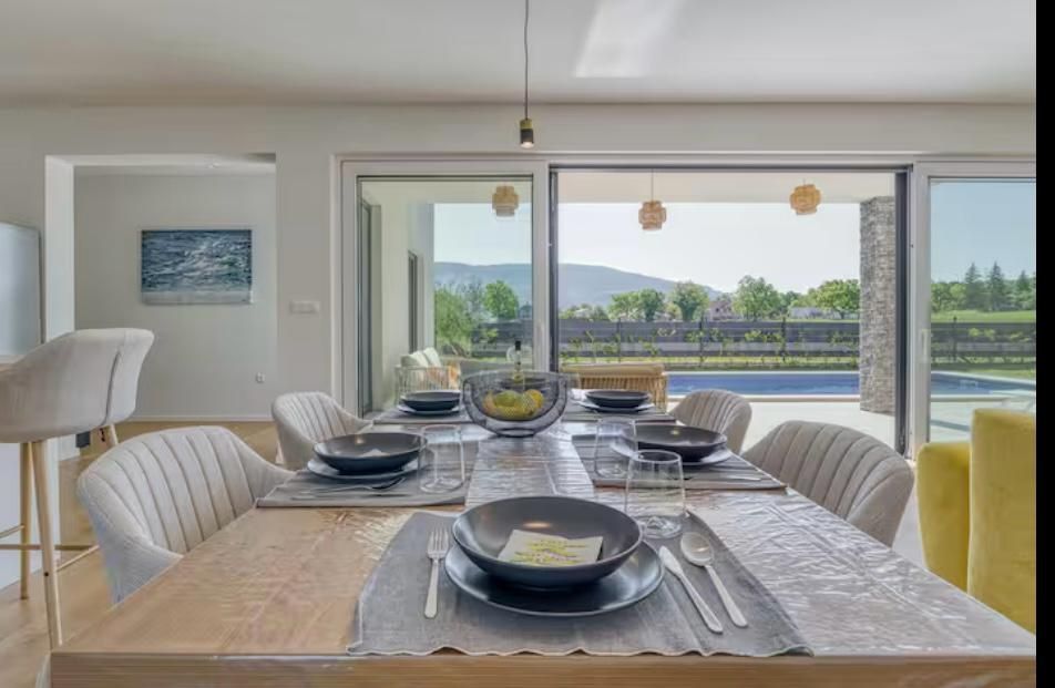 ISTRIEN, LABIN (Umgebung) – Moderner Neubau mit Schwimmbad An der südöstlichen Küste Istriens, wo die grünen Hügel auf das Meer treffen, wo Natur und Erbe zusammenkommen, liegen zwei kleine Städte ähnlicher Größe, aber mit unterschiedlichem, sich aber gegenseitig ergänzendem Charakter - Labin und Rabac. Die malerische Stadt Labin erhebt sich auf einem 320 Meter hohen Hügel, nur fünf Kilometer von den weißen Kiesstränden in Rabac entfernt. Labin, das für kurze Zeit zur unabhängigen Republik erklärt wurde, ist eng mit der reichen Geschichte und dem Bergbau verbunden, die diese Region prägten, und ist heute eine faszinierende Stadt voller Widersprüche. alt und neu, Geschichte und Gegenwart, Tourismus und Kunst. Zum Verkauf steht ein moderner Neubau mit einer Wohnfläche von 138 m2 mit zwei Terrassen, davon eine überdacht mit einer Fläche von 19 m2. Die Villa befindet sich auf einem großzügigen Grundstück von 970 m2. Es verfügt über drei geräumige Schlafzimmer, jedes mit einem eigenen modernen Badezimmer, das maximalen Komfort und Privatsphäre bietet. Ein zusätzliches Gäste-WC befindet sich am Eingang. Der zentrale Teil des Hauses besteht aus einer offenen Küche, die mit einem geräumigen und hellen Wohnzimmer verbunden ist. Dank der großen Glasflächen, die viel natürliches Licht und einen schönen Blick auf den Garten bieten, eignet sich dieser Raum perfekt für Familientreffen und Unterhaltung. Der Außenbereich ist komplett eingezäunt, dort befindet sich ein Swimmingpool von 32 m2. Dieses Haus wurde aus Materialien höchster Qualität gebaut, wobei besonderer Wert auf Energieeffizienz und Langlebigkeit gelegt wurde. Alle Badezimmer und das Wohnzimmer sind mit Fußbodenheizung ausgestattet, die in den kälteren Monaten für zusätzlichen Komfort sorgt, aber auch mit Klimaanlagen, die das ganze Jahr über für eine optimale Temperatur sorgen. Diese außergewöhnliche Immobilie bietet alles, was Sie für ein luxuriöses und komfortables Leben benötigen.