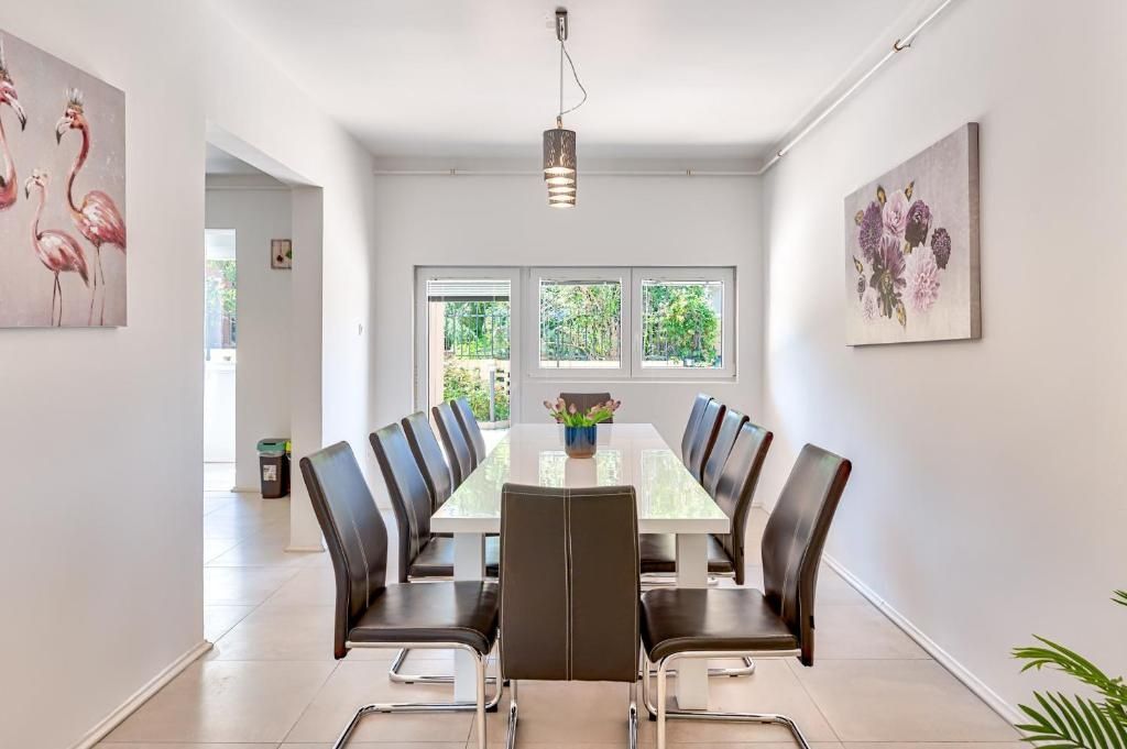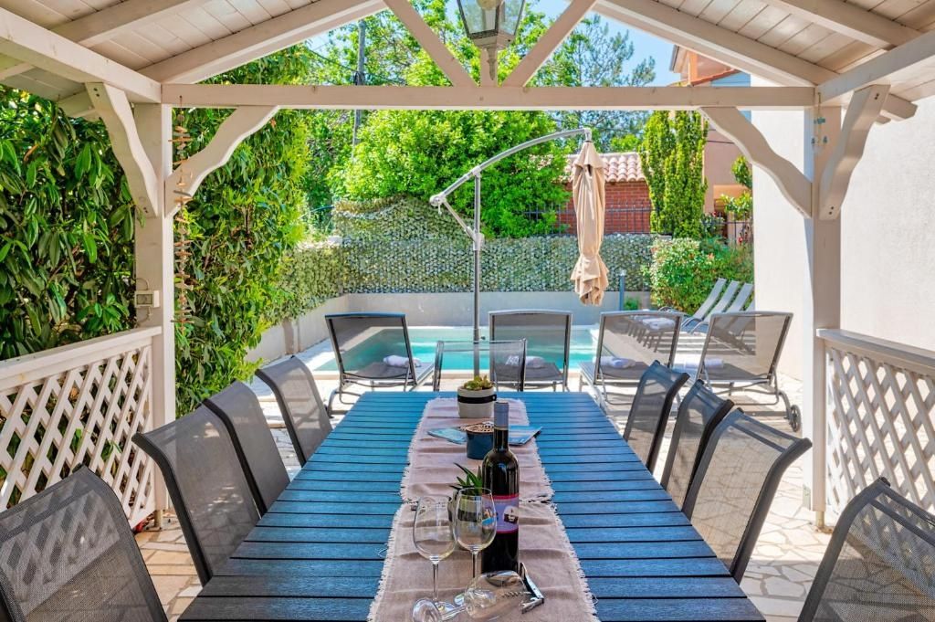 ISTRIEN, LIŽNJAN – Villa mit Pool und Meerblick zu verkaufen In einer ruhigen und angenehmen Gegend von Ližnjan, nur 1000 Meter vom Meer entfernt, befindet sich diese geräumige, freistehende Villa, die Komfort, Privatsphäre und mediterranen Lebensstil ideal vereint. Umgeben von einem gepflegten Garten und in einer ruhigen Nachbarschaft gelegen, bietet dieses Anwesen perfekte Bedingungen für ein friedliches Familienleben und gleichzeitig außergewöhnliches Potenzial als Kapitalanlage zur touristischen Vermietung. Mit einer Wohnfläche von 260 m² und einem 425 m² großen Garten bietet die Villa viel Platz für ein komfortables Leben – ideal für eine größere Familie oder viele Gäste. OBJEKTBESCHREIBUNG – Die Villa erstreckt sich über zwei Etagen: Erdgeschoss und Obergeschoss. Im Erdgeschoss empfängt uns zunächst eine Eingangshalle mit einem separaten Bereich für eine Garderobe. Von hier aus gelangen wir in den Wohnbereich, der als angenehmer Ort zum Entspannen und geselligen Beisammensein gestaltet ist. Große Glasflächen lassen den ganzen Tag über viel natürliches Licht herein. Der Wohnbereich führt auf die Terrasse und in den angelegten Garten und schafft so eine besondere Atmosphäre in diesem Anwesen. Der Wohnbereich besteht aus einem Wohnzimmer mit direktem Zugang zur voll ausgestatteten Küche mit Essbereich sowie zwei Schlafzimmern und einem Badezimmer. Eine Innentreppe führt ins Obergeschoss, wo sich vier weitere Schlafzimmer und ein Badezimmer befinden. Dies ermöglicht eine außergewöhnliche Flexibilität bei der Raumnutzung – ob für Familienleben, Gäste oder die touristische Vermietung. Zwei weitere Schlafzimmer bieten Zugang zu einem größeren Balkon mit einem unvergleichlichen Blick auf das Meer, die Kvarner-Inseln und die Umgebung. Die beiden anderen Schlafzimmer verfügen jeweils über einen eigenen Balkon mit Blick auf das Dorf und einen begehbaren Kleiderschrank. BESCHREIBUNG DES GARTENS: Ein besonderes Highlight dieses Anwesens ist der 425 m² große, angelegte Garten, der viel Platz zum Entspannen und Genießen im Freien bietet. Vom Garten aus sind fünf Parkplätze erreichbar, drei davon überdacht. Der zentrale Bereich des Gartens wird von einem Swimmingpool mit Liegewiese eingenommen – ideal zur Erfrischung an warmen Sommertagen. Angrenzend an den Pool befindet sich ein Bereich zum Entspannen und geselligen Beisammensein im Freien. Der Garten selbst bietet viel Privatsphäre und die Möglichkeit zur individuellen Gestaltung nach den Wünschen der zukünftigen Eigentümer. Eine überdachte Terrasse lädt zu einem Mittagessen unter freiem Himmel ein. Der Garten ist komplett umzäunt und bietet ein hohes Maß an Privatsphäre und Ruhe. Er ist daher perfekt für unbeschwertes Spielen Ihrer jüngsten Familienmitglieder und Haustiere. ZUSÄTZLICHE INFORMATIONEN: * Swimmingpool und angelegter Garten * Meerblick * Gaszentralheizung * Klimaanlage * möbliert * 5 Parkplätze * Gepflegtes Eigentum, Alleineigentum, lastenfrei, alle notwendigen Dokumente vorhanden LAGEBESCHREIBUNG – Ruhige mediterrane Atmosphäre Das Haus befindet sich in einem ruhigen Teil von Ližnjan, unweit beliebter Touristenziele wie Medulin und der Stadt Pula. Ližnjan ist bekannt für seine unberührte Natur, die wunderschönen Strände und den entspannten mediterranen Lebensstil. Alle wichtigen Einrichtungen des täglichen Lebens befinden sich in unmittelbarer Nähe: * Meer und Strände – 1 km * Geschäfte – 700 m * Restaurants – 400 m * Schule und Kindergarten – 450 m * Sportanlagen und Park – 1 km Dank seiner attraktiven Lage, der großzügigen Fläche und der zusätzlichen Annehmlichkeiten bietet diese Immobilie nicht nur eine hervorragende Gelegenheit für ein ruhiges Familienleben, sondern auch eine sichere Investition in die Ferienvermietung in einer der immer gefragteren Lagen Südistriens. Bei weiteren Fragen, für zusätzliche Informationen oder zur Vereinbarung eines Besichtigungstermins kontaktieren Sie uns bitte jederzeit.
